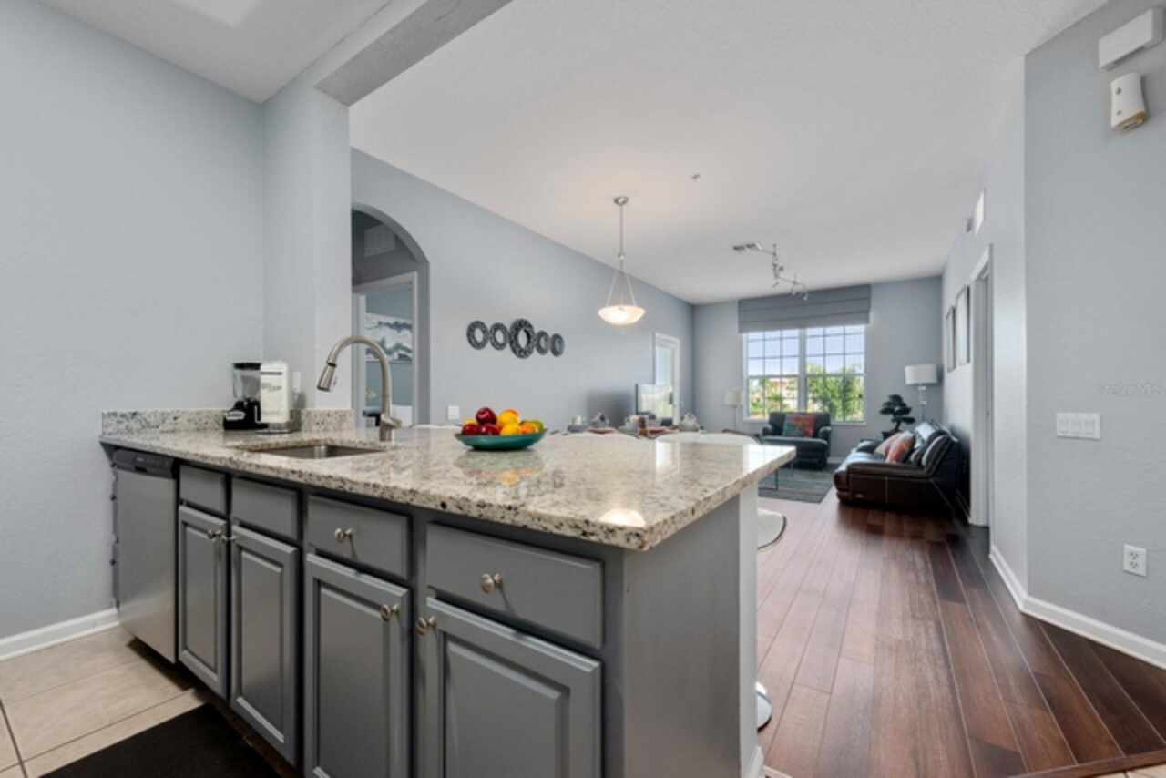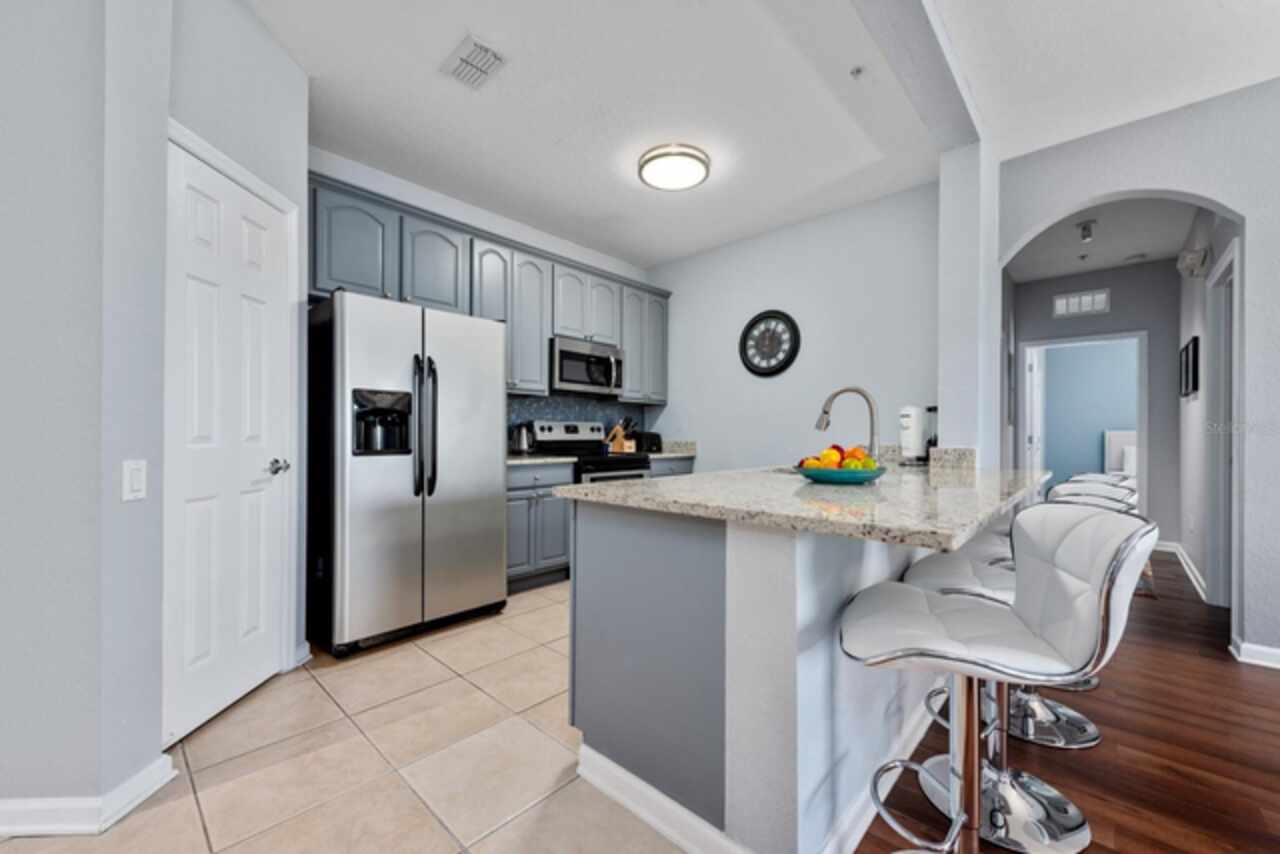 High volume of confirmed rental reservations that can convey with the sale!!! Discover the perfect Orlando investment or vacation getaway at 4114 Breakview Dr Unit 30402 – located in the highly desirable Vista Cay Resort! This spacious and well-appointed 3-bedroom, 2-bathroom condo is ideally situated just minutes from International Drive, the Orange County Convention Center, and 3 minutes from the new EPIC Universe theme park. Whether you're seeking a short-term rental property or a personal retreat in the heart of Orlando, this unit offers exceptional value and potential. Step inside and enjoy a generous open-concept floor plan, featuring a fully equipped kitchen, granite countertops, and stainless steel appliances. The large living and dining areas open up to a private balcony, perfect for relaxing after a day at the parks or entertaining guests. Additional highlights include tile and laminate flooring throughout (no carpet), in-unit laundry, and a split floor plan that provides added privacy for guests or family members. The condo has been professionally decorated and is being sold fully furnished and turnkey ready for short-term rentals. Vista Cay Resort boasts resort-style amenities, including a lakeside pool, clubhouse, fitness center, game room, and scenic walking trails – all within a gated community close to everything Orlando has to provide.