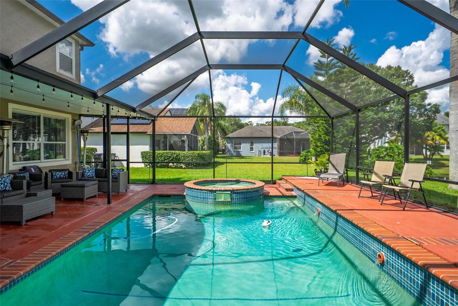 "PRICE ADJUSTMENT" Pool Home w/ Pond View in A-Rated Villages at Eastwood. This turn-key 4 Bed/2.5 Bath is a dream for young families! Enjoy peace of mind with a NEW ROOF (2024), New Pool Heater/Pump (2024), and new electrical panel. Inside, find a spacious, light-filled layout with LVP flooring. The kitchen boasts Stainless Steel Appliances, Granite Counters, & Gas Stove. Upstairs, the Primary Suite is a retreat with a COMPLETELY RENOVATED bathroom featuring a walk-in shower and freestanding soaker tub. Step outside to your private, screen-enclosed Pool & Spa overlooking a serene pond. Exclusive access to top-rated Sunrise Elementary and community amenities (pool, tennis, cable/internet included). Incredible value in an unbeatable location near Waterford Lakes & UCF. Call Ryan McEntee, Exp Realty Upgrades to the home include: new roof and gutters 2024, new pool pump 2024, new pool heater 400, 000 BTU Hayward 2024, new a/c motor 2022, refinished pool cage 2022, and new electrical panel and lightning surge whole house protector.