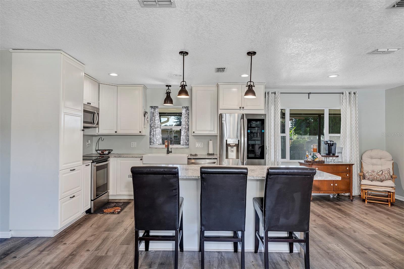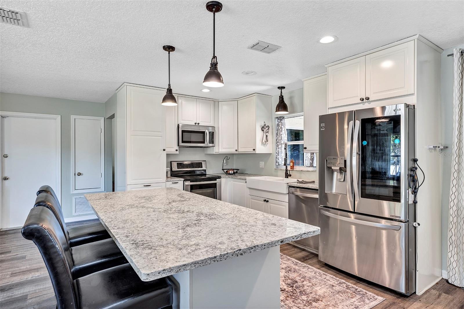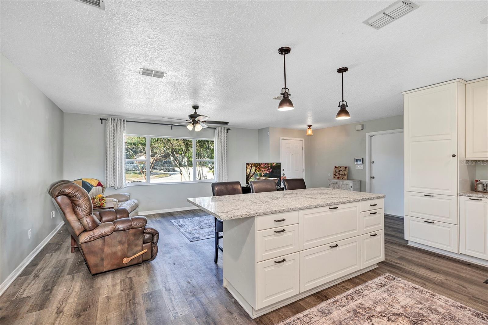 Ceiling Fans(s), Eat-in Kitchen, Kitchen/Family Room Combo, Split Bedroom, Stone Counters, Thermostat