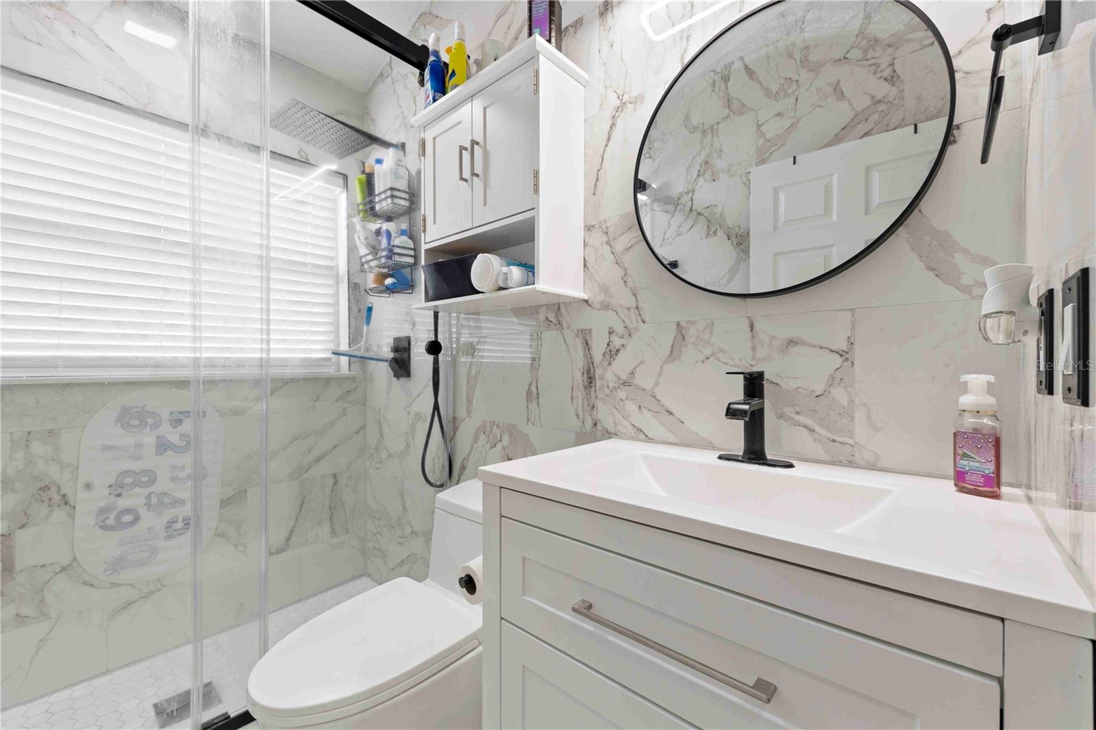 Incredible Buyer Opportunity! Seller is offering closing cost assistance, and the loan is assumable at the current interest rate — a significant savings for the new buyer. Move-in ready! Beautiful 4-bedroom, 2.5-bath home featuring a screened pool, terrace, covered patio, and fenced yard. The roof and central A/C were updated in 2023, and the interior was fully renovated in 2025. The modern all-white kitchen includes elegant cabinetry, stainless steel appliances, and a breakfast bar that opens to the family room—perfect for entertaining. Bright and open spaces with neutral colors, high baseboards, and tray ceilings in the living and dining areas add style and spaciousness. The master suite offers custom double closets, dual sinks, and a separate shower. The front bedroom connects to the main bath, ideal for an office or nursery. The community amenities include a pool, cabana, basketball and tennis courts, and a playground—great for all ages. Conveniently located near major roads, shopping, and the post office, and just 10 minutes from Orlando International Airport. Enjoy a beautiful outdoor area with a screened pool and built-in grill, perfect for relaxing and entertaining.