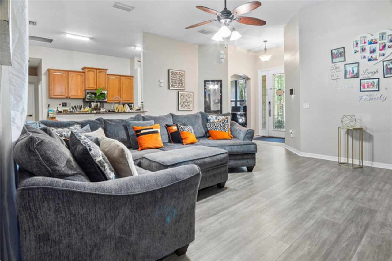 APPROVED PROBATED! Seller can close in 30 days. This spacious 4 Bedroom, 3 Bathroom block home featuring a split floor plan and High Ceilings. This home offers a perfect blend of comfort and functionality, with a formal living room, dining room, and family room, plus an eat-in Kitchen that's perfect for family meals. Large master suite featuring a huge walk-in-closet and a spacious master bath with a garden tub and a separate shower. Big bedrooms. Very private, located on a cul-de-sac. Enjoy peace of mind with a NEWER ROOF (2022) AND WINDOWS (2024) along with a 2 car garage for plenty of storage. Relax with serene WATER VIEW OF LAKE ORLANDO FROM THE CONFORT OF YOUR PORCH. Huge lot, plenty space for parking. OWNER MOTIVATED Bring offers!