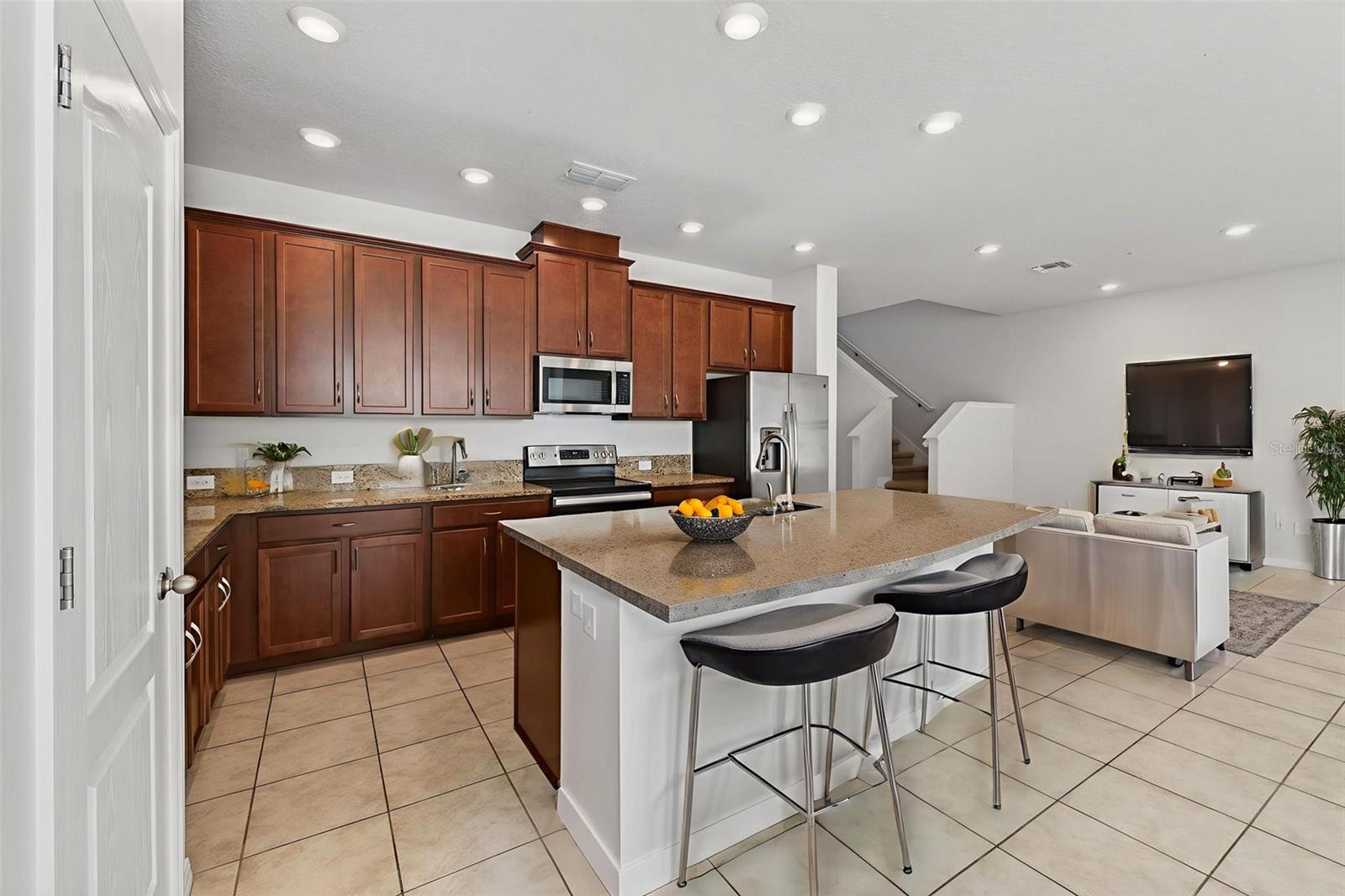 Welcome to 4294 Hibiscus Bloom Drive — a modern 2020-built home that blends privacy, convenience, and beautiful design. Nestled on a quiet dead-end street, this home offers a more exclusive and private setting while still placing you just 10 minutes from Orlando International Airport and minutes to shops, dining, schools, and major conveniences. Step inside to a wide, welcoming entrance and a bright first floor with tile throughout. The open-concept kitchen and living area are filled with natural light thanks to the home’s abundant windows. The kitchen features an oversized island with generous seating and workspace, creating the perfect gathering spot for cooking and entertaining. Upstairs, you'll find a spacious loft, an upstairs laundry room for added convenience, and well-appointed bedrooms. The primary suite includes elegant tray ceilings, a private balcony, and a modern ensuite bath. Enjoy the outdoors year-round with a covered rear porch and a fully fenced backyard that backs up to a conservation area — offering peaceful views and no rear neighbors. With a half bath on the main floor and a low HOA that keeps monthly costs comfortable, this home truly checks every box. If you’re looking for a home that delivers location, privacy, and contemporary living, this one deserves a closer look. Schedule your private showing today.