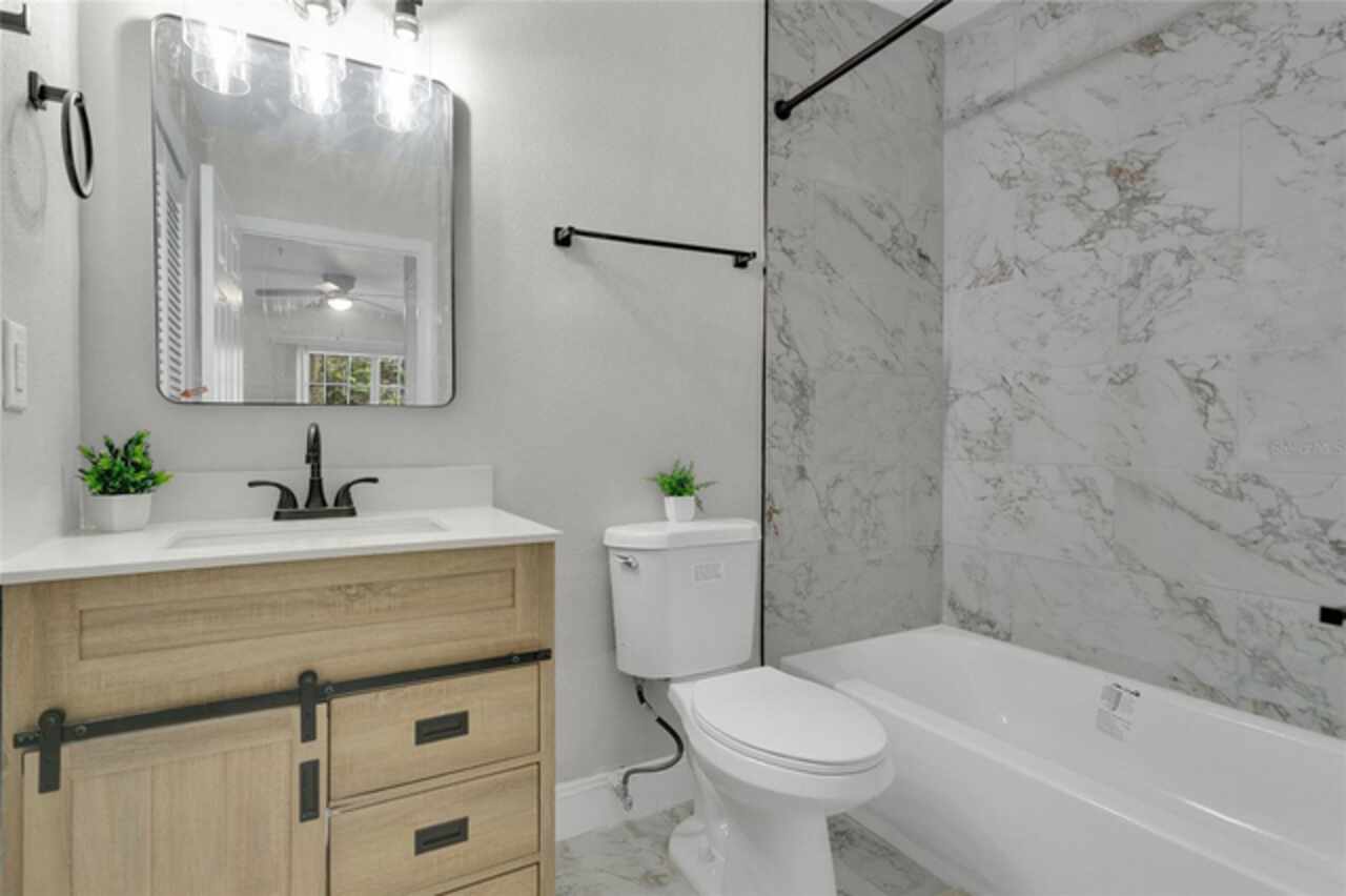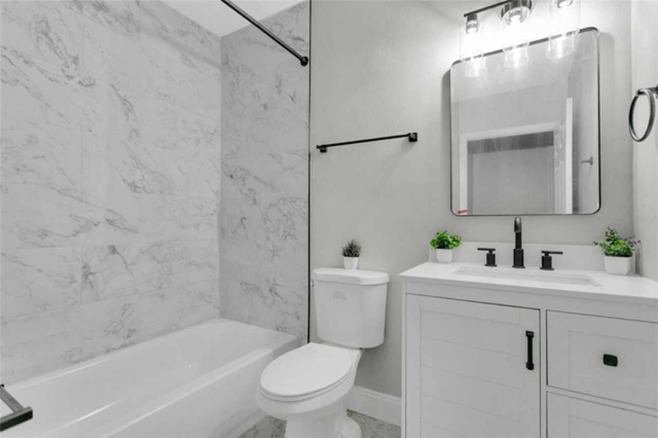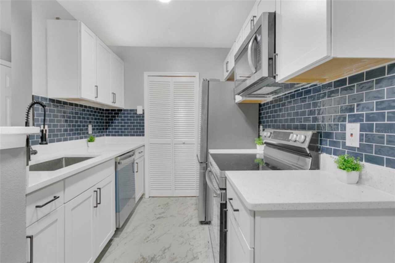 One or more photo(s) has been virtually staged. Completely updated and move-in ready, this 2-bedroom, 2-bathroom ground-level condo sits inside the gated Sunset Lake Condominium community. Step inside and you’ll immediately notice the split floor plan for added privacy, along with thoughtful upgrades throughout — a brand-new hot water heater, new AC system, high-quality vinyl plank flooring paired with porcelain tile, all-new fixtures, recessed lighting, fresh paint, and more. At the heart of the home, the fully renovated kitchen delivers both style and function. Brand-new stainless steel appliances, crisp shaker-style cabinetry, quartz countertops, a deep farmhouse sink, and a classic subway tile backsplash pair perfectly with stylish porcelain tile flooring — making it a space you’ll love to cook and gather in. The spacious owner’s suite offers a true retreat with a walk-in closet and a completely updated en-suite bathroom featuring a linen closet, new porcelain tile, quartz-topped vanity, and a floor-to-ceiling tiled shower with tub. The guest bedroom provides flexibility for visitors, a home office, or whatever fits your needs, while the second full bathroom mirrors the same quality updates as the primary — with new porcelain tile, quartz-topped vanity, and a fully tiled shower with tub. A laundry closet with washer and dryer hookups adds everyday convenience. Life at Sunset Lake offers more than just a beautiful home — it’s resort-style living with a community dock overlooking Turkey Lake, sparkling pool, playground, clubhouse with fitness center, and more. When it’s time to explore, you’re just minutes from The Mall at Millenia, Universal Orlando’s CityWalk, the upcoming Universal Epic Universe, and top dining and nightlife. Easy access to I-4 and Florida’s Turnpike puts Downtown Orlando, International Drive, the airport, and the theme parks within quick reach. Whether you’re looking for your own home, an investment property, or a vacation retreat, 4356 S Kirkman Road #509 offers comfort, style, and convenience in one. Schedule your private showing to experience all the updates in person.