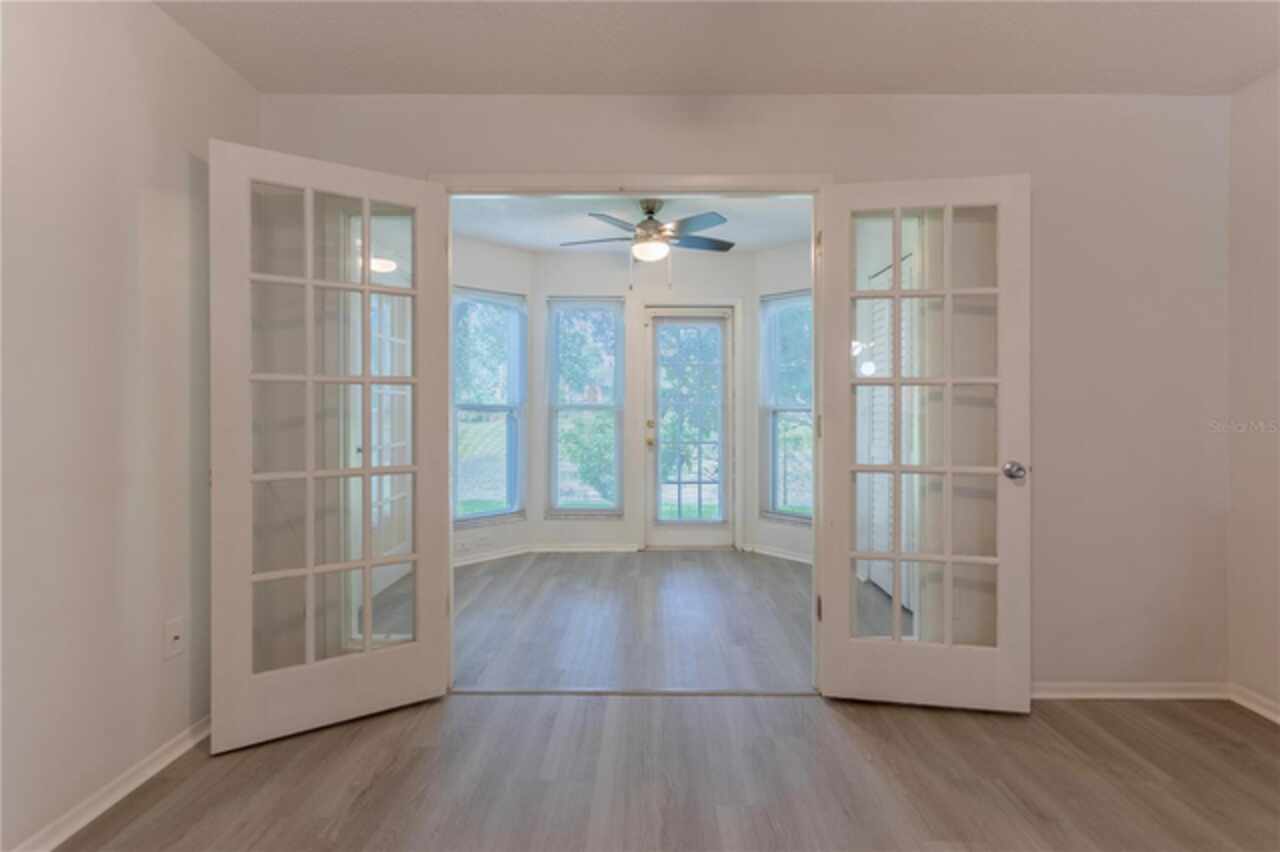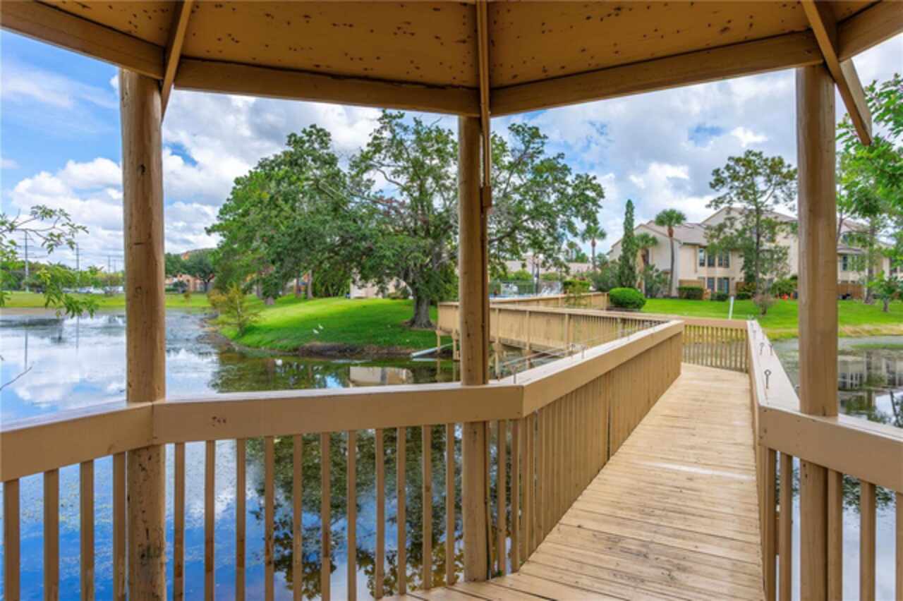 Seller is offering $2500 credit towards buyers closing costs and or prepaids. Charming 2 suite, downstairs, corner lot condo with tons of character. Enter into an octagon Sun Room though French Doors and wrap around windows overlooking canal/waterfront plus private backyard. Updated kitchen includes pass through to great room with full sized washer and dryer. Lots of storage closets plus two walk in closets. New windows, a/c-2024, water heater-2006, roof replaced 2022, home has been replumbed. Low HOA fees a plus. Near the entrance to Universal Studios Theme Park-- also, about 2 miles from upscale shopping/dining at Millennia Mall, close to Orlando Premium Outlets, 5 miles from the OC Convention Center and Walt Disney World are just minutes away.
