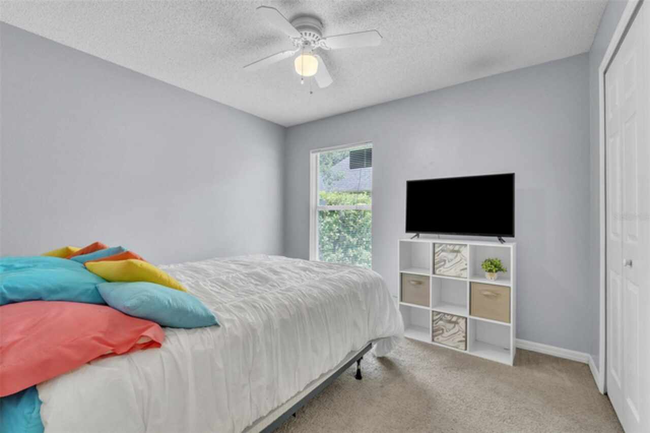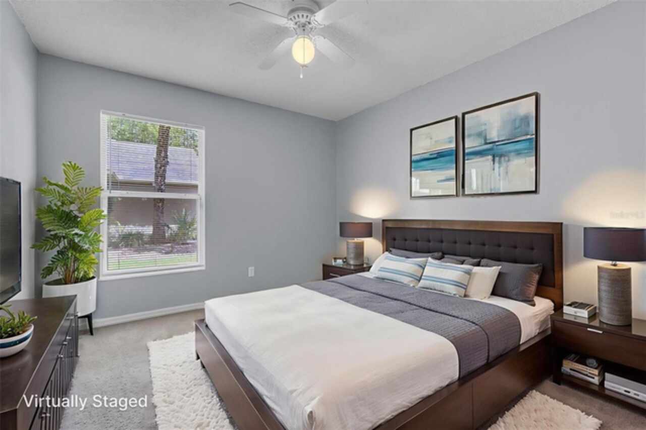 One or more photo(s) has been virtually staged. Welcome to this charming 3-bedroom, 2-bath home nestled in a quiet cul-de-sac in the established Sanctuary at Regency Park neighborhood. • This home offers a fantastic opportunity in a sought-after location. • Step inside and you’ll immediately notice the spacious feel created by high vaulted ceilings in the large great room and dining room combination—perfect for both relaxing and entertaining. • The kitchen features a cozy eat-in nook with a bay window, ample cabinet space for storage, and a convenient bar counter for added prep and seating. • The primary suite also features vaulted ceilings and includes an outlet in the wall nook area—great for holiday décor. The ensuite bath offers dual sinks, a large soaking tub, and a separate shower for added comfort. • This home comes with several important updates, including a roof replaced in 2015, A/C replaced in 2018, fresh interior paint in 2023, and newer flooring throughout. • Enjoy the outdoors year-round on the screened-in patio, overlooking a private backyard with beautiful views of the conservation area. With no rear neighbors and occasional wildlife sightings, it’s the perfect spot to unwind. • Community amenities include a swimming pool, cabana, and tennis court. • The location is unbeatable—just minutes from UCF, Seminole State College, Research Park, Lockheed-Martin, and Siemens. • You’re also close to shopping, dining, and entertainment at Waterford Lakes Town Center Mall, Oviedo on the Park, and Oviedo Mall, with easy access to major highways like 528, 408, and 417. • Downtown Orlando, Orlando International Airport, and the beaches are all just a short drive away. • Whether you're searching for a primary residence or a long-term rental investment, this home is a fantastic value that checks all the boxes. • Schedule your private tour today before it's gone!