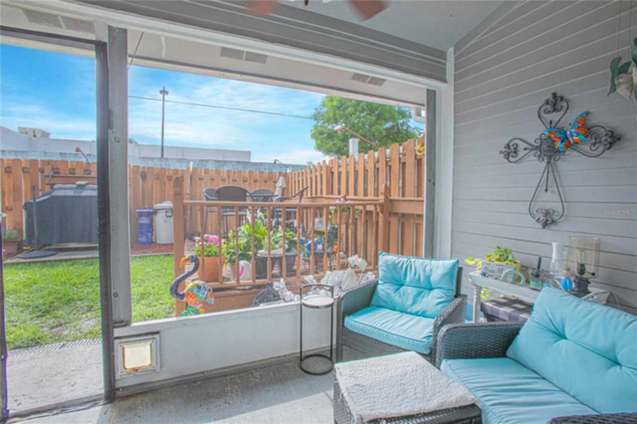 Rates have dropped and with the free one-year interest rate buydown, it's time to buy. Welcome home to your large (1, 406 square feet) single-story, two-bedroom, two-bath townhome in the desirable Southern Villas community. This home is bathed in natural light from the multiple skylights, interior atrium and three sliding glass doors. The soaring vaulted ceilings make the living area appear voluminous. The primary bedroom, at back of the home, is your peaceful oasis with a separate makeup/dressing area, a huge walk-in closet and en-suite bath with a tiled, glass-enclosed, walk-in shower. This modern bath was completely remodeled in 2024. The second bedroom and guest bath with tub are strategically placed in front of the townhome, providing privacy for you and guests. Or use it as your home office. The kitchen (also newer) has plenty of space for cooking and storage with its wood cabinets, pantry with a stacked washer and dryer, breakfast bar and granite countertops. Enjoy meals in your formal dining area. The great room has a wet bar, wood-burning fireplace and sliding glass doors that lead to your screened-in back porch. Enjoy your private, fence-enclosed backyard with its new wood deck, grill deck and lawn for your pets and outdoor fun. Your home is in the Conway area and is convenient to SODO, Milk District, Lake Eola, downtown Orlando, Orlando Airport, Barber Park, restaurants and shopping. HOA fee covers your roof, exterior siding, tennis court, pool and lawn maintenance. Home has a transferable termite bond. Roof replaced 2024, replumbed 2019, interior painted 2022. Qualified buyers may receive a one-year interest rate buydown for the first year when financing this home with Chris Musto, NMLS 107227 at Select Lending Services. Subject to credit approval and program eligibility. Rate buydown will be paid for by the lender. Call me for a private tour today.