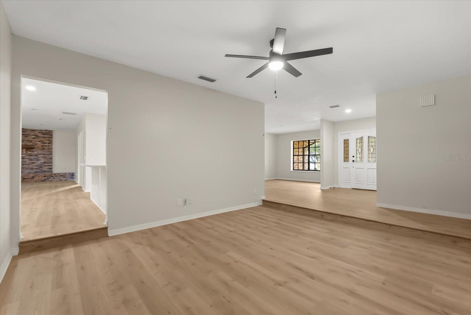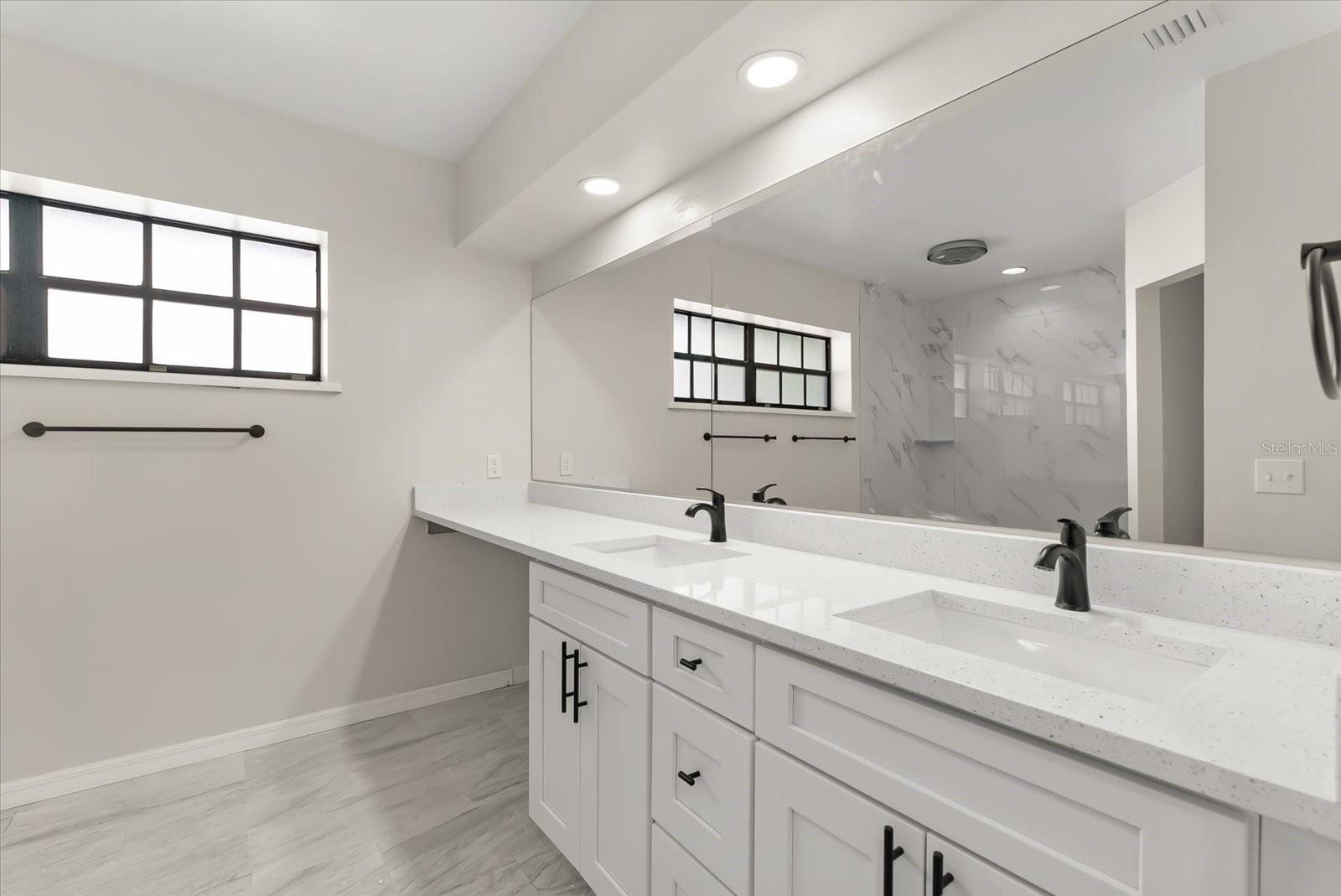 Welcome to this fully renovated 4-bedroom, 3-bath single-family home offering 2, 682 sq. ft. of comfortable living space in a no-HOA community. Thoughtfully updated throughout, this property combines solid brick construction with modern finishes and exceptional value. The 2023 roof, two brand-new A/C systems (2025), and two new water heaters ensure peace of mind for years to come. Step inside to discover a bright open layout with new luxury vinyl flooring throughout, fresh interior paint, and a cozy fireplace. The upgraded kitchen showcases California-style quartz countertops, brand-new stainless steel appliances, and new custom cabinetry—perfect for everyday living and entertaining. The split floor plan features two primary suites, each with beautifully upgraded bathrooms that include double vanities, a soaking tub, walk-in tile shower, and a private water closet. Enjoy outdoor living with a covered patio, fenced backyard, and spacious yard ideal for family gatherings or pets. A new garage door, two-car garage, and no carpets add to the home’s appeal. Offering a combination of modern comfort, strong construction, and excellent value, this move-in ready home stands out as one of the best in the area for under $500K.