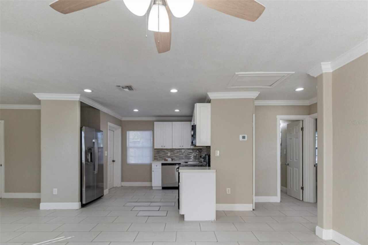 One or more photo(s) has been virtually staged. One or more photo(s) was virtually staged. This beautifully finished one-story home features 3 bedrooms and 2.5 bathrooms with stylish details throughout. The kitchen shines with stainless steel appliances, white cabinets, a decorative backsplash, and accent lighting that adds warmth and charm. Crown molding enhances the elegance of the living spaces, while the wood-fenced backyard offers privacy and space to relax or entertain. Schedule a showing today! CORPORATE SELLER - NO INFO ON ROOF/AC/SYSTEMS AGES.