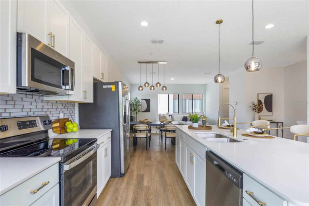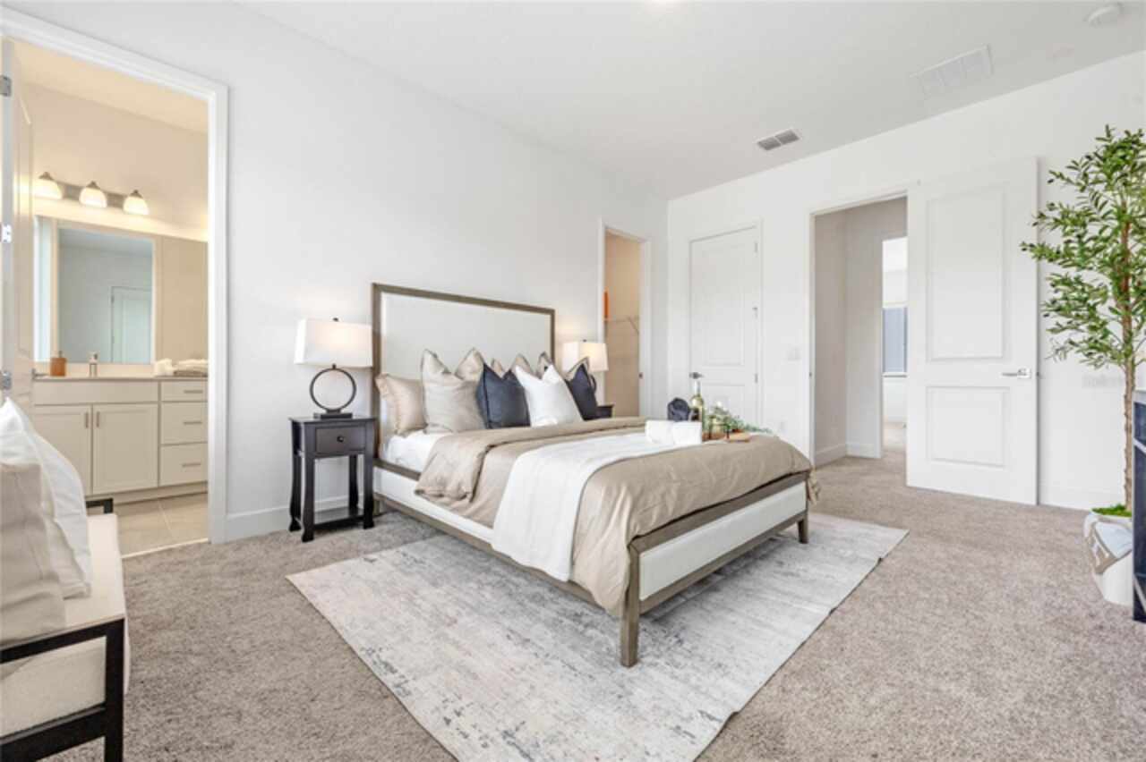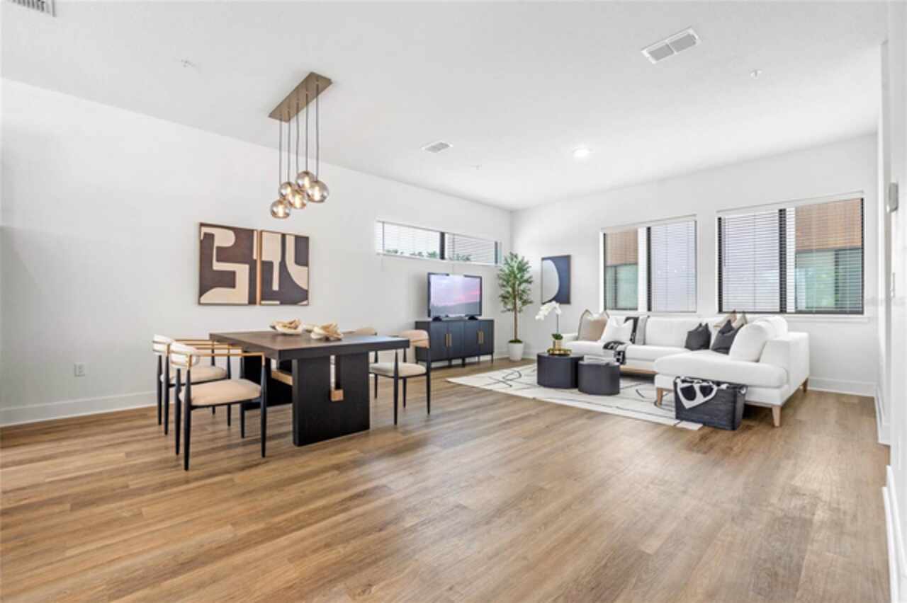*SAVE HUNDREDS PER MONTH*Seller is offering a 30-year fixed rate low 4.75% through Build & LockTM. The newly built SoDo House is a contemporary 23-unit townhouse development in the heart of Orlando. As you enter this unit, you'll find a versatile bedroom with a full bathroom, perfect for use as an office or guest suite. The first floor also includes a private patio accessed through sliding doors and an entrance to the attached garage and carport. The second floor is designed for modern living with an open-concept layout that combines the living room, kitchen, dining area, and a half bath. High 10-foot ceilings and oversized windows flood the space with natural light and give access to a private balcony. The third floor is your private space, housing the two primary bedrooms with en-suite bathrooms, walk-in closets, and easy access laundry nook. The HOA ensures maintenance-free living as exterior and grounds maintenance, along with pest control are included in the HOA fee. Located in a vibrant area, SoDo House is just steps away from the SoDo Shopping Center, featuring Super Target, Gators Dockside, The Smoothie Room, and TJ Maxx, among other well-known businesses. You’ll also enjoy proximity to Walmart, Orlando HealthHospital, and major highways such as I-4 and Highway 408, Downtown Orlando, the Kia Center, Exploria Stadium, Lake Eola, and the Dr. Phillips Center for the Performing Arts. A variety of restaurants and fine dining options are just minutes away. Secure your spot in this exclusive 23-unit development and embrace the best of urban living. Builder upgrade packages are available! Schedule your private showing today! Disclosure: Photos shown are of the model unit and are for illustrative purposes only. Actual unit features, finishes, and layout may vary.