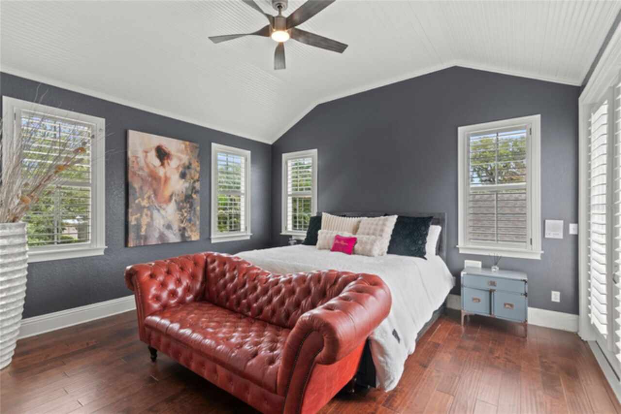 Cathedral Ceiling(s), Ceiling Fans(s), Crown Molding, Eat-in Kitchen, PrimaryBedroom Upstairs, Solid Surface Counters, Split Bedroom, Stone Counters, Vaulted Ceiling(s), Walk-In Closet(s), Window Treatments