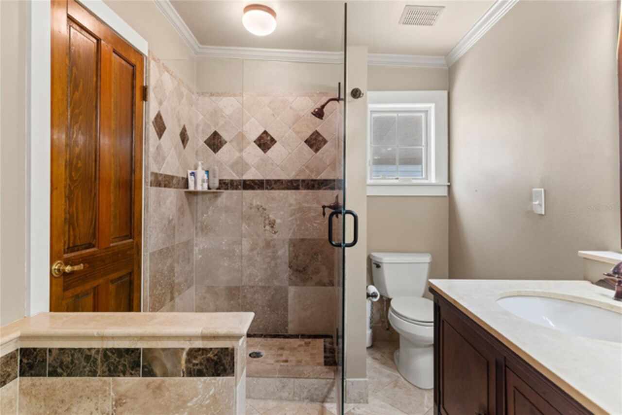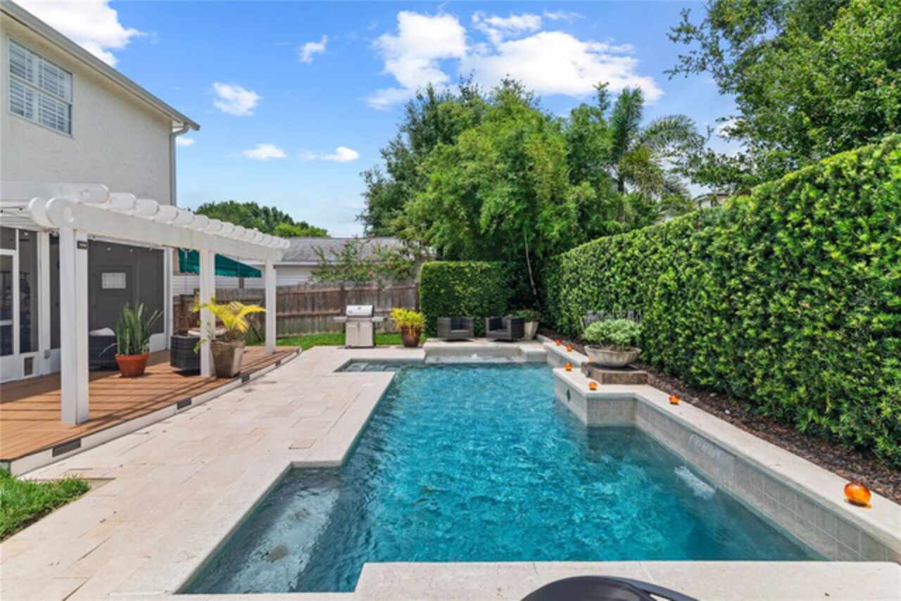 Don’t miss the opportunity to preview this incredible home. This exquisite College Park residence offers a blend of classic charm and modern amenities, making it the perfect place to call home. Recent upgrades include a NEW ROOF, NEW HOT WATER HEATER, and fresh exterior paint. With 4 spacious bedrooms and 3 full baths, this home provides ample room for a growing family and entertaining guests. The authentic hardwood floors in the main living areas create a warm, inviting atmosphere, while crown molding throughout adds a touch of sophistication. Energy-efficient Pella windows and plantation shutters elevate the home's appeal and enhance its charm. Location is a standout feature—just one block from Lake Ivanhoe, offering residents easy access to recreational activities on the water and nearby parks. Step outside to your own private retreat, featuring a sparkling pool, a pergola perfect for lounging on sunny days, and a screened-in porch. The large deck offers even more outdoor living space for relaxation and entertaining. Upstairs, the master suite is an absolute sanctuary. It boasts vaulted ceilings, a private patio, two walk-in closets, and a luxurious en-suite bath with a full walk-in shower with dual showerheads, a separate jetted spa tub, and double vanities. The attic space provides endless possibilities—ideal for storage, a craft room, or even a yoga studio. The main floor is equally impressive, with a formal living room featuring a cozy fireplace and updated lighting fixtures. The spacious dining room offers built-in art deco shelving and is perfect for hosting elegant dinner parties. In the chef’s kitchen, stainless steel appliances and two pantries make cooking and entertaining effortless. A convenient inside laundry room adds to the home’s functionality. The largest bedroom downstairs includes an en-suite bath with a soaking tub, separate shower, and dual vanities—ideal for guests or in-laws. Ceiling fans are throughout the home, and a water softener has been installed. Situated on a charming brick-lined street, this home exudes character and appeal. College Park offers the best of both worlds—small-town charm with modern conveniences. With a Publix, Post Office, local shopping, and dining, all just minutes from downtown Orlando, the Dr. Phillips Performing Arts Center, Florida Hospital, and the Orlando Science Center, this location truly can’t be beat. This College Park gem is an ideal blend of style, function, and location. Come see it for yourself—you won’t be disappointed!