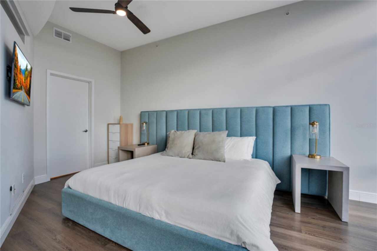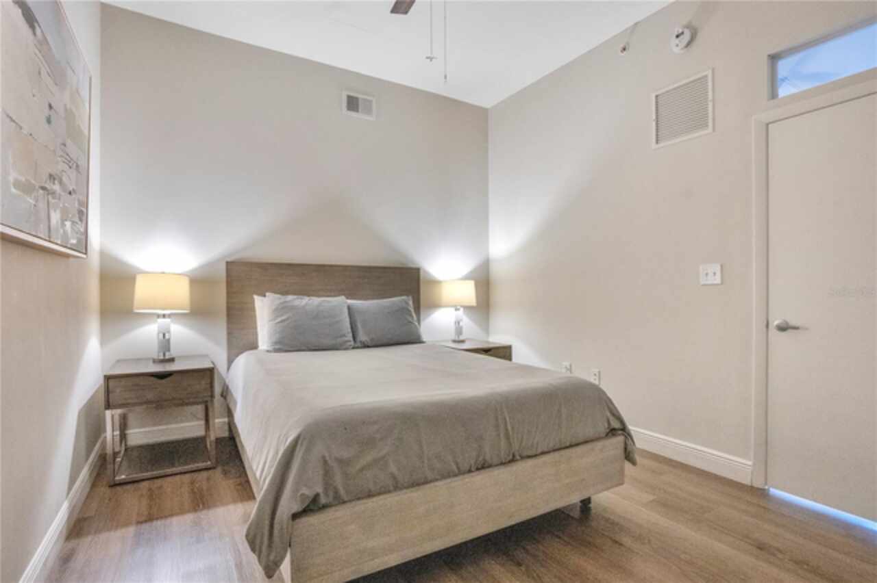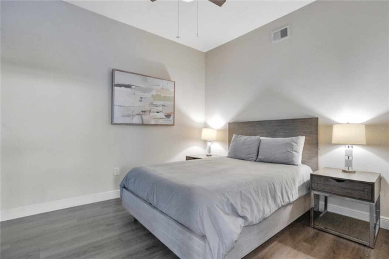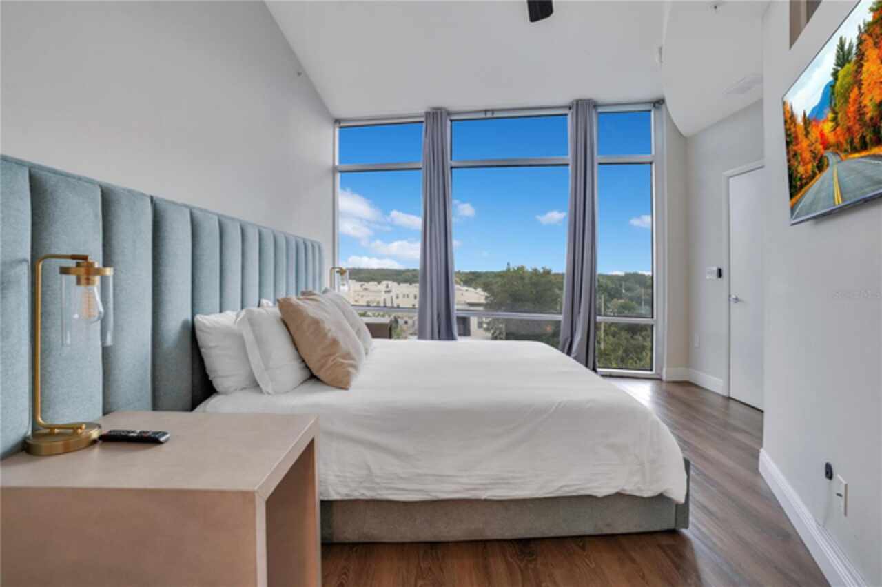 Spacious 4-bedroom, 2-bath condo in the heart of Downtown Orlando with one of the best values in the area. Located just three blocks from Lake Eola and within walking distance to Thornton Park, Dr. Phillips Performing Arts Center, and endless dining, shopping, and nightlife. Inside, you’ll find high ceilings, laminate flooring throughout, and an open-concept living area with a full wall of windows bringing in natural light. Step onto your private balcony for great city views. The kitchen offers granite counters, cherry cabinets, pendant and recessed lighting, and plenty of prep space. The primary suite is oversized with floor-to-ceiling windows, while the en suite bath includes dual sinks, granite countertops, and a large walk-in glass shower. The second bedroom is generously sized and perfect for guests, a home office, or flex space. Enjoy secured, covered parking on two levels with assigned spaces, plus rooftop amenities including a BBQ grill and stunning views of the Lake Eola fountain. Downtown living doesn’t get better than this — all just steps away from Orlando’s best.