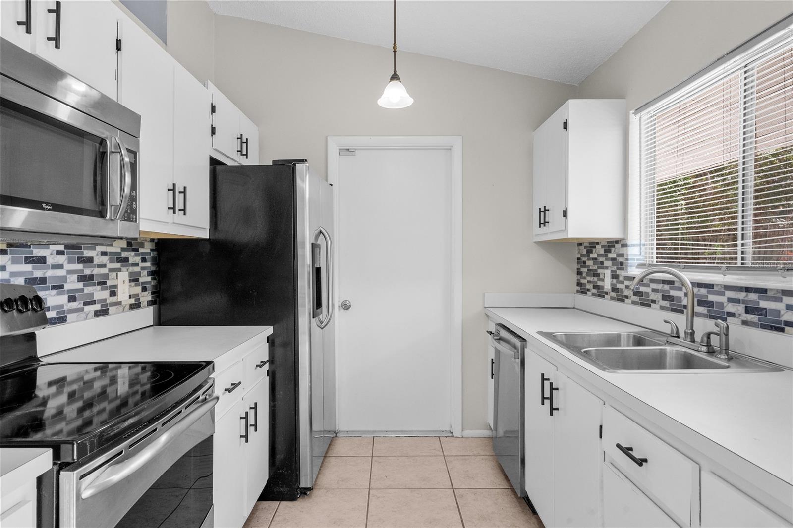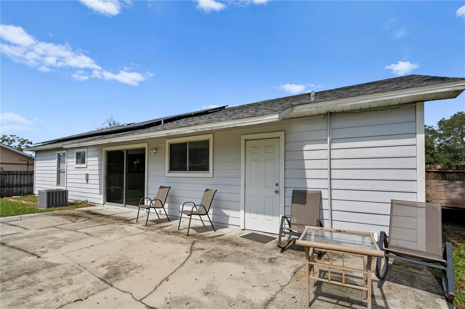 Welcome to this **NO HOA ** Community. Plenty of space for your hobbies/work. You can possibly even add an ADU or storage building. (OC Approval). Beautiful 2 beds/2 bath home in FANTASTIC subdivision! As you enter, you’ll love the OPEN FLOOR PLAN that offers VAULTED ceilings & lots of natural light coming from the 3 windows and extended sliding glass doors leading to the huge backyard and firepit! The kitchen has a full stainless steel appliance package. Every room is nicely updated with ceramic tile throughout the entire home. Two FULL bathrooms! This oversized 1/3 acre lot is FULLY fenced with a double-door gate so you can park an RV or boat as needed! There is a screened-in front lanai for comfortable seating outside. In the back yard, you’ll find extra storage space in the lockable shed. The driveway is a 2-car driveway! The one-car garage is deep with plenty of space to park and store your items. WASHER/DRYER are included! New ROOF added in 2020, new HVAC 2020, and newer SOLAR PANELS.