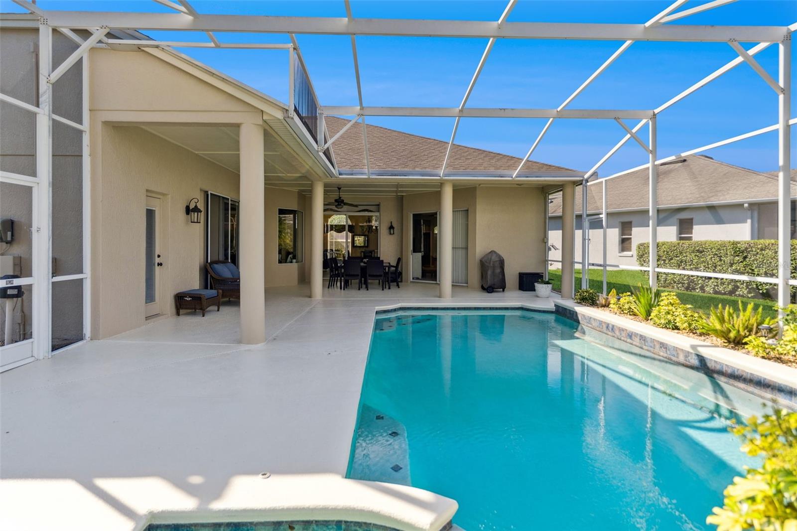 Stunning waterfront POOL home in the heart of Waterford Lakes. This beautifully maintained 4-bedroom, 3-bathroom home offers the perfect blend of comfort, style, and tranquility. Situated on a peaceful waterfront lot, the home features a sparkling, updated POOL with serene lake views—your private oasis awaits. Step inside to an open floorplan that seamlessly connects the living and dining rooms to the screened lanai, creating a natural flow for indoor-outdoor living. The spacious family room opens directly to the kitchen and overlooks the Gorgeous Solar Heated POOL and SPA and lake, making it the perfect gathering space for entertaining or relaxing with loved ones. The kitchen is well-appointed and designed for both functionality and style with pull outs in every cabinet and a custom built in pantry organizer. The Primary bedroom is a true retreat, with sliders to the POOL and Lanai. The Primary Bathroom features double sinks, a separate shower and large soaking tub and more - a built-in closet system! The split bedroom layout offers large bedrooms with privacy and flexibility, while large windows and 3 sets of sliding glass doors flood the home with natural light and showcase the stunning water views. Upstairs is a large Bonus Room that has endless options for use! Additional highlights include a freshly painted exterior (2025), a total home replumb (2020), newer roof (2019), and hot water heater (2020)—all contributing to long-term peace of mind. With a 3-car garage and ample storage space, this home checks every box. Located in the highly desirable Waterford Lakes community, the HOA provides amenities including an Olympic sized Pool, separate Toddler Pool, multiple sporting fields, Tennis Courts and Pickleball Courts, Basketball Courts, a shaded/covered playground, outdoor fitness equipment, a lakefront walking track, dog park and lots of community events. Within a couple mile radius you can find the A rated elementary and middle schools as well as the Waterford Lakes Town Center with a multitude of shopping, dining and entertainment options, including a Super Target and Movie Theater!