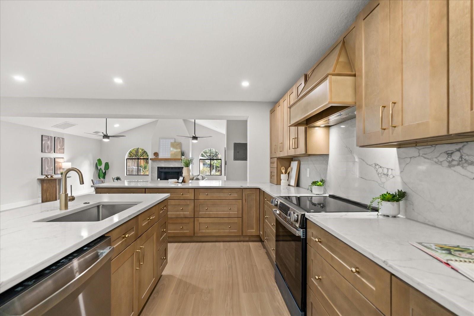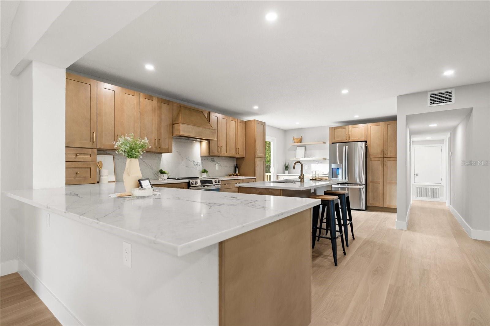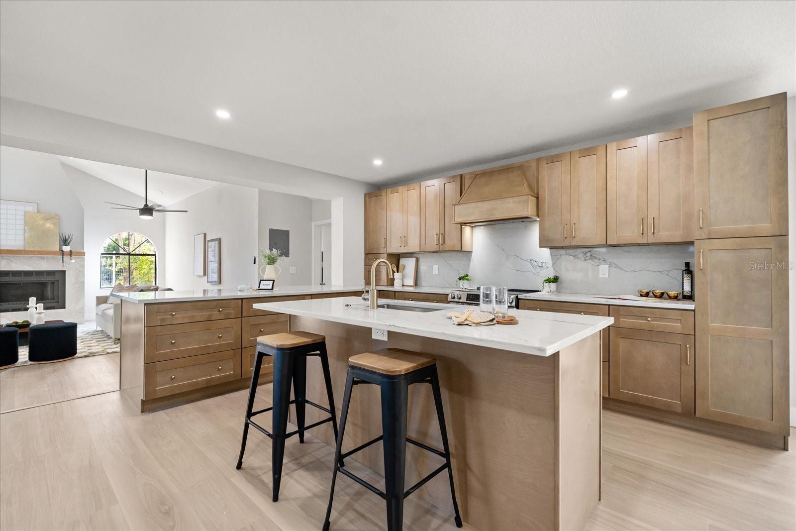 Under contract-accepting backup offers. Fully renovated 4-bedroom, 2-bath home featuring a spacious open floor plan in the highly desirable Dr. Phillips area. The owner spared no expense—every detail has been thoughtfully updated for your comfort and peace of mind. Recent upgrades include remodeled bathrooms, fresh interior and exterior paint, new windows, 2025 AC and a 2022 roof. The stunning chef’s kitchen is the centerpiece of the home, showcasing double kitchen islands, 36-inch soft-close custom wood cabinetry, brand-new GE appliances, a striking 36-inch chef-inspired hood, and luxury quartz countertops that extend seamlessly up the backsplash. Throughout the home, you’ll find high-end luxury vinyl plank flooring, complemented by elegant marble flooring in the bathrooms. Additional updates include a new water heater 2025 and a brand-new garage lift. Newer septic and drain field replaced by the previous owner in 2019, and the roof was also replaced by them in 2022. Enjoy the custom made coffee bar before stepping outside to a freshly built deck patio overlooking serene natural views. Mature bushes provide excellent privacy, making this outdoor space perfect for relaxing or entertaining. The property also features two brand-new fences and a spacious two-car garage. Fresh sod was laid recently in front of the home. The new home owners will also be allowed private access to Lake Marsha. Located within the top-rated Dr. Phillips school district and perfectly positioned near Orlando’s premier attractions—Universal Studios, Walt Disney World, and International Drive—with easy access to I-4 and major highways. This beautifully renovated home is move-in ready and offers unmatched style, comfort, and convenience in the heart of Dr. Phillips.