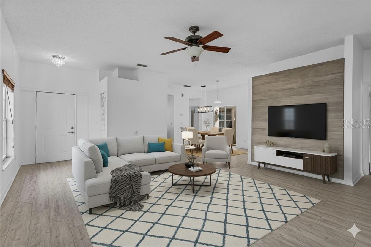 Welcome to 5673 Parkview Lake Dr, Orlando, FL — a beautifully upgraded 3-bedroom, 2-bath home with serene pond views and a versatile flex room ideal for a home office, gym, or guest suite. This move-in-ready home features luxury vinyl plank flooring throughout, a bright and inviting layout, and a spacious great room perfect for relaxing or entertaining. The updated kitchen offers plenty of cabinet space, a cozy breakfast nook, and peaceful water views. The primary suite includes double vanities, a soaking tub, and direct access to the screened lanai, where you can unwind while overlooking tranquil Parkview Lake. Additional highlights include a 2-car garage, community pool, and tennis courts. Ideally located near major highways, theme parks, shopping, dining, and top Orlando attractions, this home offers the perfect blend of comfort, convenience, and Florida lifestyle.