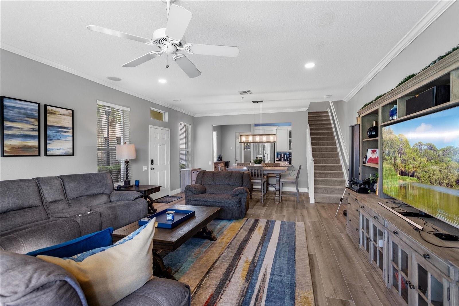Ceiling Fans(s), Crown Molding, PrimaryBedroom Upstairs, Solid Wood Cabinets, Walk-In Closet(s)