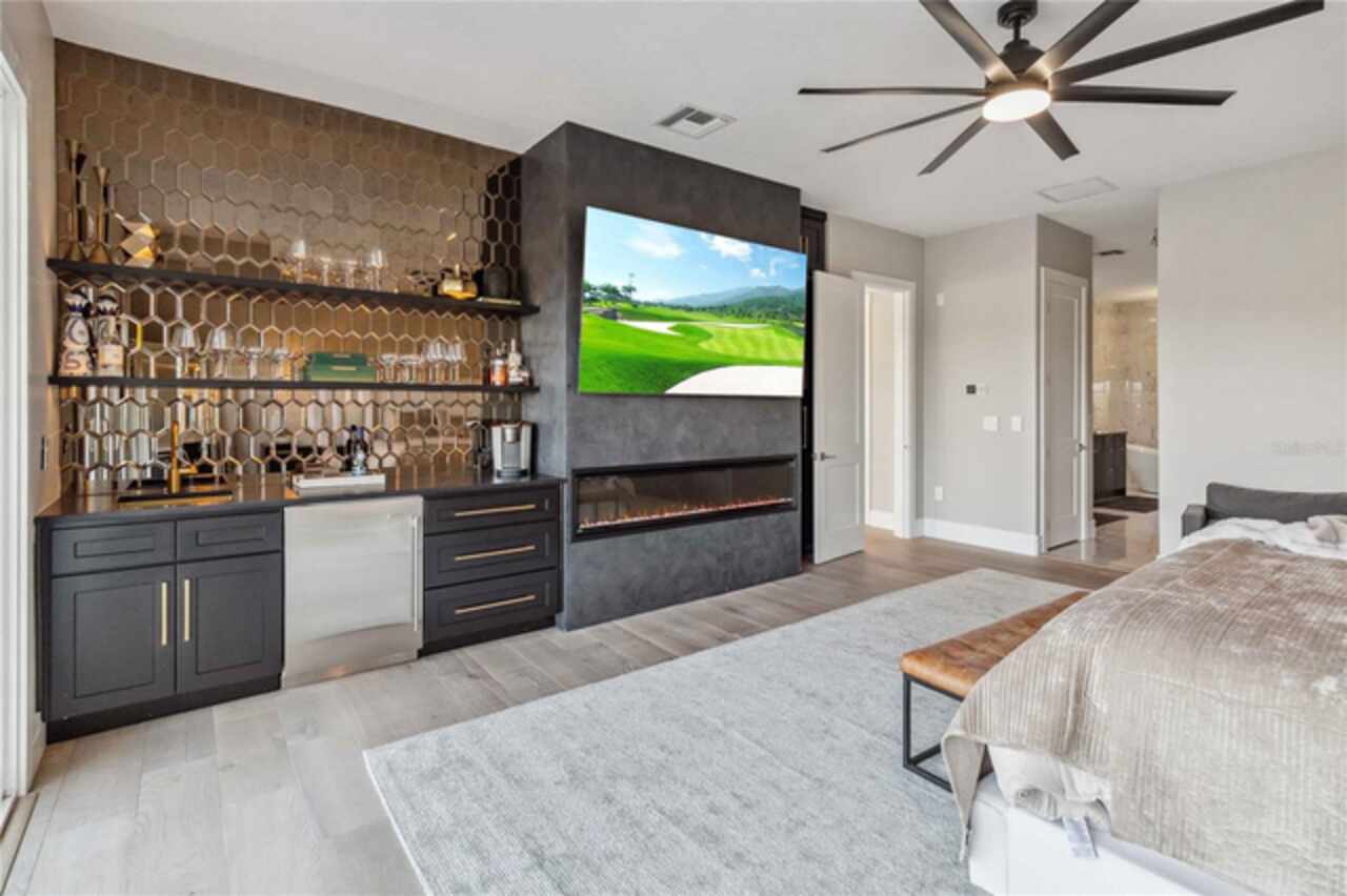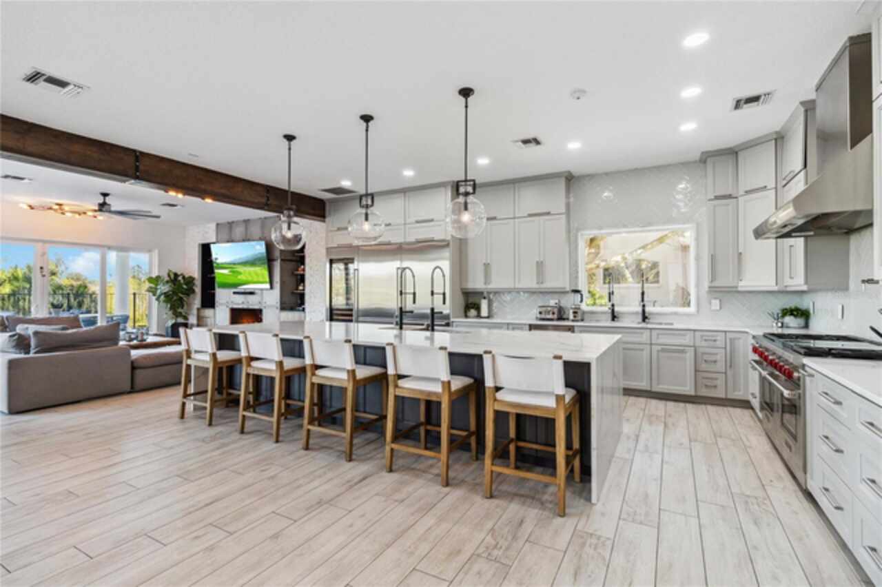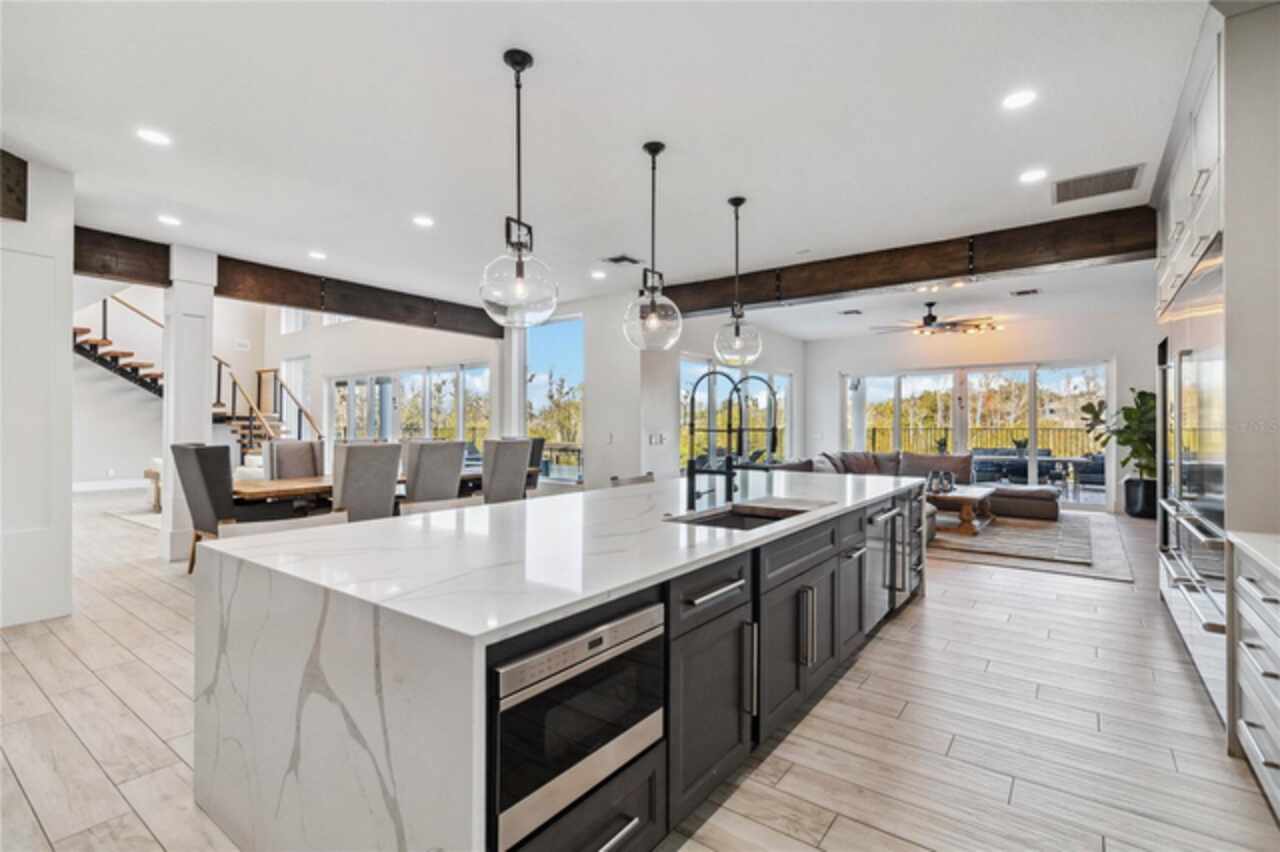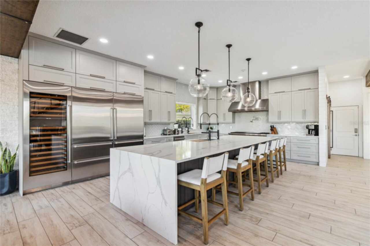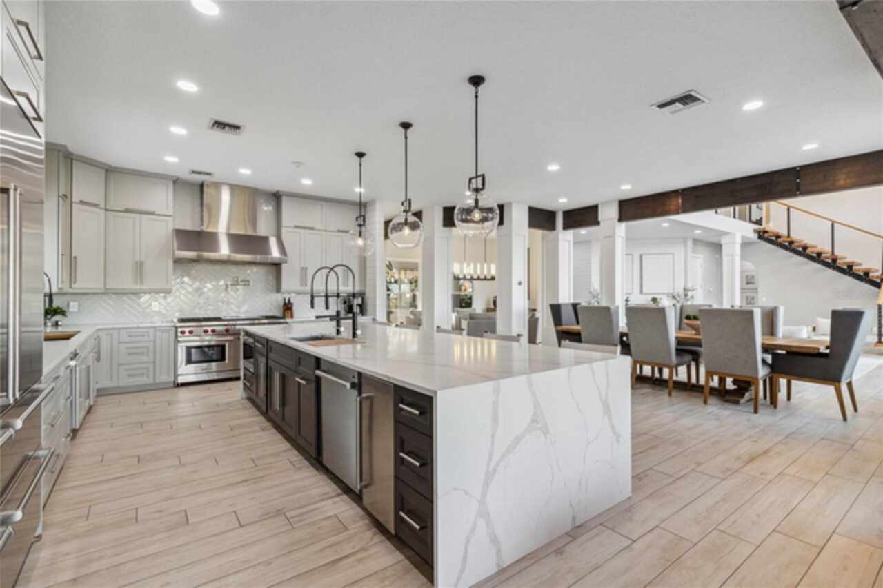 Welcome to the best of both worlds- Arnold Palmer's Bay Hill Golf Course Community. Golf course & lake front views. This home was thoughtfully designed with the love for family, friends & entertaining. Lake front lifestyle without the lake front taxes. The open floor plan creates a perfect place for entertaining and enjoying the company of loved ones. Property features a beautiful 14 foot Carrara Quartz waterfall island, 2-45" Kohler workstation prep sinks & industrial faucets (perfect for prepping all of that party food and of course cleaning all the dirty dishes), double dishwashers & trash can pull out drawers… just in case you don’t feel like washing all those dishes by hand, we got you! ;). 60 inch WOLF dual zone gas range with 6 burners, charbroiler and infrared griddle with a stainless steel pot filler and industrial size hood, mirrored 36 inch SubZero Fridge & Freezer combos, 30 inch dual temperature SubZero wine cooler, a 30” WOLF transitional microwave drawer built into the lower cabinets. Wake up with freshly brewed coffee from the master bedroom which features a built in bar/coffee station while enjoying sunrise views from the master balcony over Bay Hill Charger #2 or enjoy a glass of wine in the evening with stunning colors from the sun setting over the lake on the pool deck. All bedrooms are the size of master suites with en suite baths. Two bedrooms located on the main level with the Master Bedroom and guest suite on second story which also has an open loft area that could be used for an office or play area. Additional features: Gated community, large oversized lot, boat dock, lake & golf course views, oversized bedrooms with ensuite bathrooms.