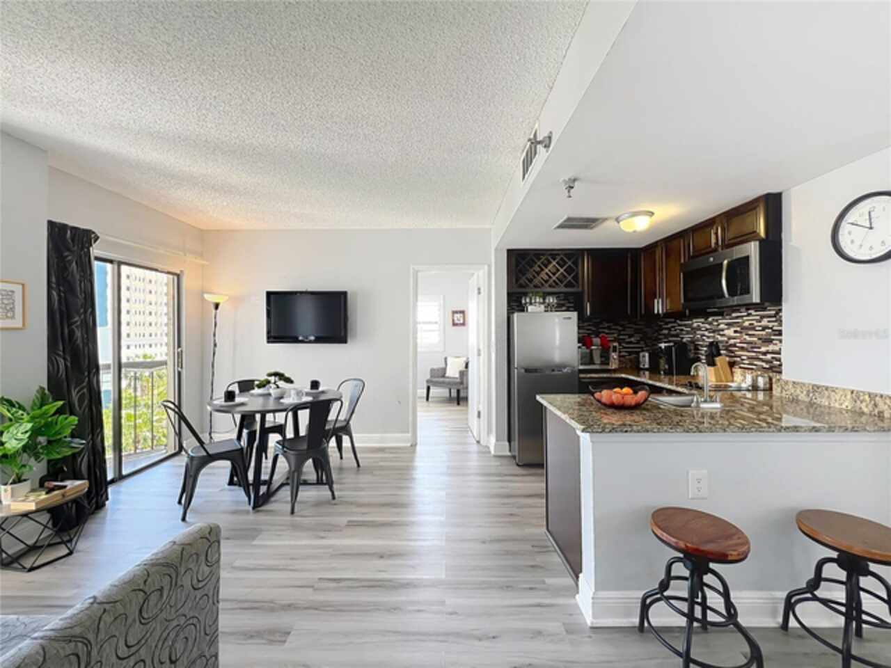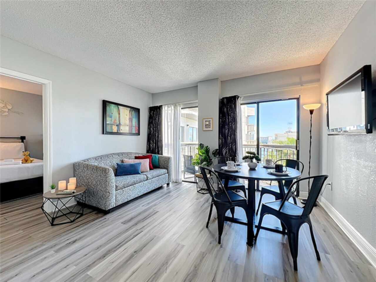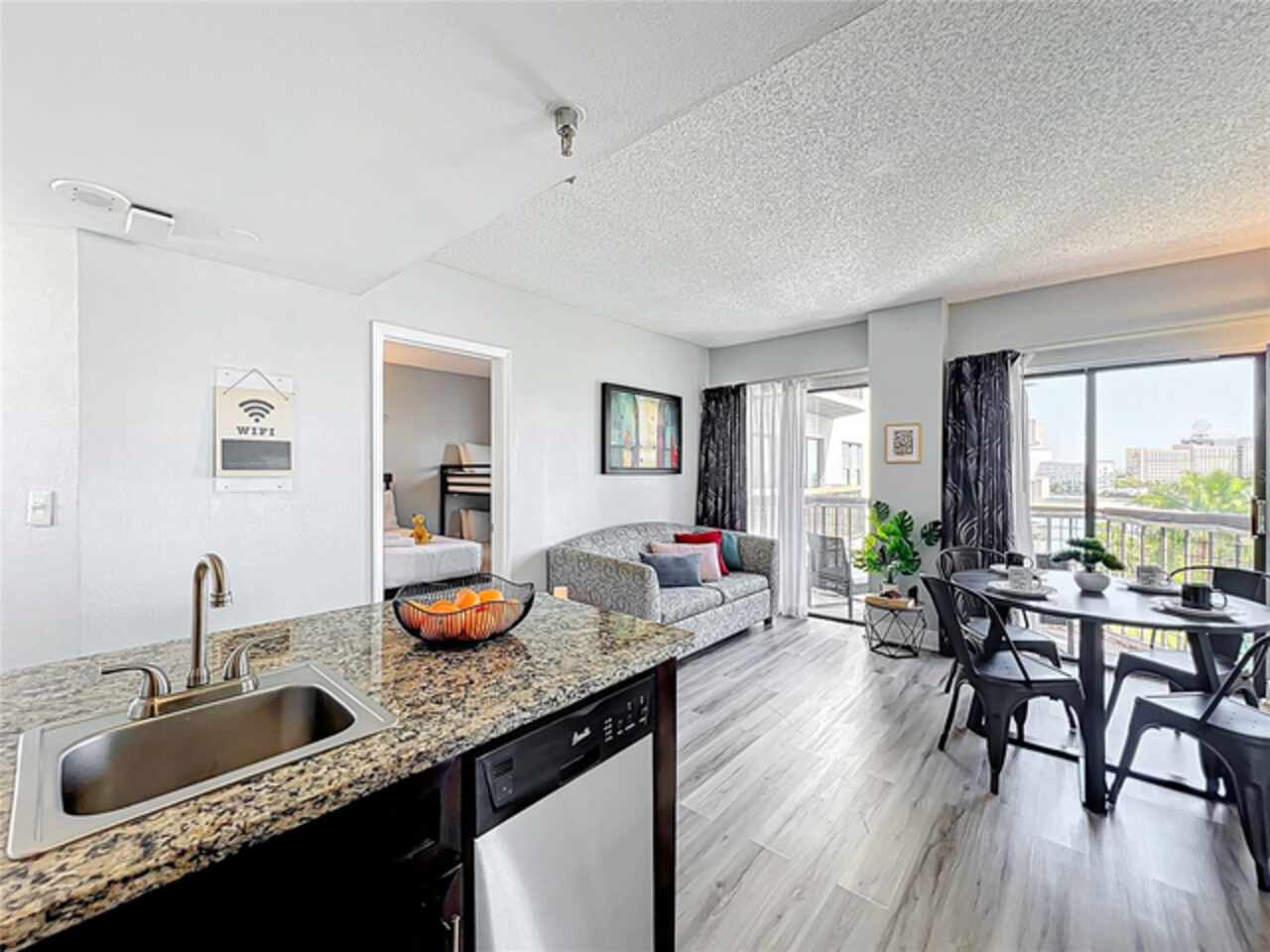 **EPIC UNIVERSE is OPEN and minutes away***** You can MANAGE YOUR OWN Airbnb or use the community on site manager**You can also live in the unit. **Unique 2/2 floor plan.** The condo has been stylishly updated and has all of the furnishings a guest would need including cable and internet! This unit has a unique floorplan with a private hallway inside. It's a great spot for suitcases, shopping bags, gifts to take home, etc. The condo has a sofa bed so it can sleep up to seven guests. The community is centrally located for easy access to Disney and Universal Studios. It's located off of International Drive for all of your dining and shopping needs and lots of entertainment venues. The condo is located on the 6th floor of an 8 story tower. Your guests will have a view of the pond and beautiful lights at night of the local venues. The Enclave has two outdoor pools, one indoor pool, lighted tennis courts, fitness room, game room, playground and a breakfast/lunch cafe.