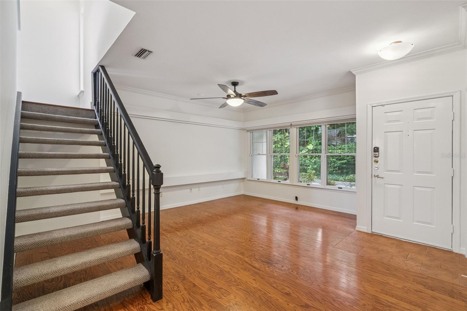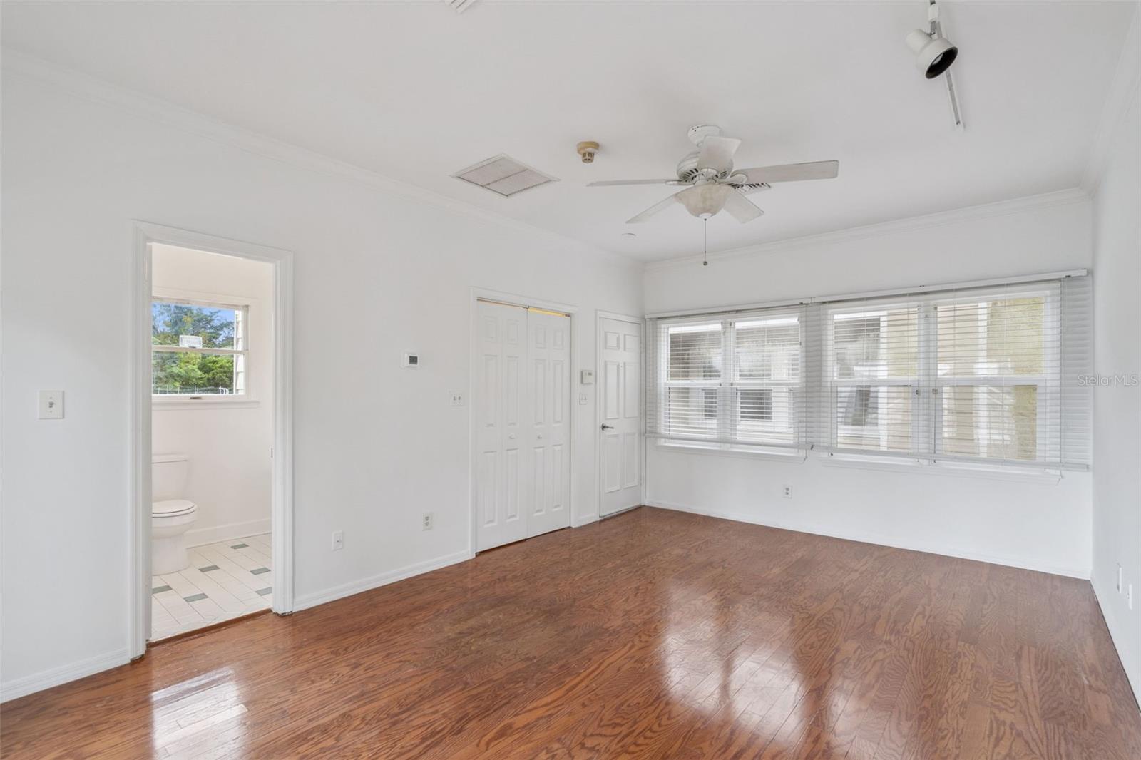 Under contract-accepting backup offers. Embrace urban living with this unique 3-bedroom, 3.5-bath townhome-style condo in the heart of Downtown Orlando’s Mills 50 District—steps from Lake Eola, Thornton Park, Mills Market, and the city’s best dining and nightlife. The open layout welcomes you with spacious living and dining areas, a stylish kitchen with granite counters, stainless steel appliances, bar-top seating, and a secondary living space with a wood-burning fireplace. Upstairs, two oversized bedrooms feature en-suite baths and walk-in closets. A private garage apartment with its own entrance sits above the two-car garage—perfect for guests, in-laws, or rental income. Between the main home and garage apartment, a screened courtyard offers a private retreat for relaxing or entertaining. Turn-key upgrades include hardwood floors, large windows for natural light, and french doors to the courtyard. Recent updates: HVAC (2022), roof resealed (2024), Hardie board siding, and composite deck.