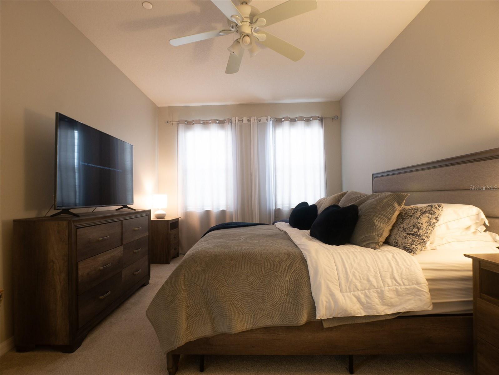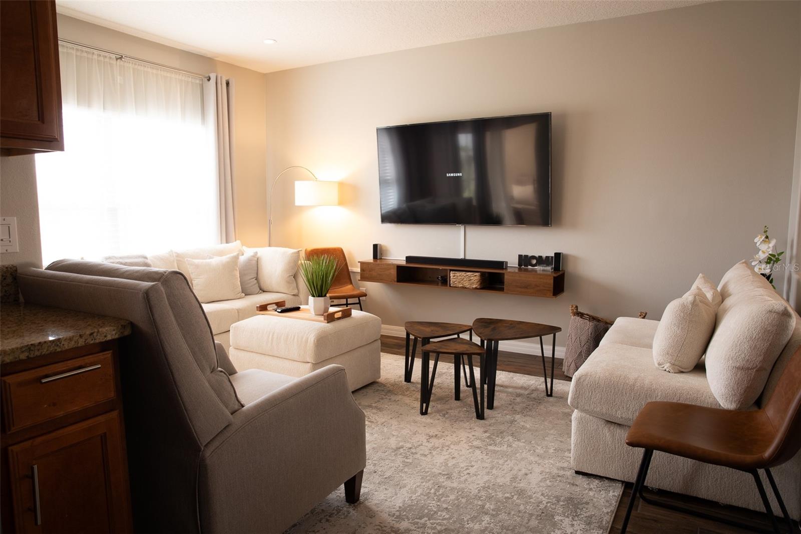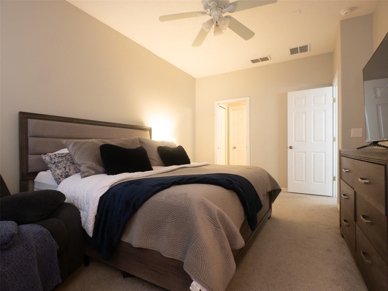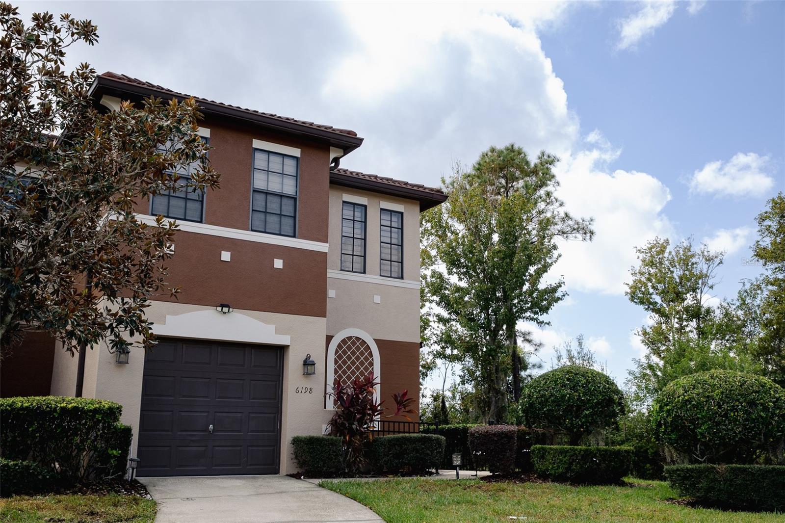 Beautifully situated in the gated community of Tivoli Gardens, this three-bedroom, two-and-a-half-bath end-unit townhouse offers exceptional privacy and one of the largest lots in the neighborhood. Located on a quiet cul-de-sac, the home features an expansive patio overlooking a side yard and serene conservation views. As you enter, you are welcomed by soaring cathedral ceilings that fill the home with natural light. The main level showcases an open floor plan with tasteful laminate wood flooring, arched doorways, and well-defined living and dining spaces. A convenient half bath with pedestal sink and pocket door is located near the entry. The family room opens to a covered lanai, creating the perfect space for indoor-outdoor living. The spacious kitchen includes 42-inch wood cabinetry, stainless steel appliances—including a new refrigerator and oven (2023)—and a generous closet pantry. Upstairs, a versatile loft offers the ideal setting for a home office or additional living space. The primary suite features a walk-in closet, ceiling fan, and en-suite bathroom with a large vanity, walk-in shower, and linen closet. Two additional guest bedrooms, each with ceiling fans and ample closet space, are located down the hall for added privacy. The second floor also includes a full guest bathroom and a conveniently located laundry room. This home offers updated major systems, including an AC unit and water heater, and was freshly painted in December 2023. Tivoli Gardens is known for its Mediterranean-style architecture, tile roofs, mature landscaping, and a welcoming community atmosphere, complete with a pool, basketball court, and playground. Excellent location—just 15 minutes to Orlando International Airport and Lake Nona Medical City, 30 minutes to Disney and Universal, and about an hour to Cocoa Beach. Schedule your private showing today.