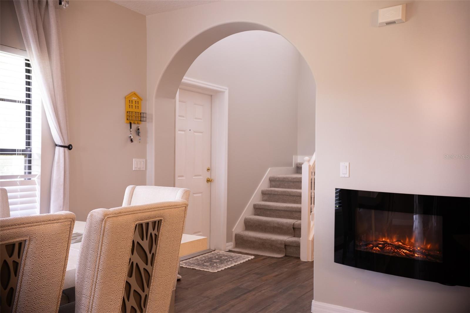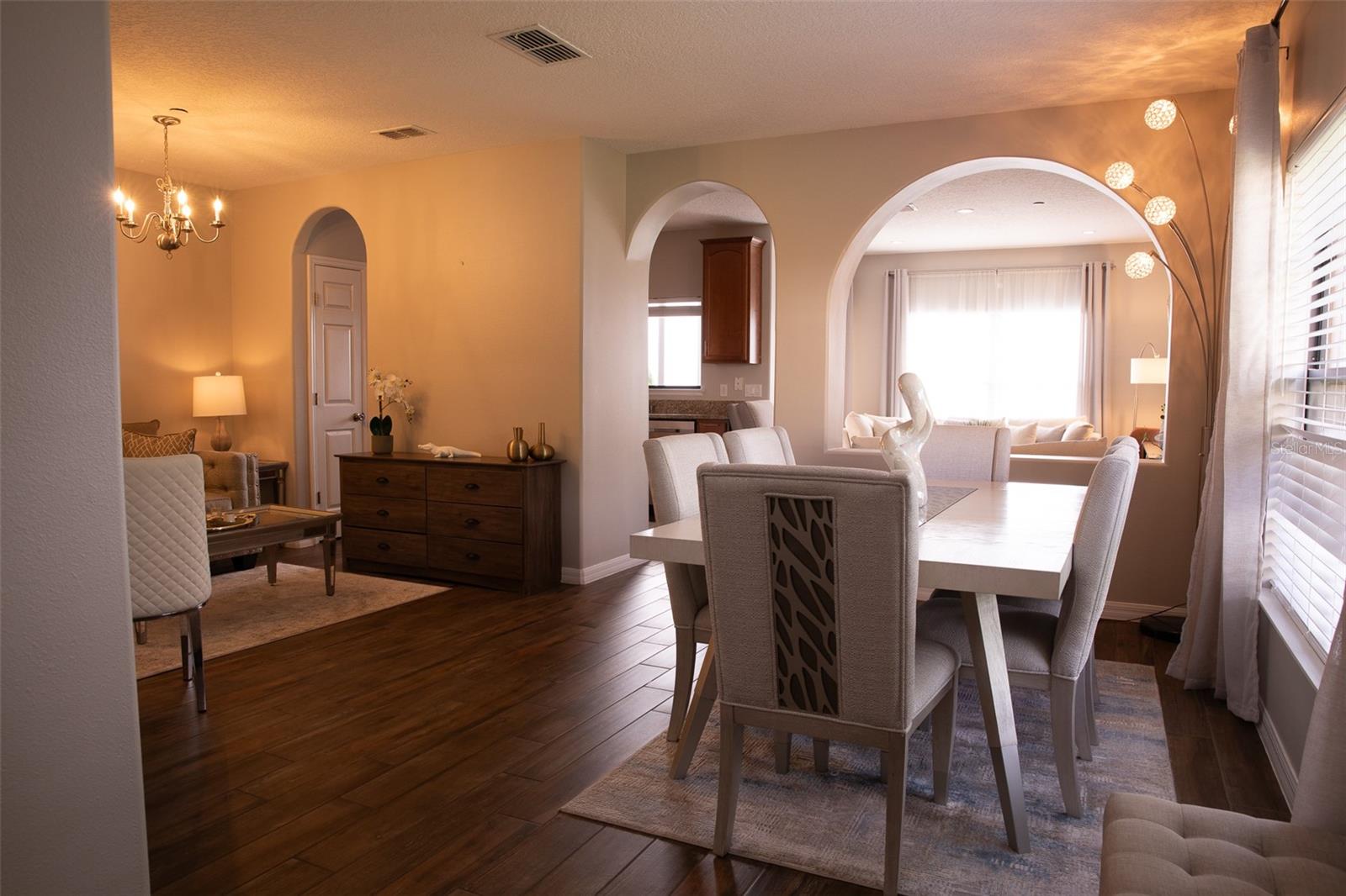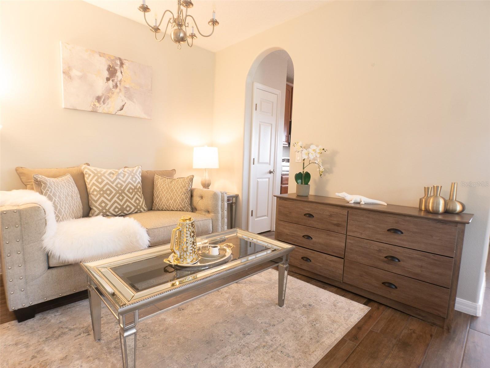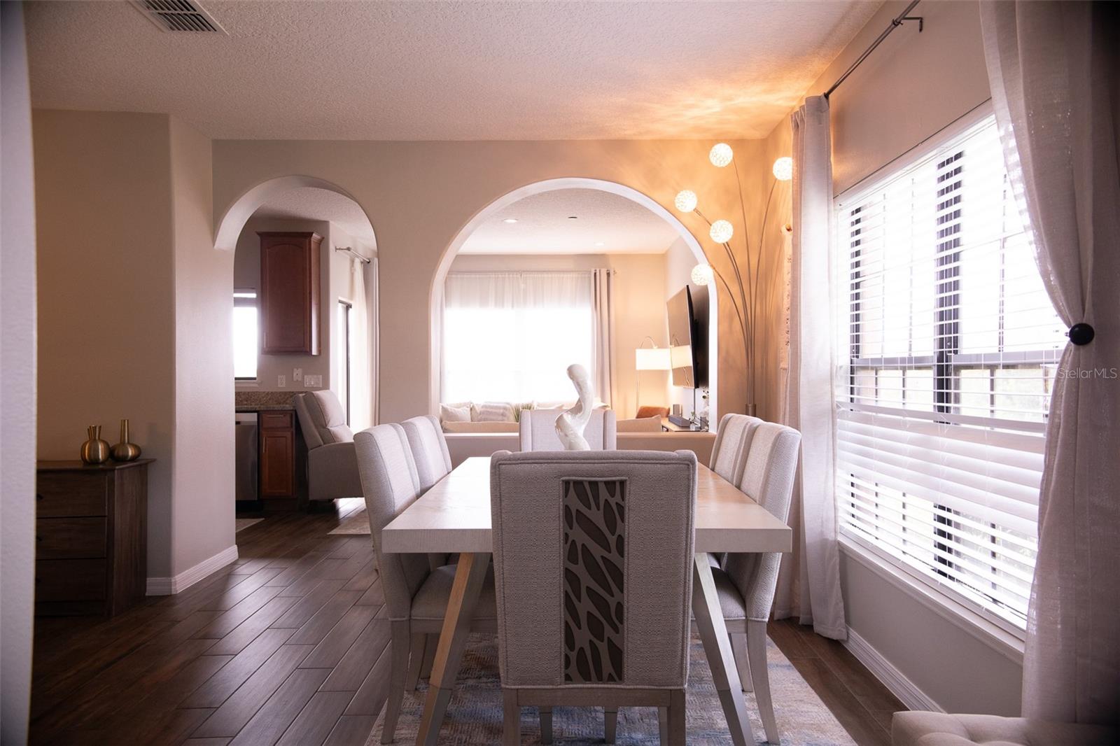 Beautifully situated in the gated community of Tivoli Gardens, this three-bedroom, two-and-a-half-bath end-unit townhouse offers exceptional privacy and one of the largest lots in the neighborhood. Located on a quiet cul-de-sac, the home features an expansive patio overlooking a side yard and serene conservation views. As you enter, you are welcomed by soaring cathedral ceilings that fill the home with natural light. The main level showcases an open floor plan with tasteful laminate wood flooring, arched doorways, and well-defined living and dining spaces. A convenient half bath with pedestal sink and pocket door is located near the entry. The family room opens to a covered lanai, creating the perfect space for indoor-outdoor living. The spacious kitchen includes 42-inch wood cabinetry, stainless steel appliances—including a new refrigerator and oven (2023)—and a generous closet pantry. Upstairs, a versatile loft offers the ideal setting for a home office or additional living space. The primary suite features a walk-in closet, ceiling fan, and en-suite bathroom with a large vanity, walk-in shower, and linen closet. Two additional guest bedrooms, each with ceiling fans and ample closet space, are located down the hall for added privacy. The second floor also includes a full guest bathroom and a conveniently located laundry room. This home offers updated major systems, including an AC unit and water heater, and was freshly painted in December 2023. Tivoli Gardens is known for its Mediterranean-style architecture, tile roofs, mature landscaping, and a welcoming community atmosphere, complete with a pool, basketball court, and playground. Excellent location—just 15 minutes to Orlando International Airport and Lake Nona Medical City, 30 minutes to Disney and Universal, and about an hour to Cocoa Beach. Schedule your private showing today.