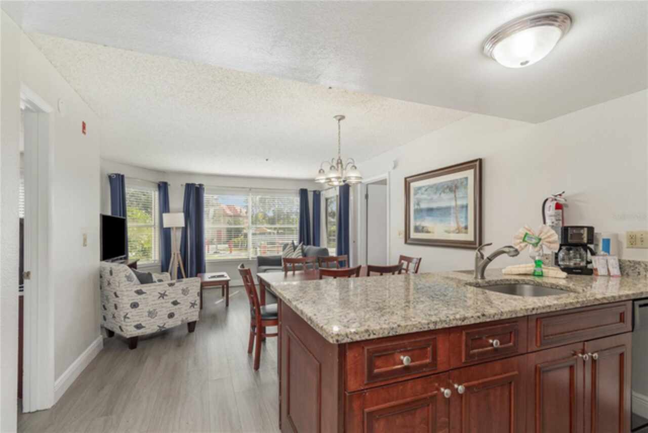 This fully furnished 2-bedroom, 2-bathroom, first-floor end unit is a fantastic investment opportunity! Completely renovated less than a year ago, this turn-key, income-producing condo is located in the sought-after Parc Corniche Resort and features a split floor plan, granite countertops in the kitchen and bathrooms, and a private balcony with peaceful views and no rear neighbors. The resort-style community offers top-notch amenities including a heated pool, jacuzzi, playground, fitness center, restaurant, bar, convenience store, dining hall, and laundry facilities. Enjoy added perks like shuttle service to major theme parks and an on-site short-term rental program for hands-off investing. Centrally located near Orlando’s world-famous attractions, outlet malls, International Drive, and just a short drive to Orlando International Airport—this unit is truly a gem!