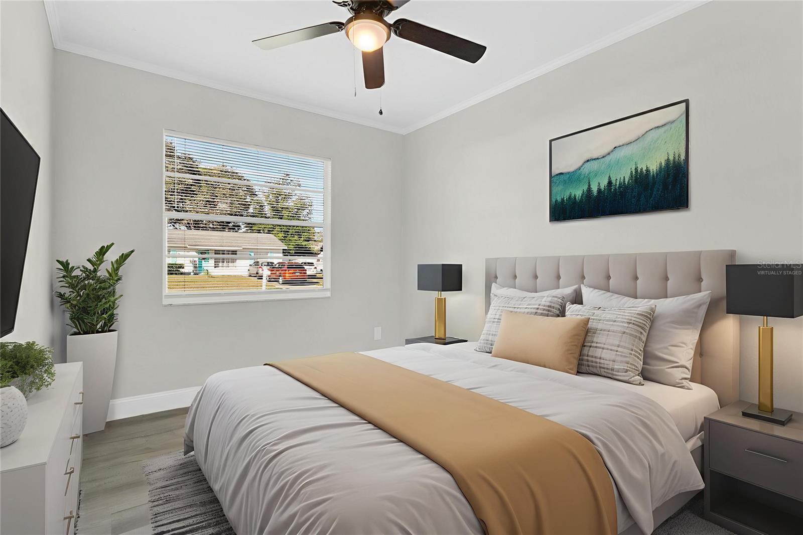 Under contract-accepting backup offers. One or more photo(s) has been virtually staged. Welcome to a home that has been completely updated and curated for effortless, modern living. This 4-bedroom, 1.5-bathroom property, spanning 1, 269 square feet, features fresh landscaping and a striking curb appeal with painted brick accents, a new wood entry railing, and a vibrant blue front door. Step inside to a bright, cohesive interior featuring fresh interior paint and durable, beautiful Luxury Vinyl Plank (LVP) flooring that flows seamlessly throughout the entire home. The renovation is centered around the stunning kitchen, which boasts high-end features: brand-new stainless steel appliances, quartz countertops, sleek shaker-style cabinets, a stylish tile backsplash, and new recessed lighting. It comes complete with front-loading washer and dryer, which are included with the sale, making the move-in process truly effortless. The entire property features an elegant Oil-Rubbed Bronze fixture package. The flexible layout includes three bedrooms plus a highly functional Flex Space (9’7” x 10’7”) for a home office or media room. Even the bathrooms are brand new, featuring new vanities, toilets, and shower in both the full and half-bath spaces. The property offers unparalleled peace of mind with major systems updates already complete: the A/C system is only 3 years old, the roof is 9 years old, and a newer hot water heater is installed. The entire electrical system has also been updated. The transition to the outdoor living space is seamless, made inviting by French doors that lead to the massive screened porch (24’7” x 14’5”). This expansive space overlooks the large backyard, which offers complete privacy thanks to new white vinyl fencing and the premium view of the scenic pond/water area immediately behind the property. The surrounding area provides immense convenience. You are located with easy access to Downtown Orlando, Maitland, Winter Park, and major roadways like I-4 and the 417, making commuting simple. Shopping, dining, and local amenities are minutes away, positioning this home perfectly for a convenient and high-quality lifestyle.