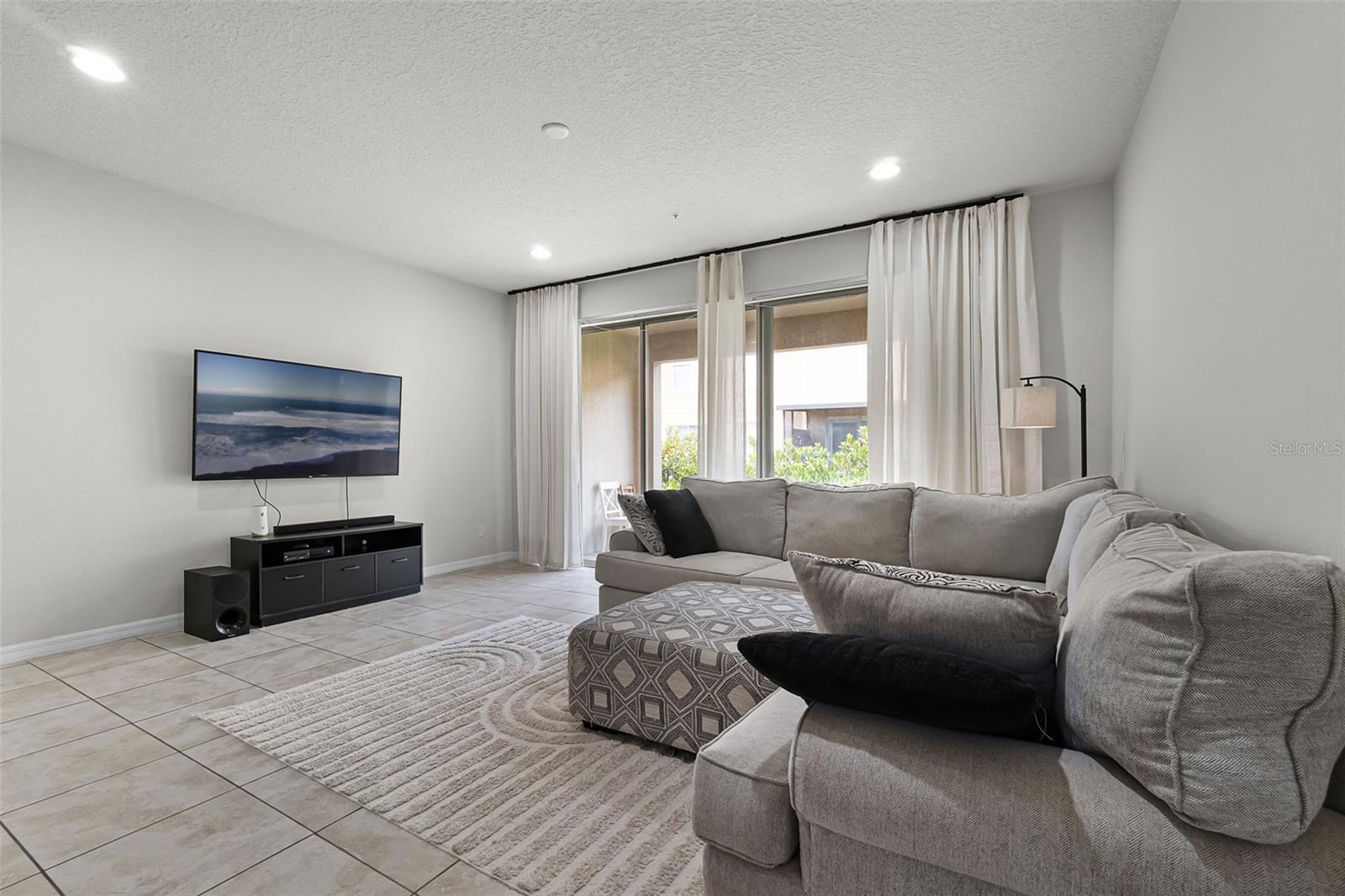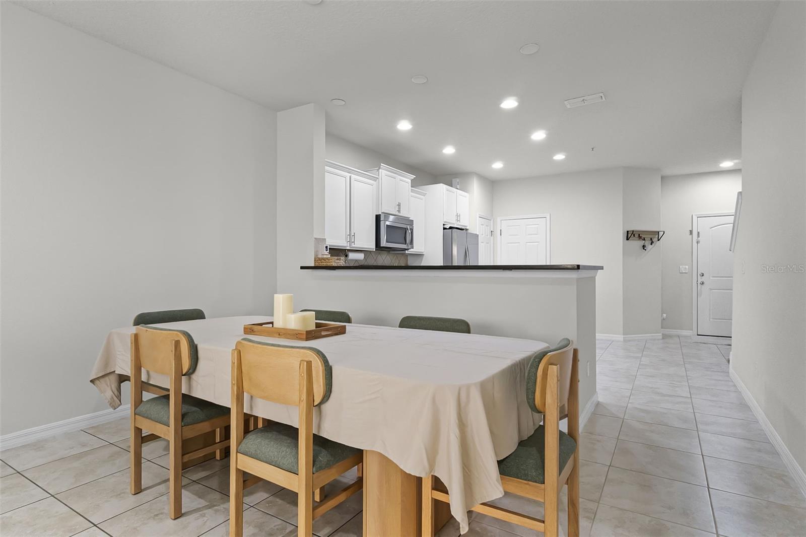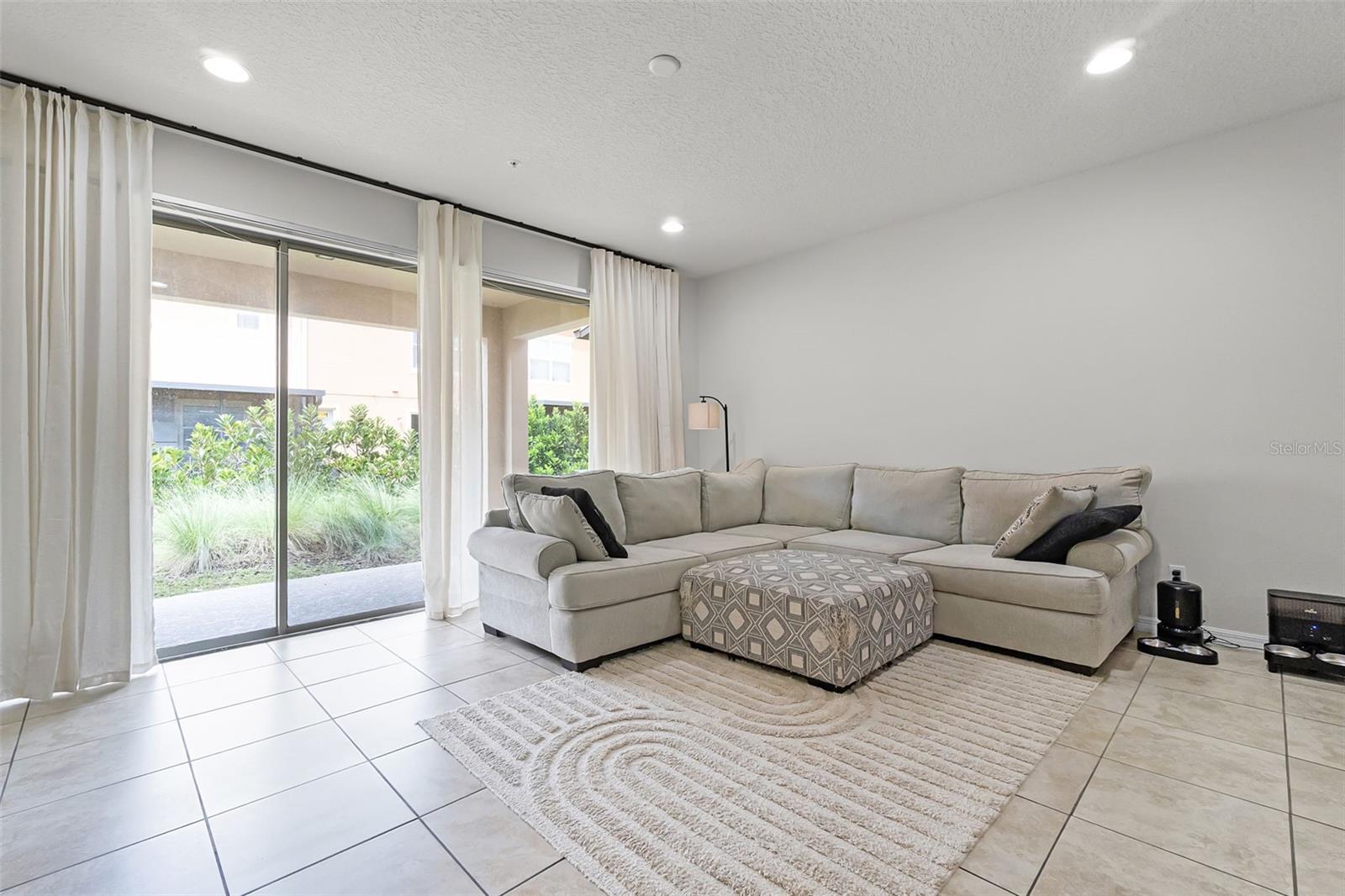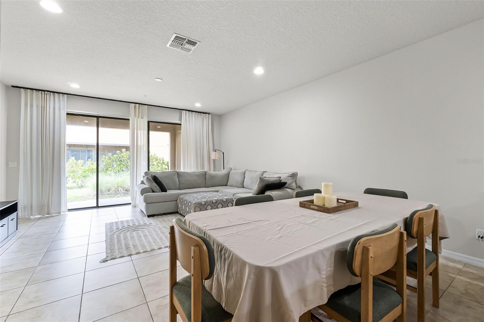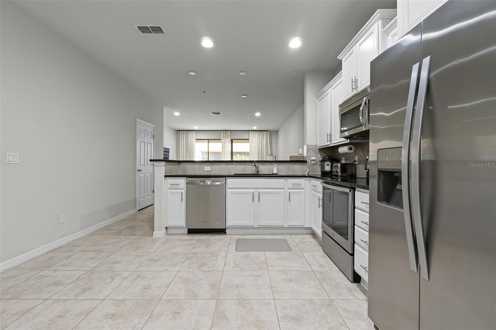 Kitchen/Family Room Combo, Open Floorplan, Solid Surface Counters, Window Treatments