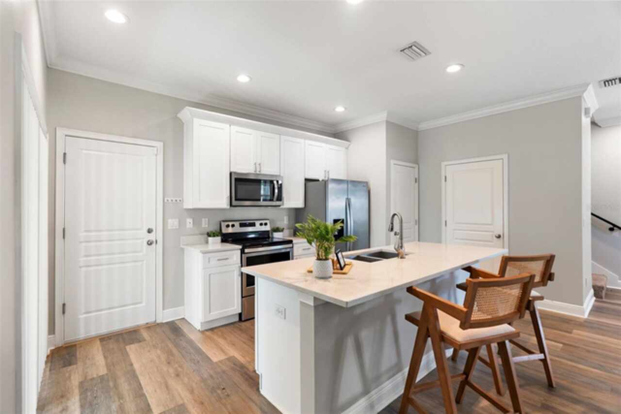 Welcome to 730 Cordova, a beautifully designed 3-bedroom, 2.5-bathroom townhome nestled in the vibrant and highly sought-after College Park neighborhood. Built in 2019, this move-in-ready home offers the perfect blend of modern finishes, open-concept living, and timeless curb appeal. Step inside to discover a bright and open floor plan with luxury wood-look flooring throughout, high ceilings, and recessed lighting. The spacious kitchen features gleaming quartz countertops, stainless steel appliances, a large center island with breakfast bar seating, ample cabinetry, and a walk-in pantry—perfect for the home chef or entertainer. The downstairs layout flows effortlessly from kitchen to living and dining spaces, with a conveniently located powder bath for guests. Upstairs, you'll find a generous primary suite complete with a walk-in closet and en-suite bath boasting dual sinks and sleek finishes. Two additional oversized bedrooms, a full guest bath, and an upstairs laundry room round out the second floor. Additional features include a private fenced yard space off the main living area, charming front porch, and a long paver driveway leading to a 2 car garage. Enjoy all that College Park has to offer—walk to local coffee shops, restaurants, parks, and more. With easy access to I-4, Downtown Orlando, and major retail, this location truly can't be beat. Whether you're a first-time buyer, relocating, or seeking an investment property in one of Orlando’s hottest neighborhoods, this home is a must-see!