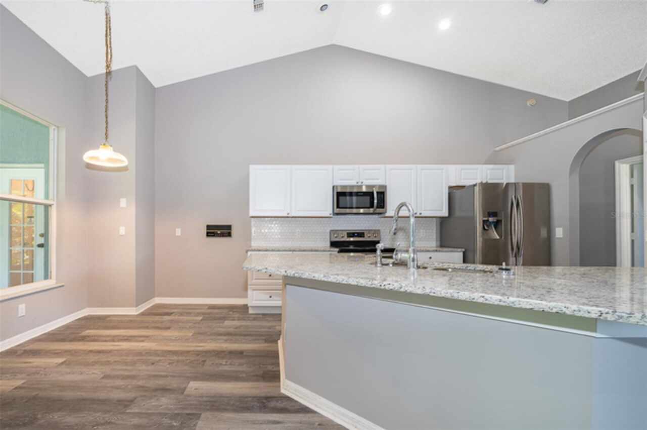 Priced to Sell! This beautifully updated 4-bedroom, 2-bathroom home offers 2, 593 sq. ft. of spacious living on a generous 0.28-acre lot with no rear neighbor for added privacy. Recent upgrades include a NEW roof (2024), NEW water heater which ensures lasting peace of mind; brand-new kitchen and bathroom cabinets with modern countertops, and durable laminate flooring throughout. High ceilings and abundant natural light flow through the open-concept kitchen, living, and family rooms, creating a bright and welcoming atmosphere. The durable laminate flooring runs throughout the entire home for easy maintenance.. The private primary suite boasts his-and-her closets and a spa-like ensuite with both a soaking tub and a walk-in shower. Three additional bedrooms share a full bath, perfect for family or guests. A formal dining room adds elegance for entertaining, while the spacious patio offers endless possibilities for outdoor living—whether hosting BBQs or even adding a pool in the future. Low HOA fees make this community an attractive choice, and the home’s central location near North Hiawassee and Clarcona Ocoee Road provides convenient access to shopping, dining, and more. Don’t miss your chance to own this move-in ready home—schedule your private showing today! *Some photos are virtually staged.