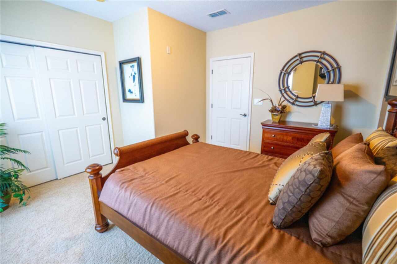 Step inside this home from anywhere! To experience a fully immersive walk-through of this home click on the Video or Virtual Tour button on this page. Step into the pinnacle of luxury living with this breathtaking top-floor penthouse in the exclusive gated community of Toscana. Perfectly situated in the heart of Dr. Phillips, this condo offers an unparalleled lifestyle that combines elegance, comfort, and the magic of Orlando’s world-renowned attractions. Imagine sipping a glass of wine on your private balcony as you marvel at the dazzling Disney fireworks lighting up the night sky over the lake. From the comfort of your bedroom, you can also witness Universal’s spectacular light show. This penthouse corner unit boasts unobstructed lakefront views, providing a daily backdrop of serene beauty and vibrant entertainment. Originally designed as the builder’s model unit, this three-bedroom, two-bath condo is a showcase of timeless sophistication and meticulous craftsmanship. Upon entering through your private elevator-accessed entry hall, you are welcomed by exquisite tile flooring laid on the diagonal, crown molding, and a seamless open-concept floor plan that unites the living, dining, and kitchen spaces. The kitchen is a culinary haven, featuring granite countertops, stainless steel appliances, and 42-inch custom wood cabinets with intricate herringbone etchings and crown details. A tasteful backsplash adds warmth and character, creating the perfect setting for your culinary adventures. The expansive living and dining area serves as the heart of this home, adorned with warm hues and designer accents that lead to a spacious balcony overlooking the tranquil waters of Spring Lake. The primary suite is a retreat of its own, showcasing exposed ceiling beams with crown detailing, lake views, a walk-in closet, and an en-suite bathroom with dual sinks, granite counters, a soaking tub, and a glass-enclosed tiled shower. The two additional bedrooms feature thoughtful design and ample space, complemented by a second bathroom with a tiled shower and tub. A large laundry room with built-in cabinetry adds convenience and functionality. Living in Toscana is like residing in a five-star resort. The community offers a sparkling pool with outdoor entertaining spaces, a state-of-the-art fitness center, and a clubhouse with meeting rooms and family-friendly amenities. Located just minutes from the vibrant dining and shopping options of Restaurant Row and the Premium Outlet Malls, this penthouse places you at the center of Orlando’s finest attractions. The Orange County Convention Center, Universal Studios, SeaWorld, and Disney are all within easy reach, as are premier medical facilities, Whole Foods, and Publix. This rare corner unit in Toscana represents the epitome of luxurious living in the heart of Orlando. With its unrivaled location, breathtaking views, and elegant design, it offers a sanctuary unlike any other. Don’t miss this opportunity to make it your own. The furniture is available to be purchased separately if desired.