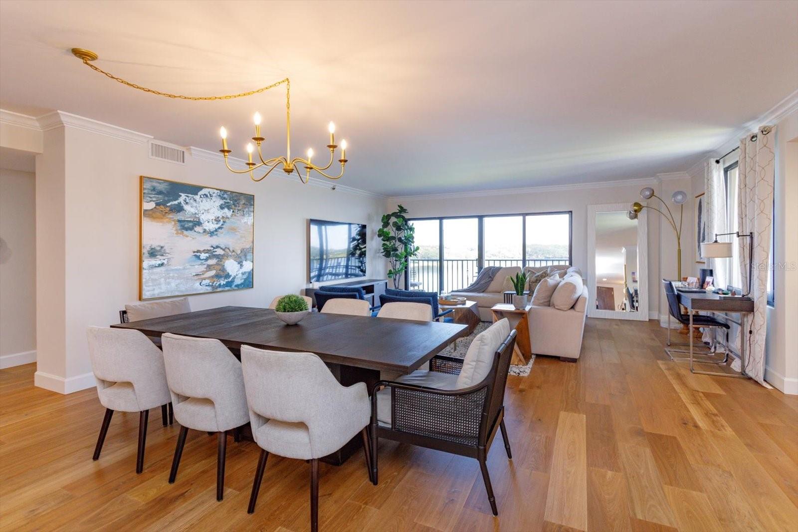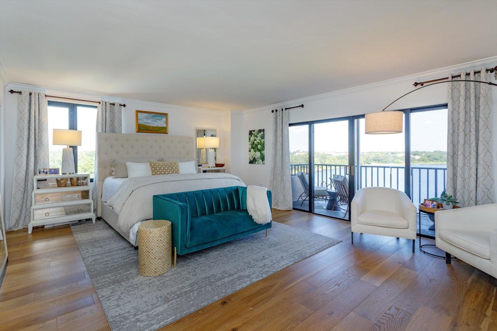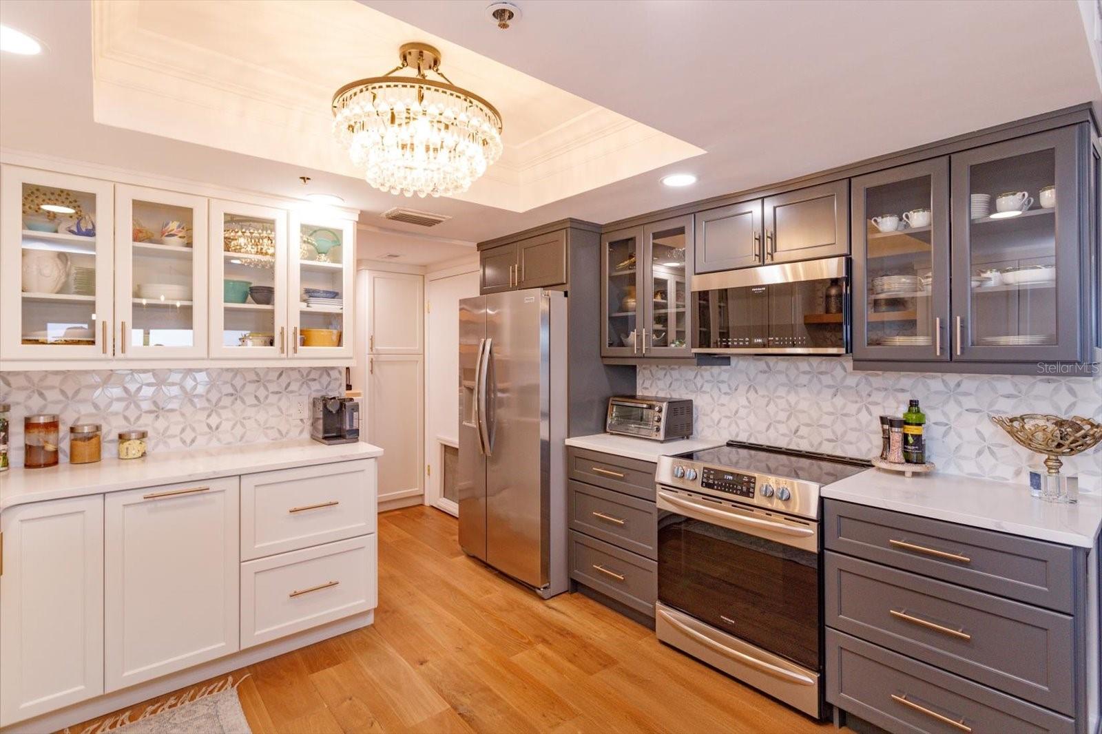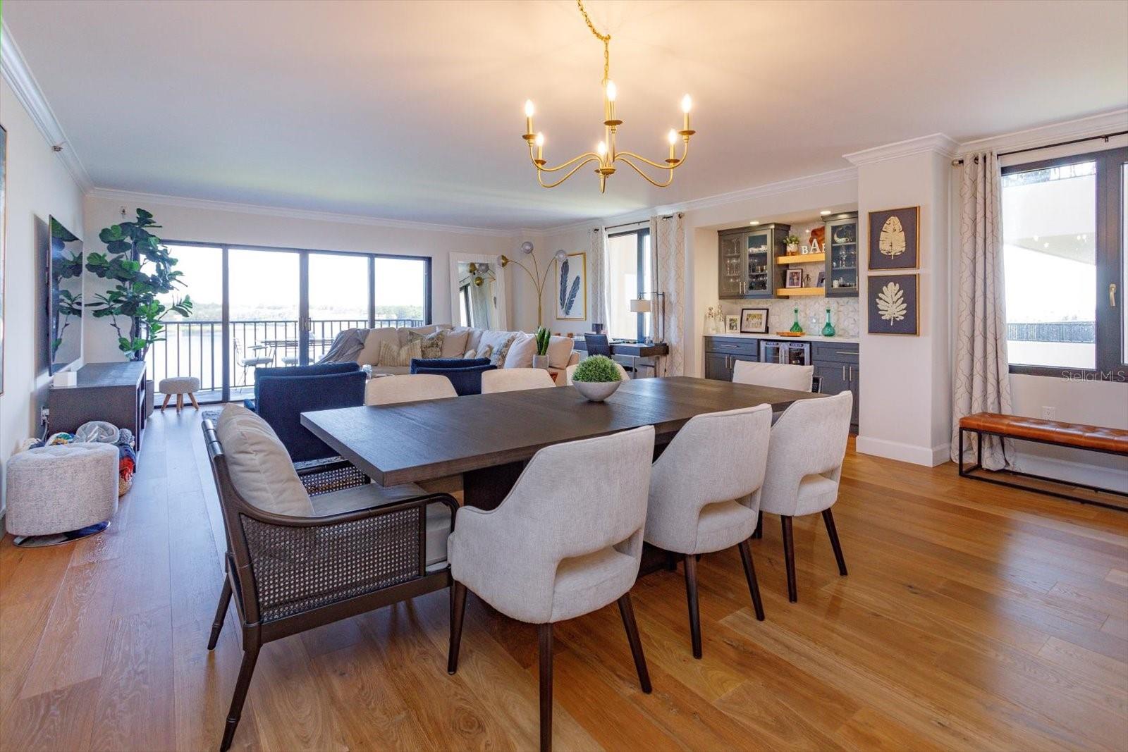 Private and Pristine! This custom remodeled luxury condo home sits on Spring Lake within the privately gated and manned building entrance to Bayview Reserve in the highly desirable Dr. Phillips area. In 2020, new features include new A/C (inside and out), tankless hot water heater (water included in HOA), new windows. The chef's dream kitchen offers all new Gallery Frigidaire appliances, custom cabinetry design open to entertaining areas and views overlooking the lake. Open concept living room with lake views offering a serving and entertaining bar with custom cabinetry designs as well, along with stunning solid wood floors throughout. Primary bedroom and en suite incorporates same luxury and fine living with lake views and balcony. Secondary bedroom fit for guests of highest scrutiny includes office area and en suite. No stone left unturned in this remodel. Laundry features new front load washer, dryer, additional storage, pantry. Enjoy stunning sunset views and relaxation from the balcony that runs the entire width of the unit. Residence comes with assigned parking in parking garage which space includes Tesla charging station and climate controlled 4x8 storage. Bayview Reserve amenities include sauna rooms for both men and women, fitness gym, entertainment room with full kitchen and bar, tennis, pickleball, newly resurfaced pool, and brand new roof for the complex. Bayview is walking distance to restaurant row for high end and fine dining. Shopping, major thoroughfares, theme parks and international airport all within close proximity. Walk to Chabad about 1 mile.