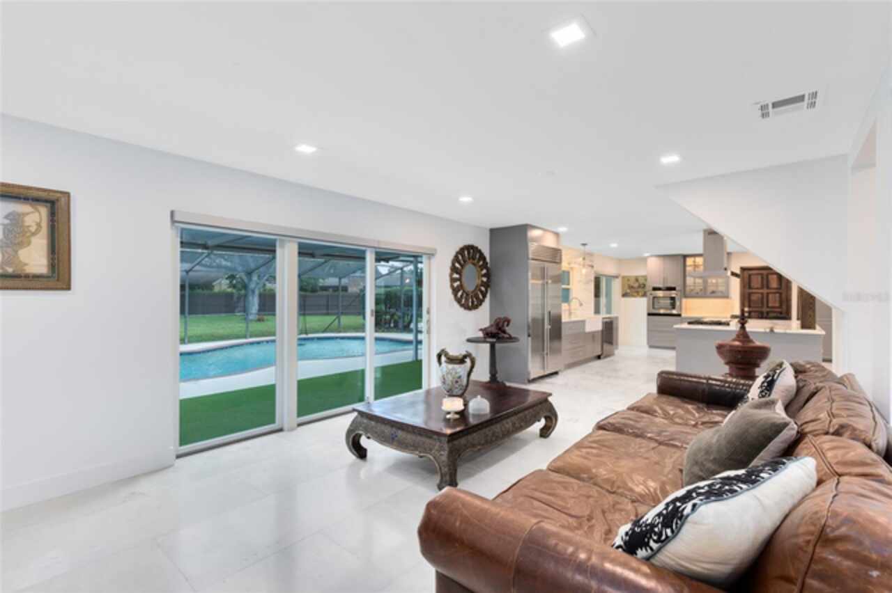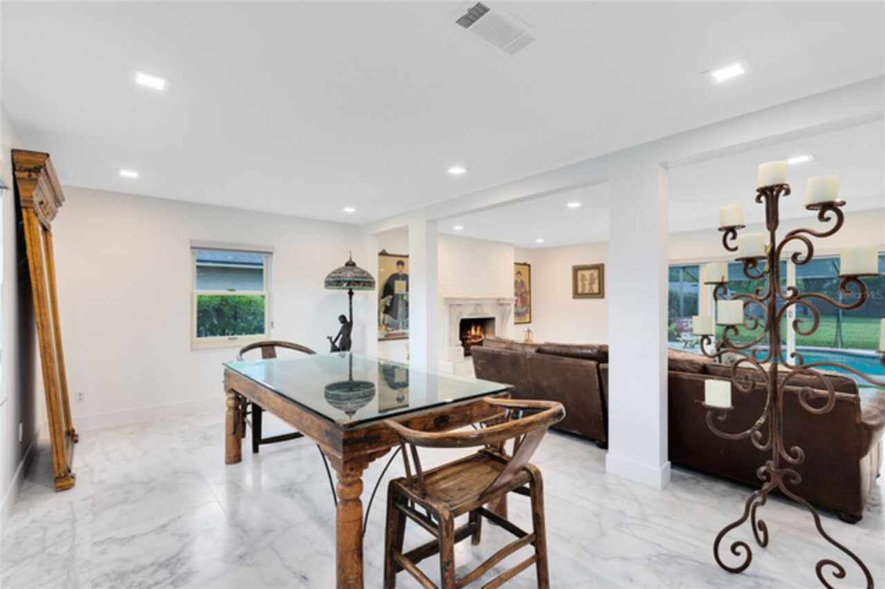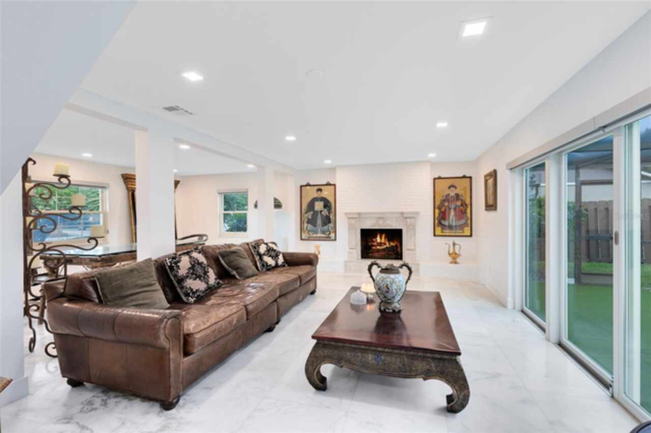 Welcome to this incredible pool home tucked inside the heart of Dr. Phillips, a true hidden gem within the gated community of Orange Tree Country Club. Known for its unbeatable location and home to the Orange Tree Golf Club, the community is admired for its top-rated greens and the iconic final stretch of holes known as “The Loop.” Here, you’re minutes from the history of Dr. Phillips, vibrant Restaurant Row, shopping, state-of-the-art medical facilities, and world-class attractions. This two-story residence captures timeless charm with its New Orleans-inspired architecture, wrought iron balcony, and circular driveway. Inside, the home has been beautifully remodeled, blending modern upgrades with warm, inviting spaces. The first floor opens with an elegant foyer leading into the living room, where a wood-burning fireplace and sliding doors frame serene views of the lanai, pool, and lush backyard. The marble flooring extends throughout the main level, tying the living and dining spaces together for effortless entertaining. The kitchen is a showpiece, centered by a generous marble waterfall island with bar seating. Custom gray cabinetry, marble counters, a full-height slab backsplash, a farmhouse sink, and statement pendants create a sleek, functional workspace. Premium appliances elevate the space, including a SUB-ZERO refrigerator, 48'' ZLINE gas range, 30'' ZLINE electric true convection wall oven with air-fry, 48'' ZLINE island range hood, and BOSCH dishwasher. This culinary setup flows effortlessly to the living and dining rooms and out to the pool, making it a natural hub for both everyday living and gatherings. Step outside to discover a private retreat. The screened lanai opens to a sparkling pool with a newly installed saltwater system, complemented by a solar heating system with warranty and a resurfaced pool deck. Surrounded by mature landscaping and a fully fenced yard, the outdoor space feels secluded while offering plenty of room for entertaining or play. A private irrigation well helps keep the grounds lush and green. Upstairs, the primary suite offers a true sanctuary with French doors leading to the front balcony. The ensuite bath has been fully remodeled, featuring dual vanities, a walk-in shower, and thoughtful details that create a spa-like retreat. Three additional bedrooms complete the upper level, each with its own charm, natural light, and modern updates. One of the bedrooms also opens to the balcony, while a stylishly remodeled full bath serves the secondary rooms. Notable updates include a new garage door (2022), roof replacement (2018), AC system (2017) with 10-year warranty, new electrical panel, and all-new Anderson windows, French doors, and sliders with transferable lifetime warranties. The community offers private access to nearby schools, the YMCA, library, and local parks — all just a golf cart ride away. This home balances history, character, and modern comfort in one of Orlando’s most desirable neighborhoods. Schedule your private tour today and experience the lifestyle of Orange Tree Country Club. Membership of the club is optional