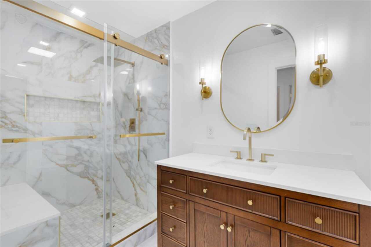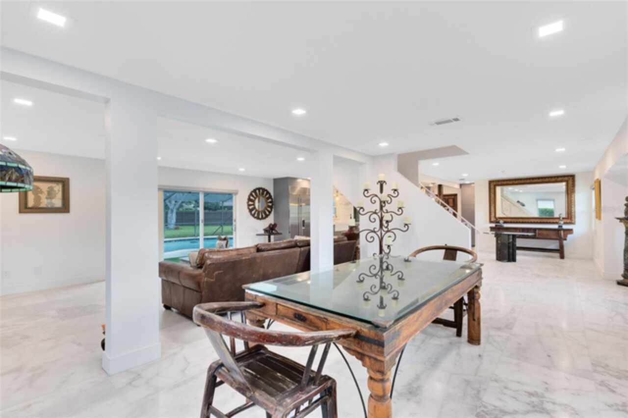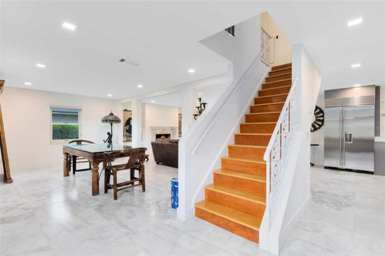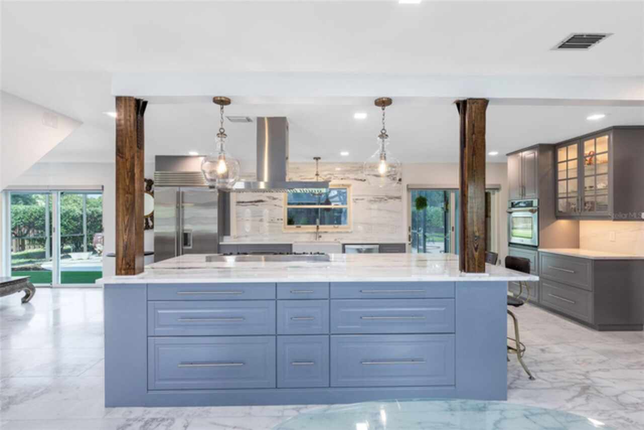 Welcome to this incredible pool home tucked inside the heart of Dr. Phillips, a true hidden gem within the gated community of Orange Tree Country Club. Known for its unbeatable location and home to the Orange Tree Golf Club, the community is admired for its top-rated greens and the iconic final stretch of holes known as “The Loop.” Here, you’re minutes from the history of Dr. Phillips, vibrant Restaurant Row, shopping, state-of-the-art medical facilities, and world-class attractions. This two-story residence captures timeless charm with its New Orleans-inspired architecture, wrought iron balcony, and circular driveway. Inside, the home has been beautifully remodeled, blending modern upgrades with warm, inviting spaces. The first floor opens with an elegant foyer leading into the living room, where a wood-burning fireplace and sliding doors frame serene views of the lanai, pool, and lush backyard. The marble flooring extends throughout the main level, tying the living and dining spaces together for effortless entertaining. The kitchen is a showpiece, centered by a generous marble waterfall island with bar seating. Custom gray cabinetry, marble counters, a full-height slab backsplash, a farmhouse sink, and statement pendants create a sleek, functional workspace. Premium appliances elevate the space, including a SUB-ZERO refrigerator, 48'' ZLINE gas range, 30'' ZLINE electric true convection wall oven with air-fry, 48'' ZLINE island range hood, and BOSCH dishwasher. This culinary setup flows effortlessly to the living and dining rooms and out to the pool, making it a natural hub for both everyday living and gatherings. Step outside to discover a private retreat. The screened lanai opens to a sparkling pool with a newly installed saltwater system, complemented by a solar heating system with warranty and a resurfaced pool deck. Surrounded by mature landscaping and a fully fenced yard, the outdoor space feels secluded while offering plenty of room for entertaining or play. A private irrigation well helps keep the grounds lush and green. Upstairs, the primary suite offers a true sanctuary with French doors leading to the front balcony. The ensuite bath has been fully remodeled, featuring dual vanities, a walk-in shower, and thoughtful details that create a spa-like retreat. Three additional bedrooms complete the upper level, each with its own charm, natural light, and modern updates. One of the bedrooms also opens to the balcony, while a stylishly remodeled full bath serves the secondary rooms. Notable updates include a new garage door (2022), roof replacement (2018), AC system (2017) with 10-year warranty, new electrical panel, and all-new Anderson windows, French doors, and sliders with transferable lifetime warranties. The community offers private access to nearby schools, the YMCA, library, and local parks — all just a golf cart ride away. This home balances history, character, and modern comfort in one of Orlando’s most desirable neighborhoods. Schedule your private tour today and experience the lifestyle of Orange Tree Country Club. Membership of the club is optional