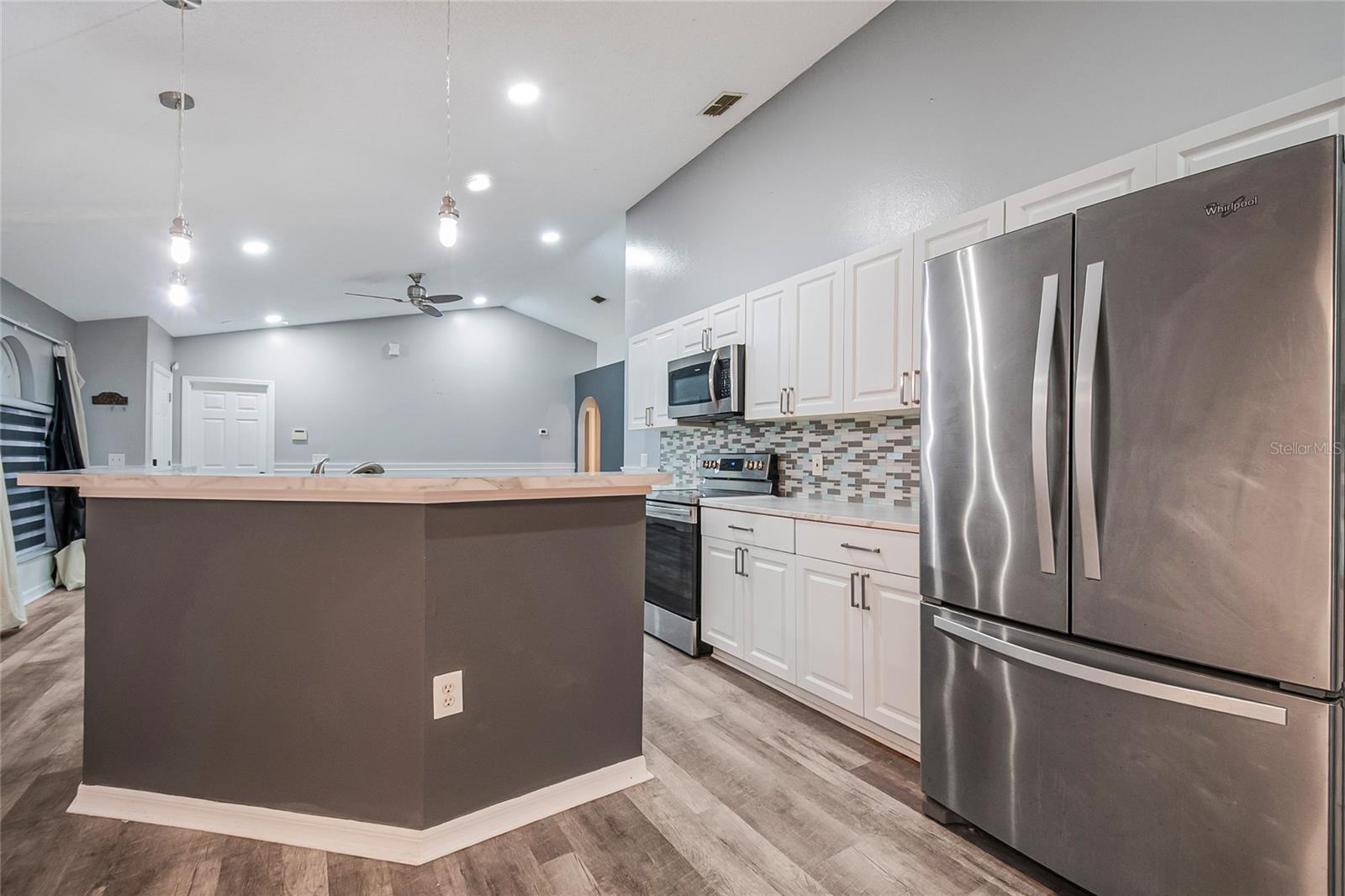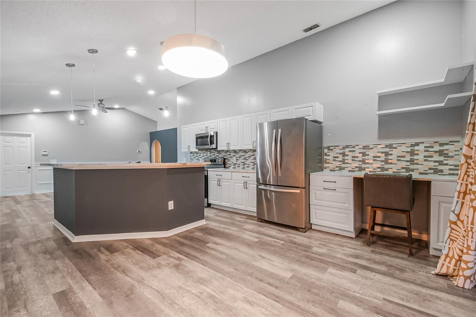 Step into this beautifully updated open-concept home featuring modern finishes, and an abundance of natural light. The spacious living area flows seamlessly into a contemporary kitchen complete with white shaker cabinets, stainless steel appliances, a stylish mosaic backsplash, and expansive marble-style countertops—perfect for entertaining. Fresh flooring runs throughout the main living areas, while custom wall trim and designer accent colors add a touch of elegance. The split floor plan provides excellent privacy, and the oversized sliding doors open to a peaceful backyard ready for your personal touch. Move-in ready, freshly updated, and designed for comfortable modern living—this home delivers exceptional value in a highly desirable neighborhood. Vista Lakes is known for its A-rated schools and convenient central location. It’s just 10 minutes from Orlando International Airport and offers quick access to nearby shopping centers, restaurants, and medical facilities—including top-rated hospitals—making everyday living both easy and enjoyable. This home offers the perfect blend of comfort, style, and affordability—truly move-in ready and priced to sell. Don’t miss this opportunity!