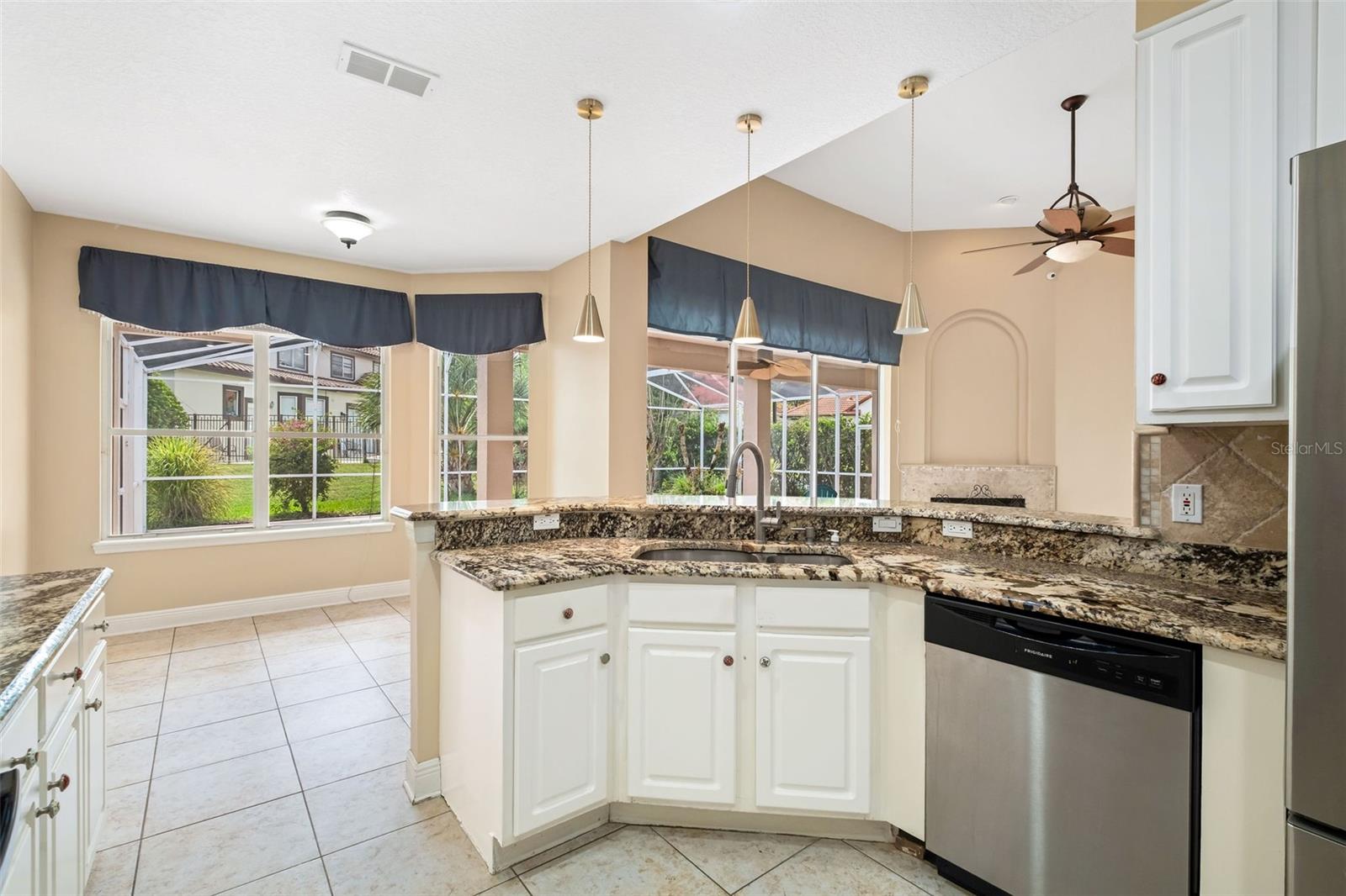 Welcome to Vista Royale, an exclusive and secluded community of just 70 homes nestled in the heart of MetroWest. This beautiful Mediterranean-style residence offers both elegance and functionality, featuring two first-floor bedrooms, each with its own private bathroom. The primary suite includes pool access, dual vessel sinks, a soaking tub, a Roman-style walk-in shower, and an expansive built-in closet designed for two. The second suite is ideal as an in-law retreat or guest room. As you step through the grand entrance, you’re greeted by a spacious living and dining area, flowing seamlessly into the great room with a cozy fireplace—perfect for entertaining. The expansive sliding doors open completely to the screened lanai and sparkling pool, creating effortless indoor-outdoor living. The kitchen is designed for both style and function, offering granite countertops, stainless steel appliances, and a charming eat-in area. Upstairs, you’ll find a bonus room and two additional bedrooms, providing plenty of space for family or guests. Additional features include a two-car garage, a laminate wood staircase, and a prime location just minutes from the MetroWest Golf Course, shopping, top-rated schools, and major theme parks. Downtown Orlando and Orlando International Airport are both less than 30 minutes away. Come discover this fabulous home that truly captures the best of Orlando living and entertaining!