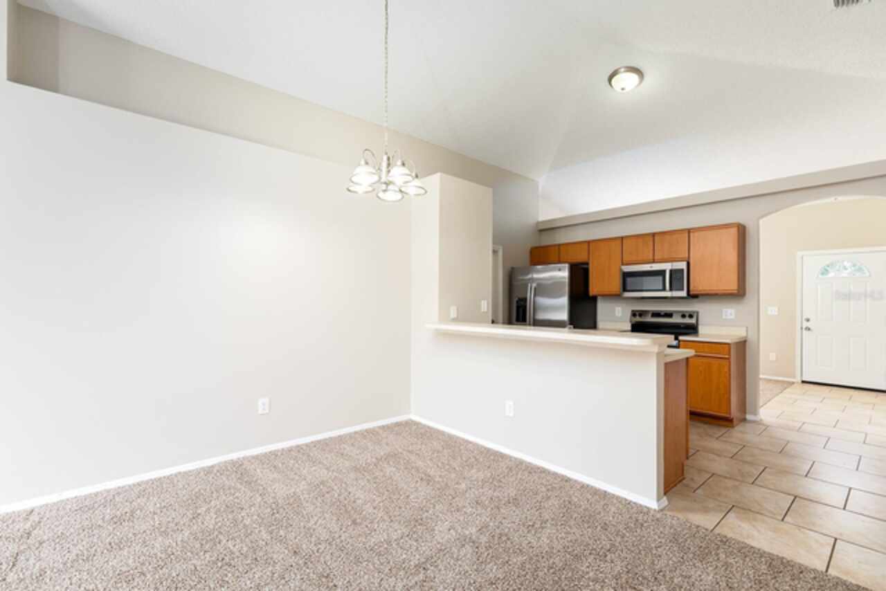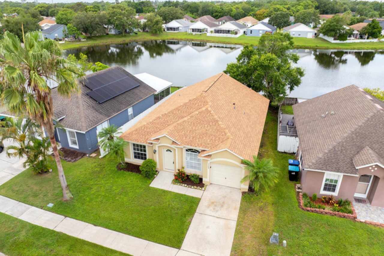 Welcome to this charming single-family home, where you can enjoy the peace of mind that comes with a brand new roof, new carpet, and other updates. This inviting home offers a harmonious blend of comfort and functionality with its single-story layout and open floor plan, creating a seamless flow between rooms and ensuring easy accessibility. The open concept living area feels light and airy with a vaulted ceiling and large sliding door, allowing natural light to fill the space, perfect for everyday living and entertaining guests. Access to the rear patio from the living room allows it to act as an extension of the living space, and the tranquil pond view adds a touch of natural beauty, the perfect backdrop to daily life. Convenience is a key attribute of this property's location. Situated close to the Orlando International Airport, it's an ideal choice for frequent travelers or those who value quick access to transportation hubs. Additionally, the home's proximity to primary services and daily necessities ensures that residents can easily manage their day-to-day errands and activities without lengthy commutes. With its combination of recent updates, comfortable living spaces, scenic views, and convenient location, this home presents an attractive option for those seeking a balance between residential tranquility and urban accessibility. The property's features come together to create a welcoming environment that caters to a range of preferences and needs. Contact us to arrange a tour and see for yourself.