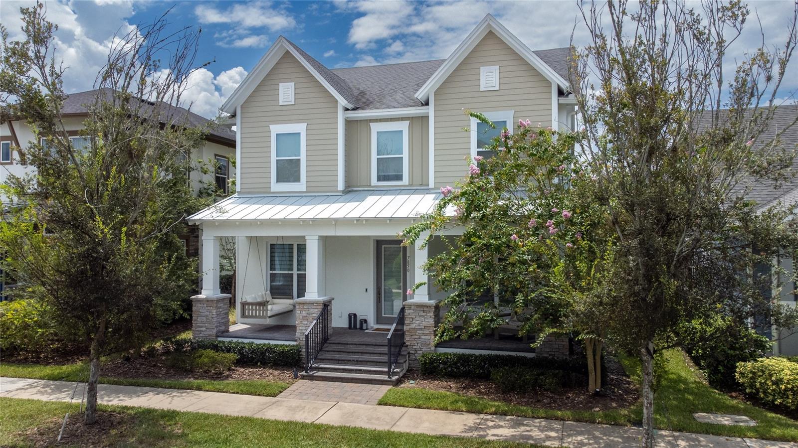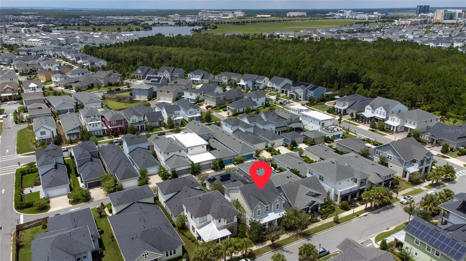 Welcome to Your Dream Home! Step into pure elegance and comfort with this exquisite David Weekley Southaven, built in 2018 and loaded with premium upgrades. This impressive residence offers 4 bedrooms plus a dedicated office, designed for both style and functionality. As you enter, you’ll be greeted by beautiful hardwood floors and a breathtaking 20-foot ceiling in the great room. The dining area includes a built-in bar and buffet, ideal for entertaining, while the gourmet kitchen is a chef’s delight, showcasing top-of-the-line appliances and thoughtful design. The first floor features a convenient guest suite with full bath, while upstairs, the master retreat awaits with two closets (one with custom built-ins), a tray ceiling, and ample space for your sanctuary. The spa-like master bath offers a walk-in shower, abundant natural light, and generous space for relaxation. Outside, enjoy a fenced yard leading to the 3-car garage, and an upgraded lanai/breezeway with phantom screens—the perfect spot to take in sunsets while staying mosquito-free. Located just minutes from Boxi Park, Lake Nona Town Center, Canvas, Bosphorous, and more, this home places you at the heart of one of Orlando’s most vibrant communities. With UCF Medical School, VA Hospital, Lake Nona’s reputation as “Medical City” adds even more value. Don’t miss the chance to call this stunning home yours. Schedule your private tour today!