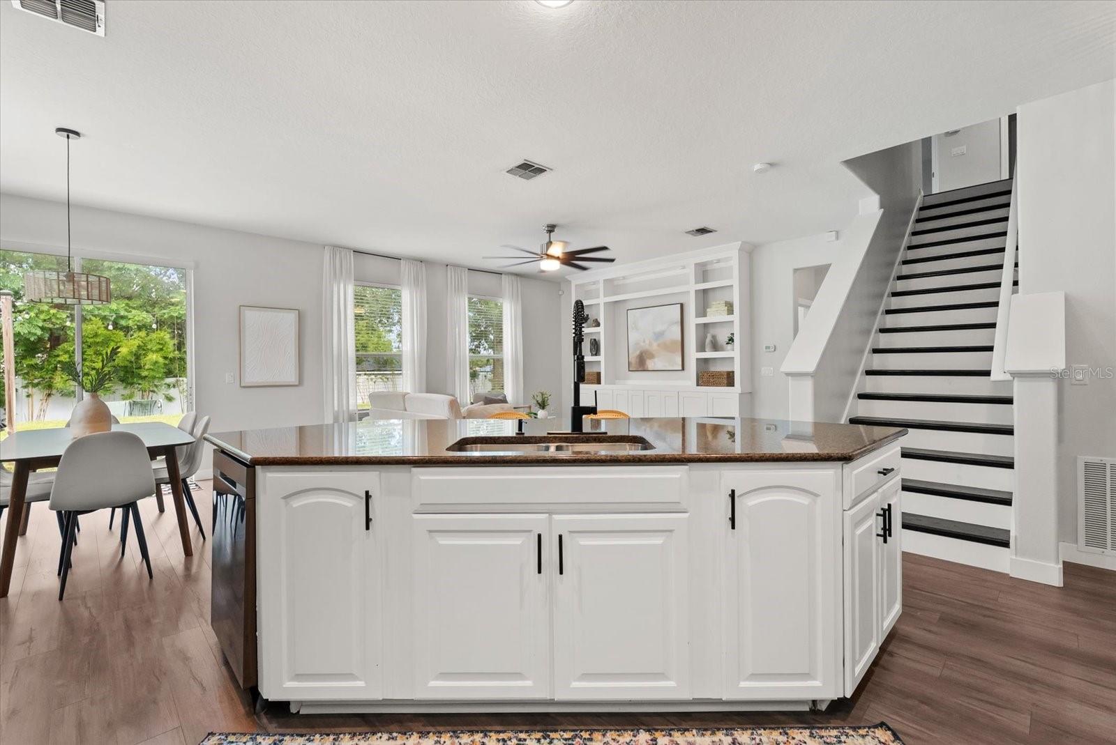 Under contract-accepting backup offers. As you enter, you’ll immediately notice the numerous updates, including custom built-in cabinetry and gorgeous newer flooring. Off the foyer is a dedicated office space with double doors providing privacy when working from home. The open concept main living area is ideal for both relaxing and entertaining. Additional first floor highlights include an indoor laundry room plus built-in cabinets which provide ample storage. The spacious primary suite is conveniently located on the main floor and features a large walk-in closet, a private ensuite bath with shower plus garden tub. Upstairs, you will find three additional bedrooms and a versatile loft area that can serve as a playroom, TV/Media room or a bonus living area. The community offers a beautiful 12-acre lake with a fishing dock, playground equipment and picnic area. Zoned for highly rated Winter Park schools and just minutes from 436, 408 and the 417 – plus convenient access to UCF – this home combines comfort and location for building family memories.