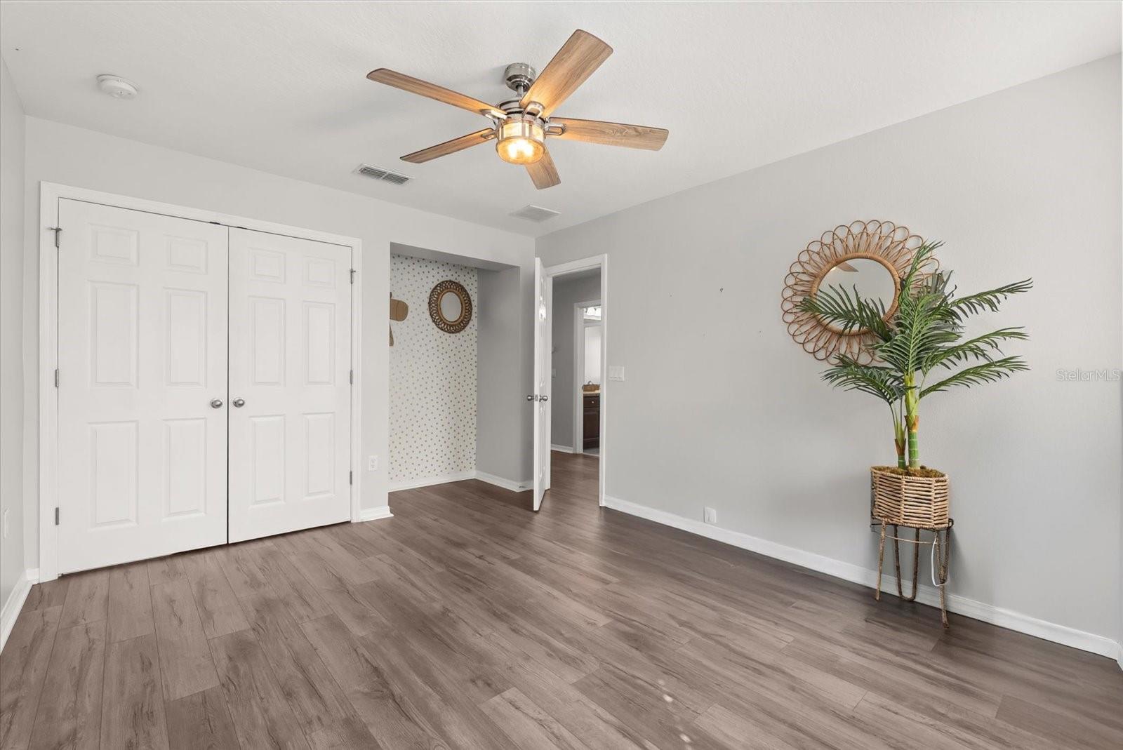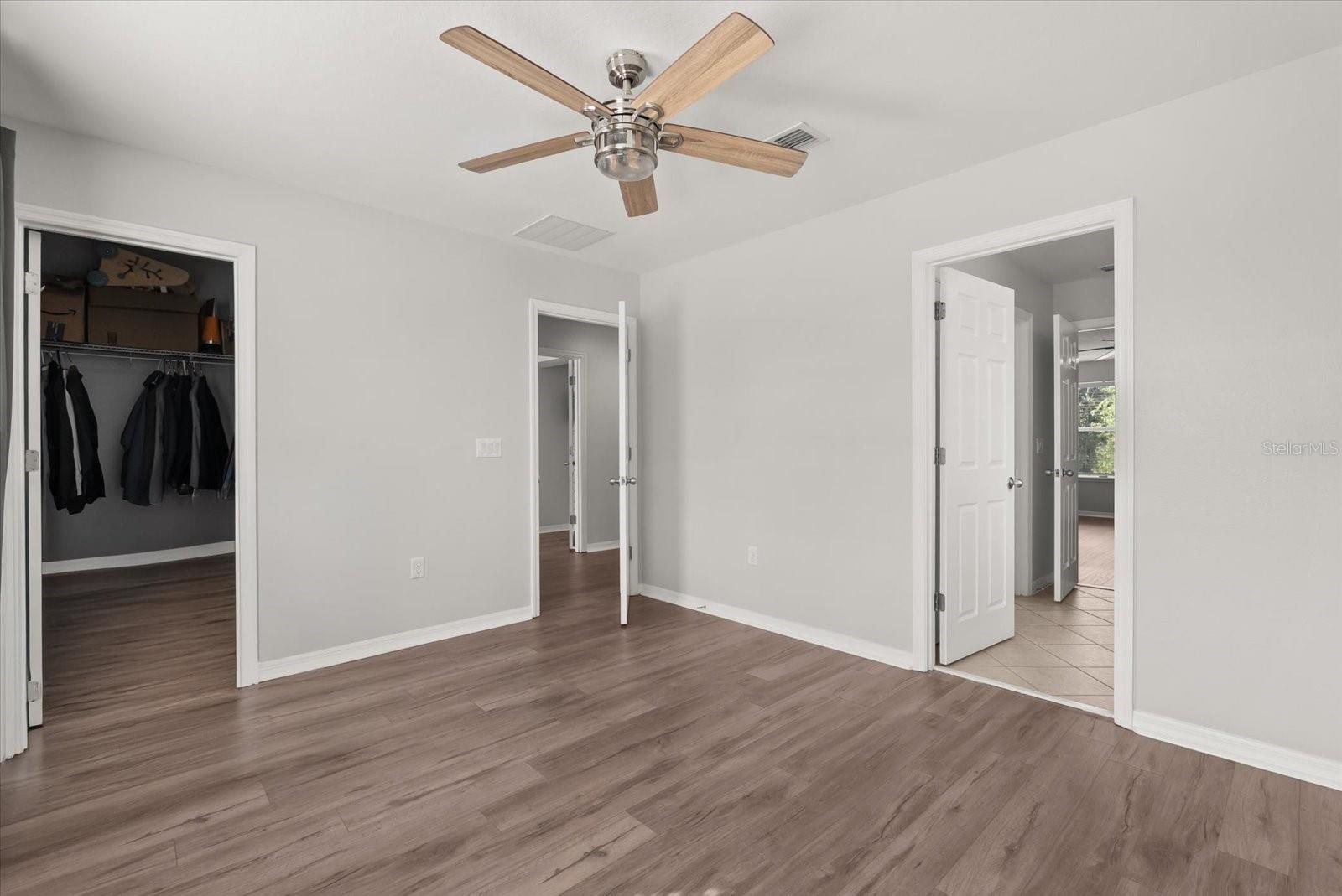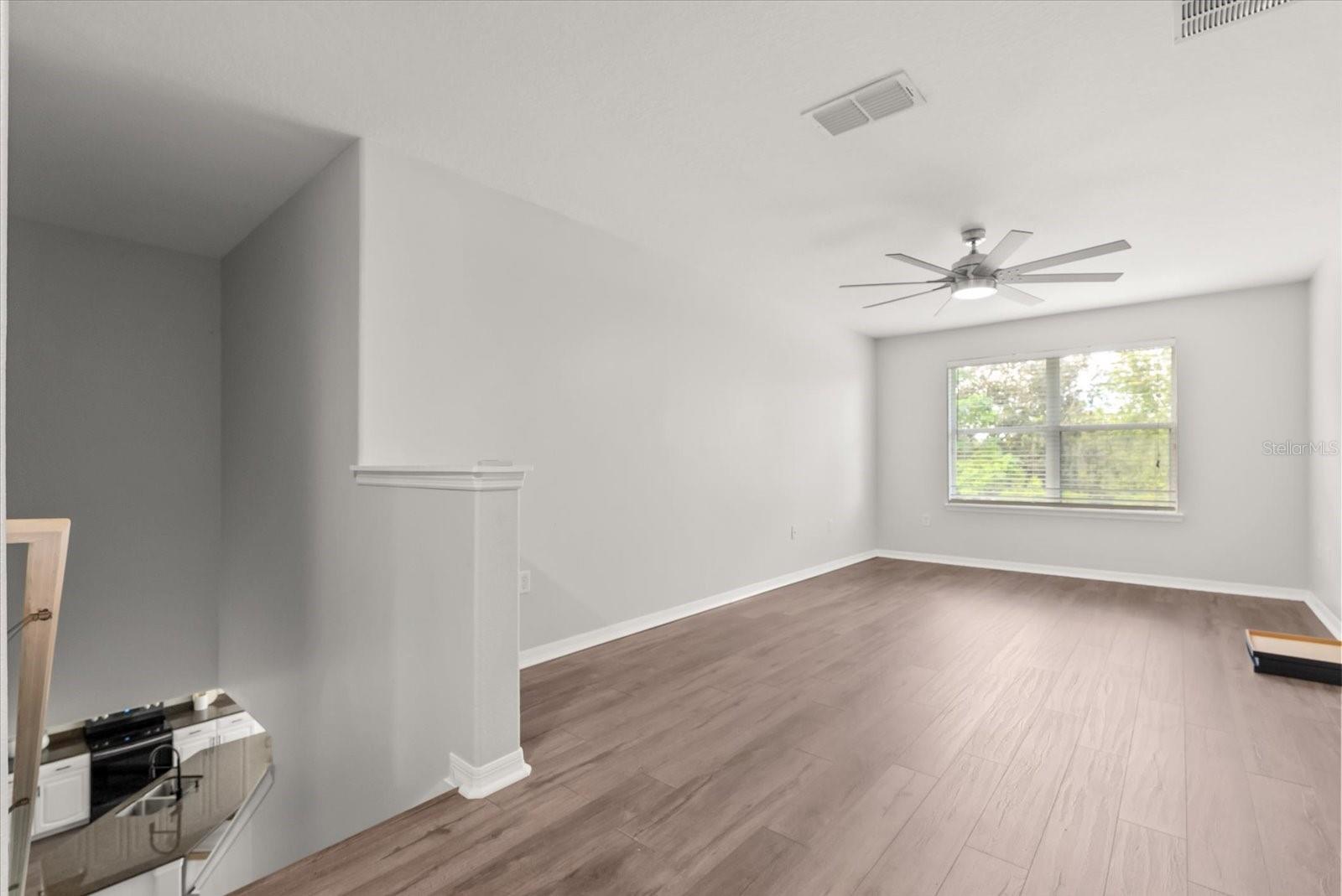 Ceiling Fans(s), Kitchen/Family Room Combo, Living Room/Dining Room Combo, Open Floorplan, Primary Bedroom Main Floor, Solid Surface Counters, Split Bedroom, Walk-In Closet(s), Window Treatments