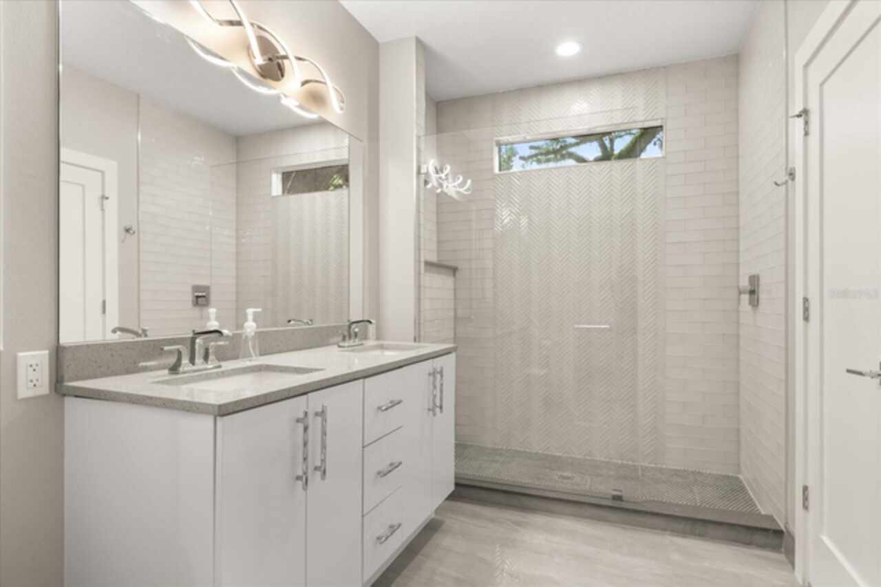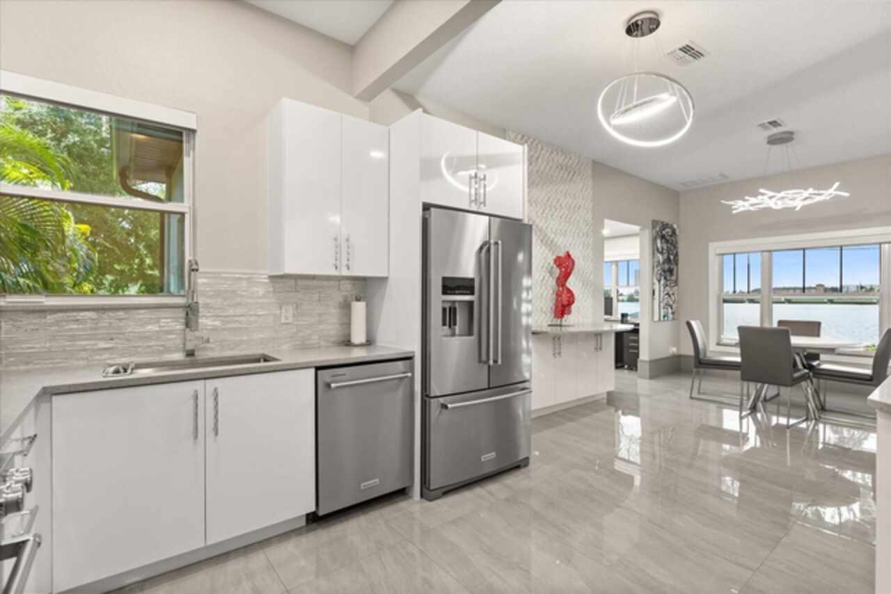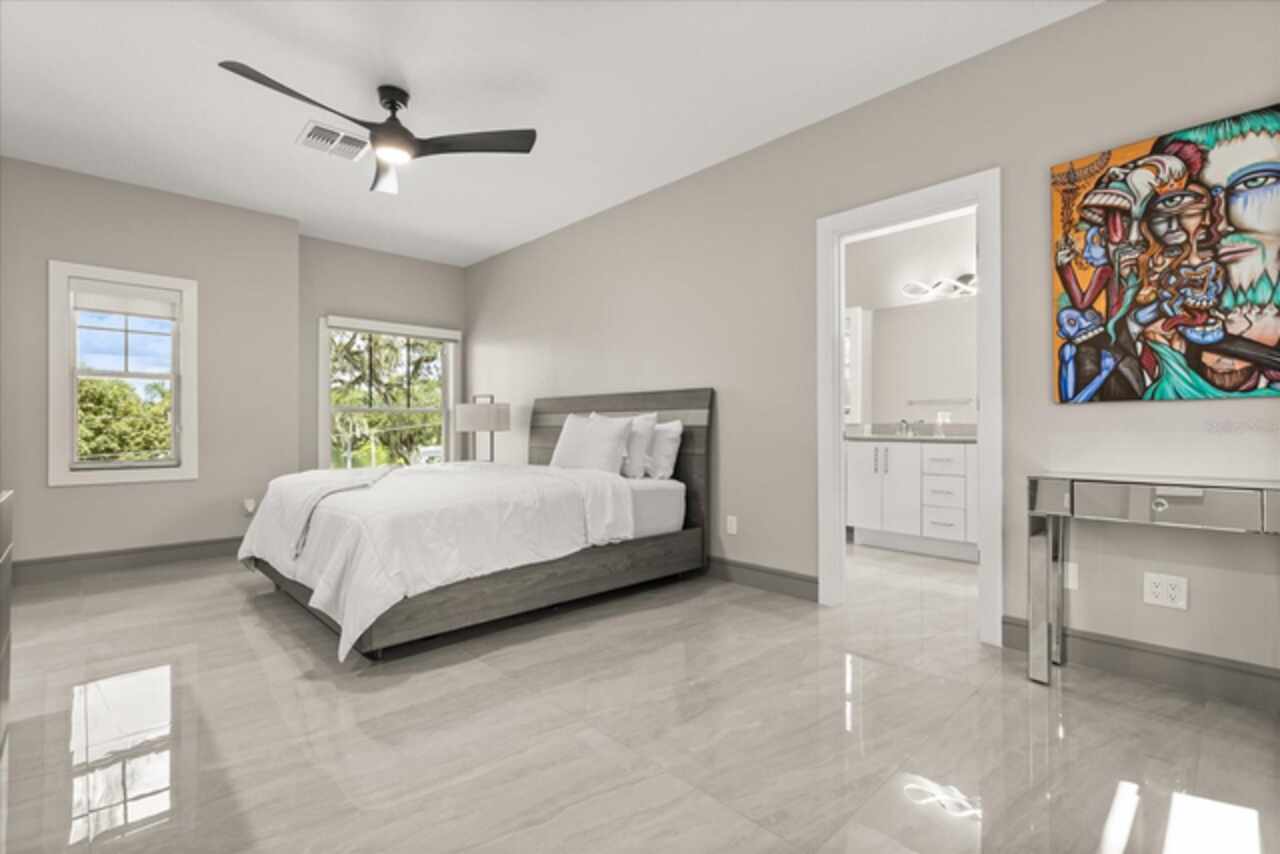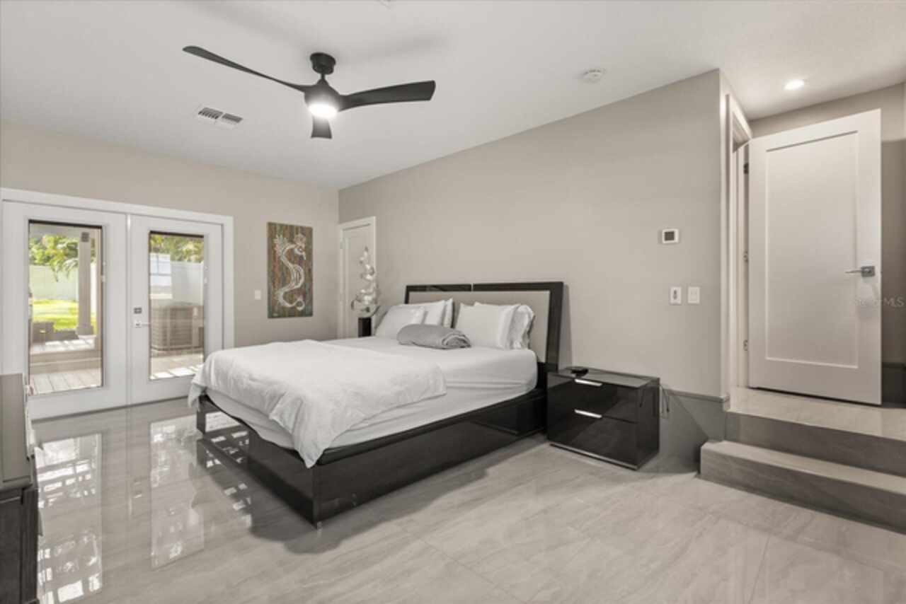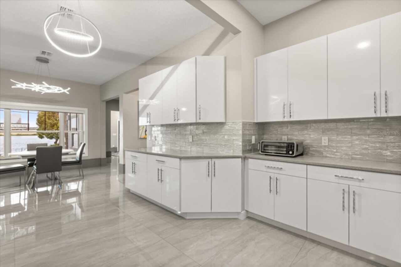 This fully renovated 3-bed, 3.5-bath home offers rare lakefront living with 152 feet of private frontage on Lake Concord—including the only private boat ramp on the lake. Bold modern design meets effortless functionality in a light-filled, open-concept layout with panoramic water views throughout. Dual primary suites feature spa-like baths and custom closets. The designer kitchen impresses with high-gloss cabinetry, quartz counters, glass tile backsplash, and premium KitchenAid appliances. Entertain seamlessly in the lake-facing great room, open dining area, or corner office with sunrise views. Every major system is updated: 2023 roof, new electrical (200A underground service with generator-ready transfer switch), new water heater, and all-new finishes inside and out—including modern stucco, garage doors, and trim. Enjoy a rare Central Florida basement with a half bath and storage/flex space, plus a fully fenced backyard with a hot tub and pergola-covered deck. Across the street, your private lakefront parcel includes a covered dock with power, water, LED lighting, and a boat lift—offering downtown Orlando skyline views and glowing evening ambiance. Located minutes from Downtown Orlando, Ivanhoe Village, and major roadways—this is high-style, turn-key lakefront living in the heart of College Park