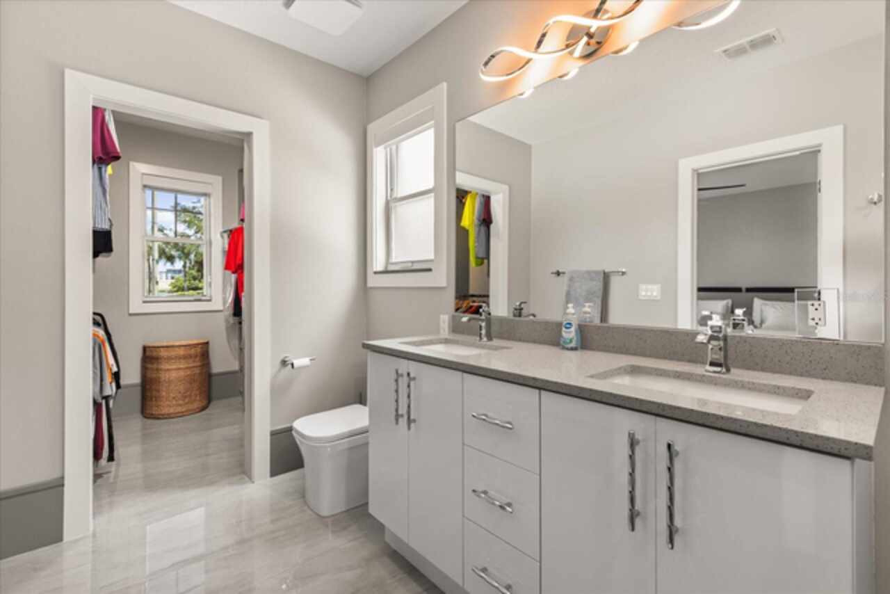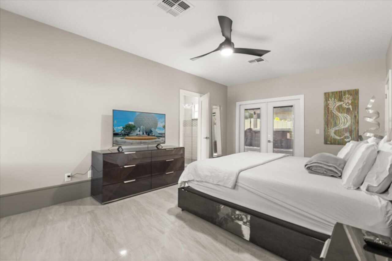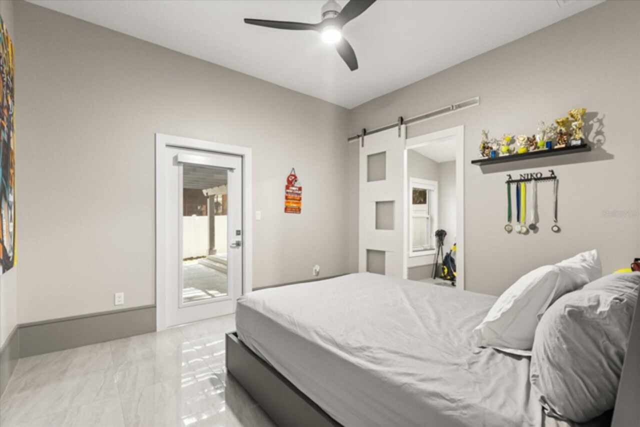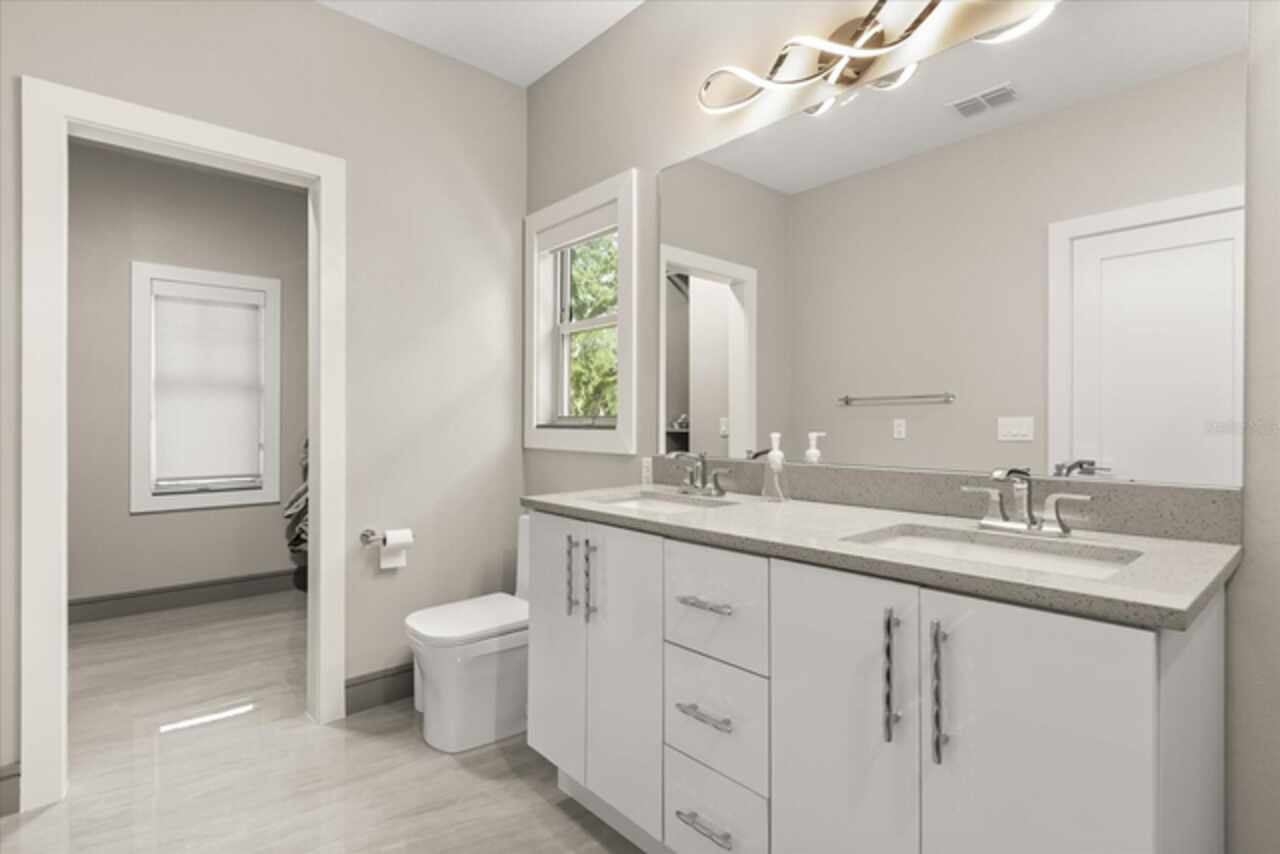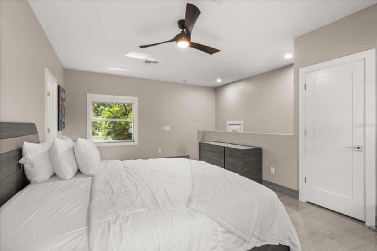 This fully renovated 3-bed, 3.5-bath home offers rare lakefront living with 152 feet of private frontage on Lake Concord—including the only private boat ramp on the lake. Bold modern design meets effortless functionality in a light-filled, open-concept layout with panoramic water views throughout. Dual primary suites feature spa-like baths and custom closets. The designer kitchen impresses with high-gloss cabinetry, quartz counters, glass tile backsplash, and premium KitchenAid appliances. Entertain seamlessly in the lake-facing great room, open dining area, or corner office with sunrise views. Every major system is updated: 2023 roof, new electrical (200A underground service with generator-ready transfer switch), new water heater, and all-new finishes inside and out—including modern stucco, garage doors, and trim. Enjoy a rare Central Florida basement with a half bath and storage/flex space, plus a fully fenced backyard with a hot tub and pergola-covered deck. Across the street, your private lakefront parcel includes a covered dock with power, water, LED lighting, and a boat lift—offering downtown Orlando skyline views and glowing evening ambiance. Located minutes from Downtown Orlando, Ivanhoe Village, and major roadways—this is high-style, turn-key lakefront living in the heart of College Park