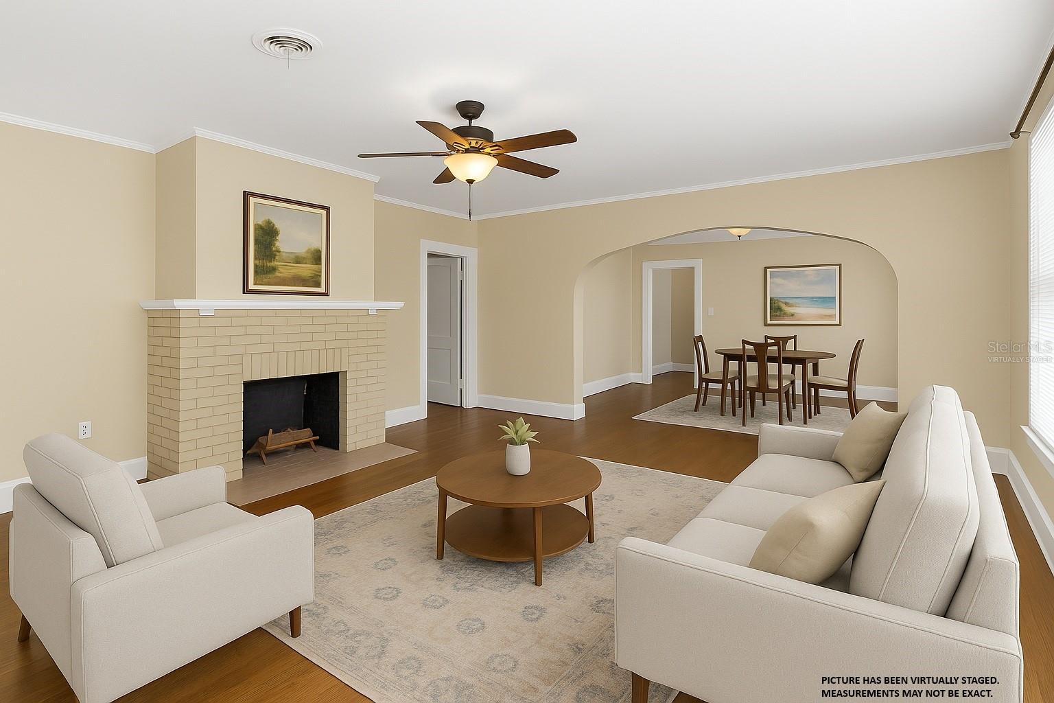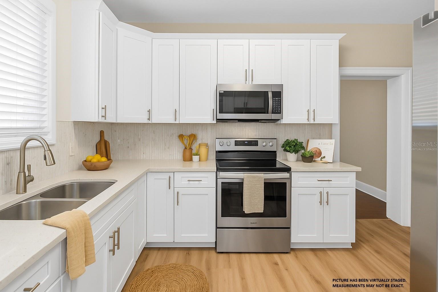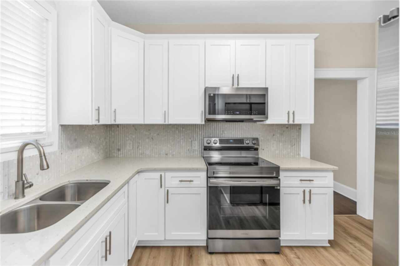 High Ceilings, Living Room/Dining Room Combo, Open Floorplan, Solid Surface Counters, Solid Wood Cabinets, Window Treatments