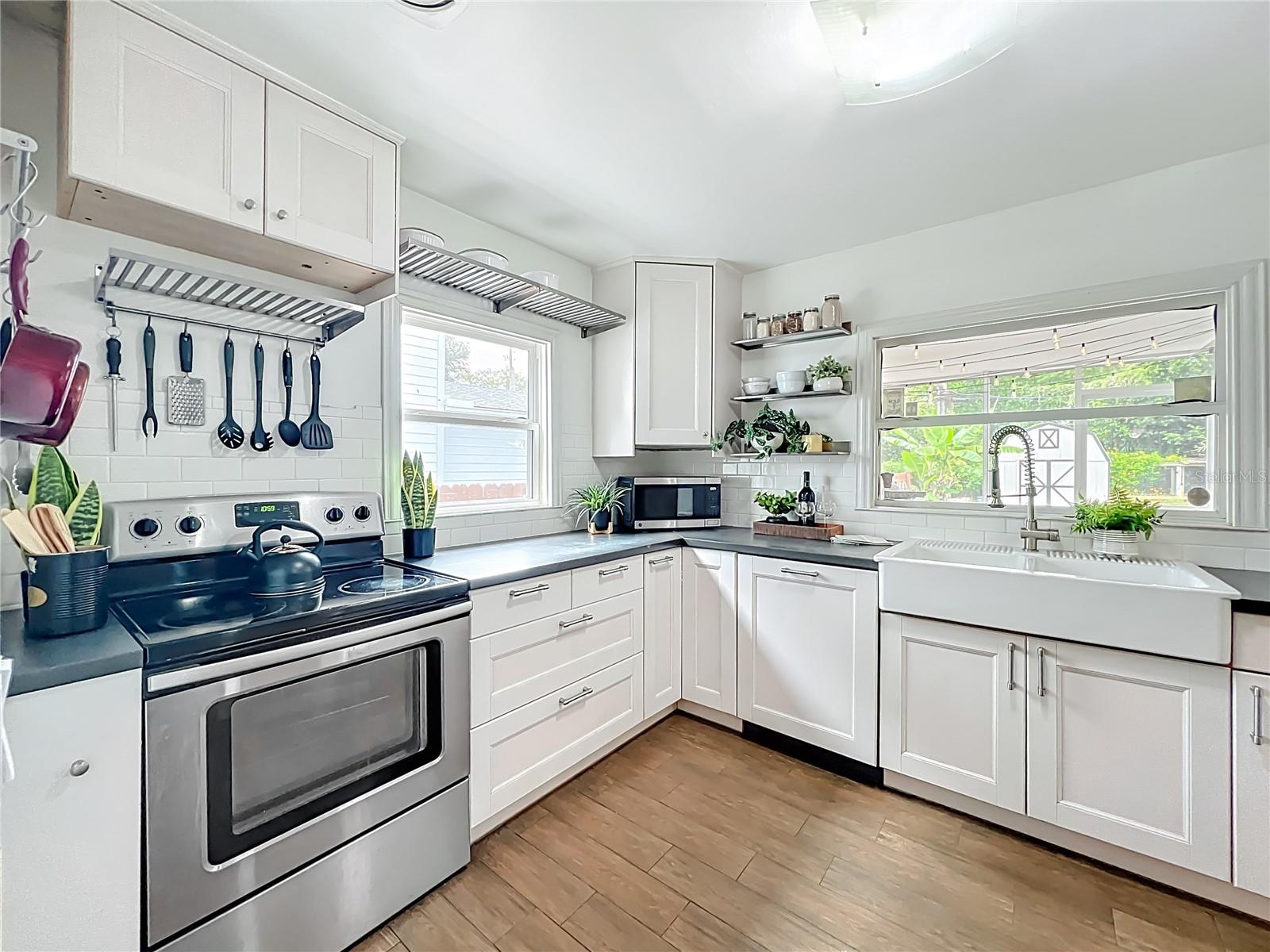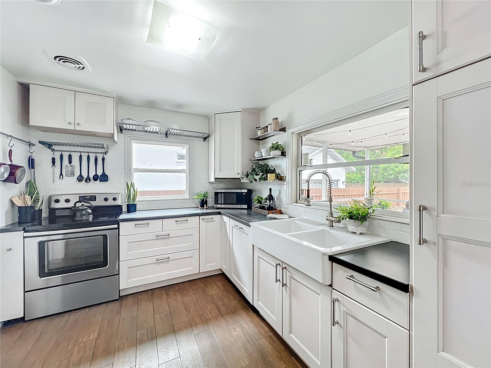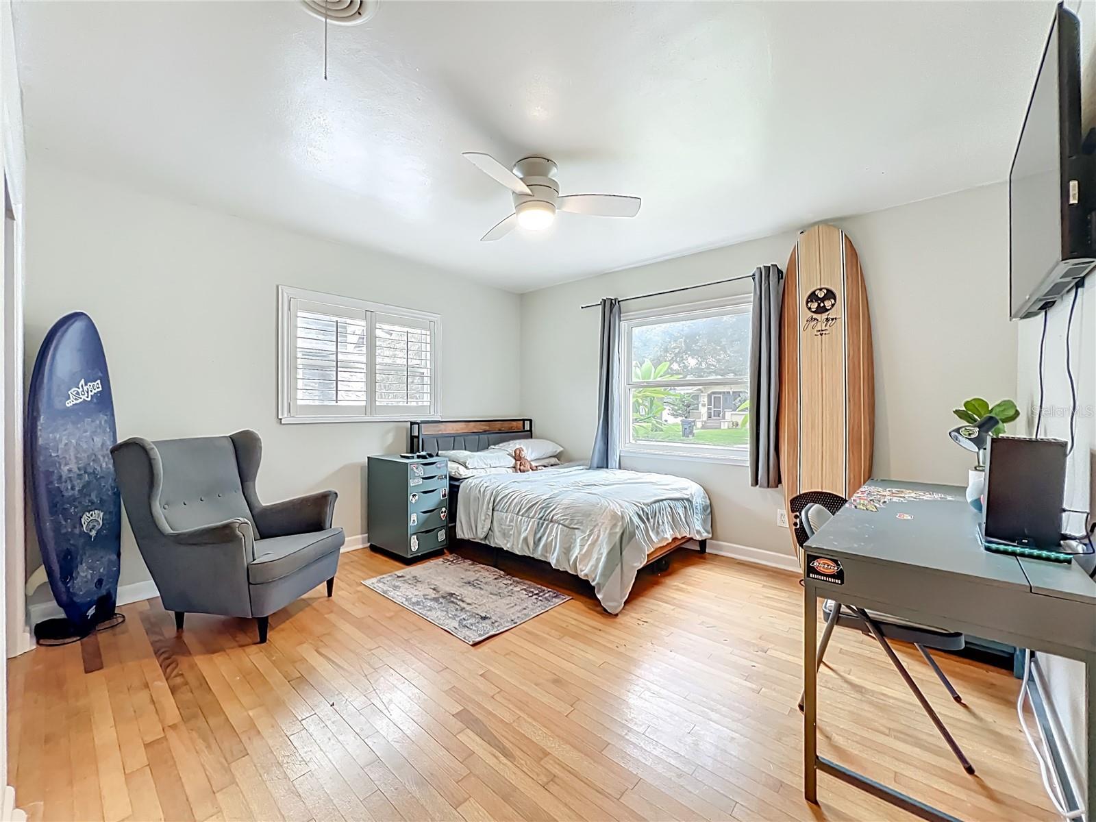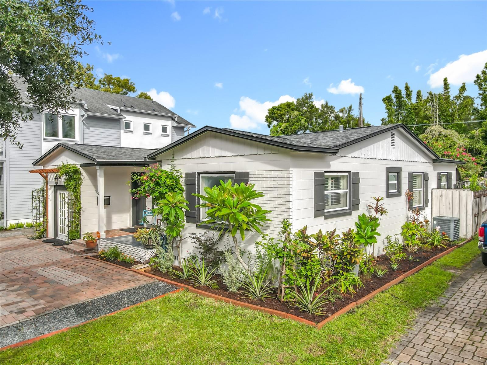 NEW PRICE IMPROVEMENT! MUST-SEE COLLEGE PARK CHARMER WITH POTENTIAL SHORT-TERM RENTAL BONUS SUITE!! Discover this delightful 3-bedroom, 2.5-bath home with a versatile bonus suite just steps from historic downtown College Park. Perfectly located on a tree-lined street, this beautifully maintained 1958 concrete block home combines mid-century character with modern features including a 2019 Shingle Roof, NEW AC & NEW water heater (to be installed by Nov) NEW blown-in insulation, updated kitchen and outdoor entertaining area! Inside, you’ll find 1, 584 square feet of inviting living space highlighted by original oak floors, crown molding, and white wood shutters that add timeless appeal. The updated kitchen features a stainless steel range and refrigerator, porcelain farmhouse sink, hidden dishwasher, and tile flooring, creating a perfect blend of charm and function. The primary bedroom includes a convenient half bath, while the enclosed garage has been transformed into a private bonus suite complete with a full bath, exterior French door entrance, and its own Daikin R410A split-series wall AC unit—ideal for a guest suite, home office, or studio. Enjoy the Florida lifestyle year-round in the covered, screened back porch overlooking a large backyard, or entertain under the "party pergola" next to a wooden outdoor bar and large pavered patio with firepit. The back of the yard features a barn-style shed and workshop with electrical, and even a chicken coop with enclosed run for your backyard hobby farm dreams. All this and NO HOA, just steps or a bike ride from College Park’s boutiques, cafes, and restaurants, and a short drive to Winter Park’s elegant Park Avenue area, downtown Orlando’s cultural scene and I-4. Experience the best of both comfort and convenience in one of Orlando’s most cherished neighborhoods — this is College Park living at its finest.