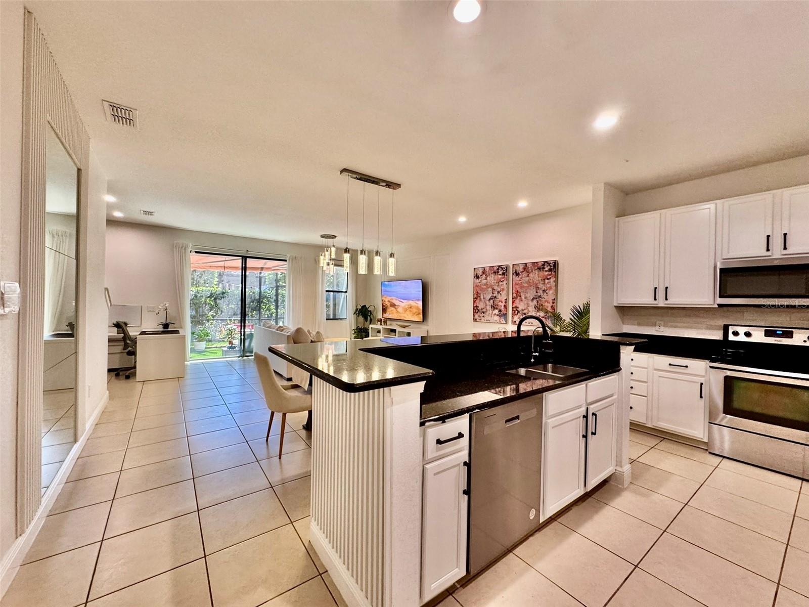 Kitchen/Family Room Combo, Open Floorplan, Stone Counters, Walk-In Closet(s)