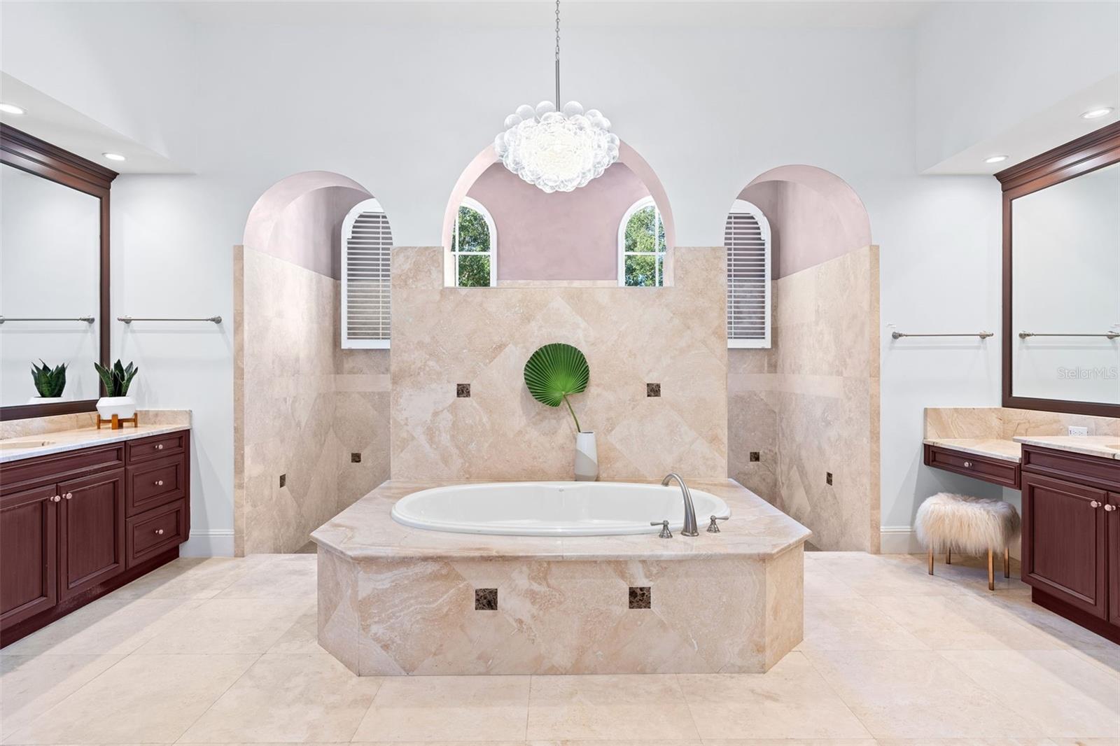 Built in 2012 by renowned ISSA Homes, this exquisite residence has been meticulously maintained and thoughtfully updated throughout. Set on one-third of an acre overlooking a tranquil pond, the home spans nearly 5, 100 square feet and features five en-suite bedrooms, a powder bath, a dedicated office, an upstairs loft, and a three-car garage. The outdoor living is truly exceptional, recently reimagined with new Travertine pavers, updated pool tile and interior finish, lush tropical landscaping, and a freshly painted exterior. Enjoy a private pool and spa, expansive sun deck, and a covered lanai complete with summer kitchen and remote-controlled shade screens—perfect for both relaxing and entertaining. Inside, new double front doors open to a home filled with natural light, soaring ceilings, and travertine floors with intricate wood inlays. The main level offers elegant living and entertaining spaces, including a formal living room with a gas fireplace and coffered ceiling accented by designer wallpaper, a bright dining room with a statement chandelier, a cozy family room overlooking the lush landscaping and pond, a private office with custom built-ins, and a gourmet kitchen showcasing light blue cabinetry, new stone countertops, a butcher block island, and designer lighting throughout. On the first floor, the primary suite is a serene retreat featuring a breakfast bar, three closets, and a luxurious bath with a walk-through shower, dual vanities, and a garden tub. A secondary bedroom suite, powder bath, and utility room complete the main level. Upstairs, a spacious loft anchors three additional bedroom suites, each with its own fully renovated bath, providing comfort and privacy for family or guests. Nestled within the gated Lake Nona Golf & Country Club, residents enjoy 24-hour security, A-rated schools, and close proximity to Orlando International Airport, Medical City, Boxi Park, fine dining, shopping, and major expressways (417 Greenway and 528 Beachline) for convenient access throughout Central Florida. This move-in-ready home perfectly blends timeless craftsmanship, elegant updates, and the very best in Country Club living.