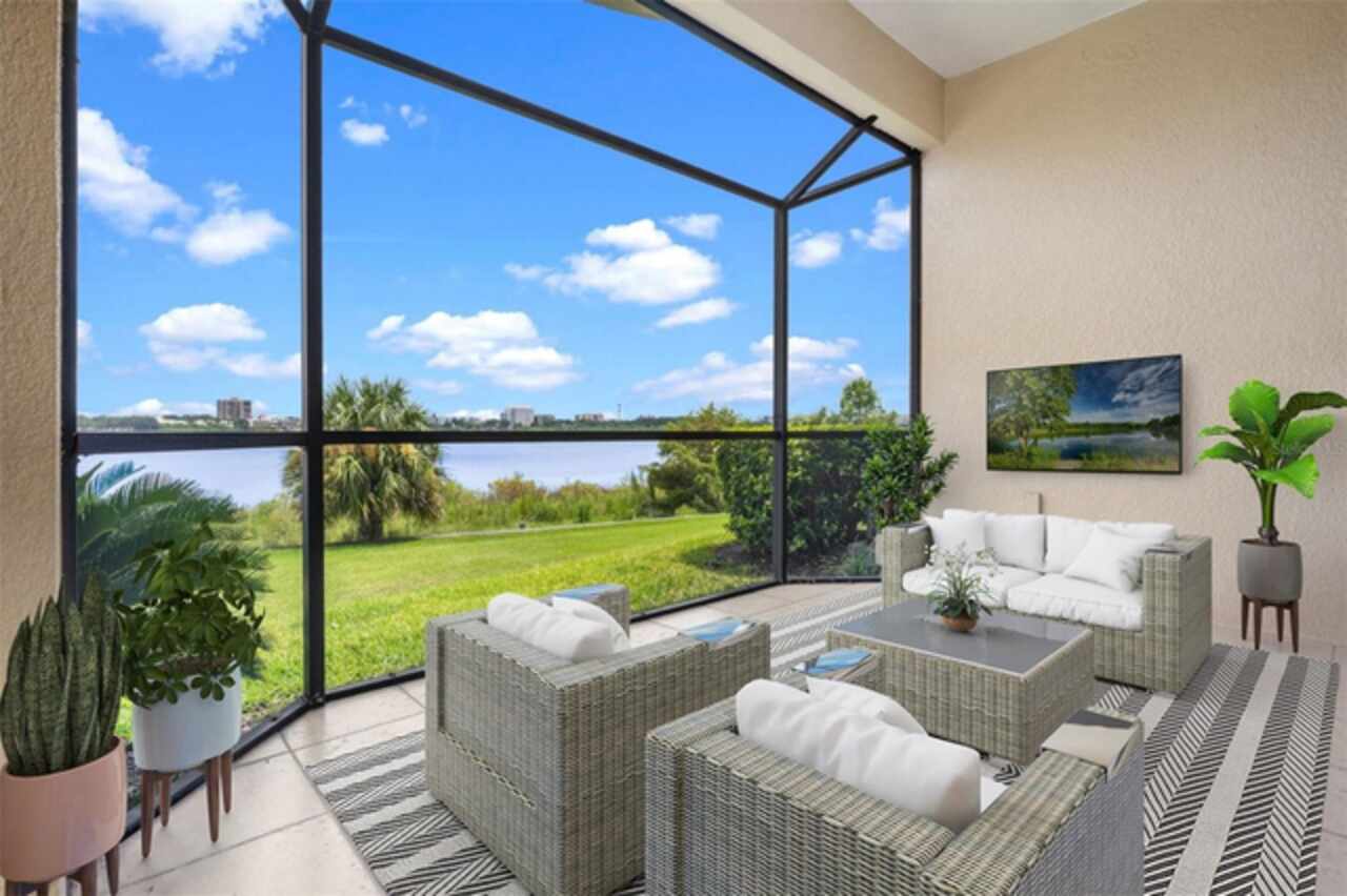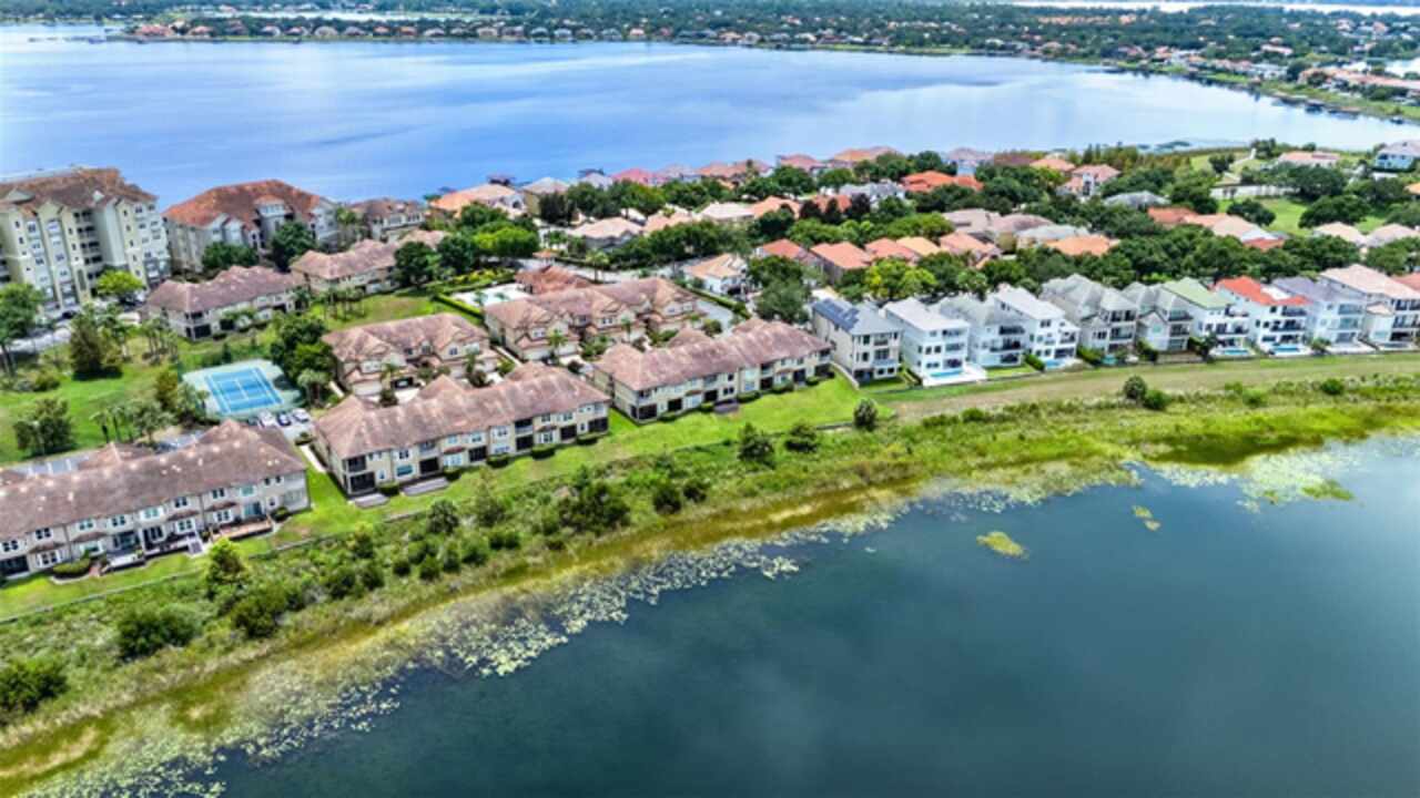 One or more photo(s) has been virtually staged. Welcome to this exceptional lakefront end-unit townhome, offering peaceful water views, modern upgrades and unmatched convenience — all within one of Central Florida’s desirable guard-gated communities in Dr. Phillips. Spanning over 2, 500 square feet, this beautifully maintained three-bedroom, 2.5-bath home features travertine flooring throughout the main level, hardwood floors upstairs, plantation shutters, and custom California closets for an elevated living experience. Enjoy serene lake views from your private porch — perfect for morning coffee or evening relaxation. Upstairs, the primary suite includes its own lakefront balcony, creating the ultimate private retreat. This community offers resort-style living, with two swimming pools, two tennis/pickleball courts, two clubhouses, a state-of-the-art gym and a new playground. The HOA covers all exterior maintenance, including the roof, landscaping and more — allowing for a low-maintenance lifestyle. Just minutes from Restaurant Row, top-rated schools, world-class shopping, the airport, and Orlando’s famous theme parks, this townhome offers a balance of luxury, comfort and location. Monthly fees include all community amenities, cable TV and Internet. Don’t miss this rare opportunity to own a move-in-ready lakefront townhouse in Orlando.