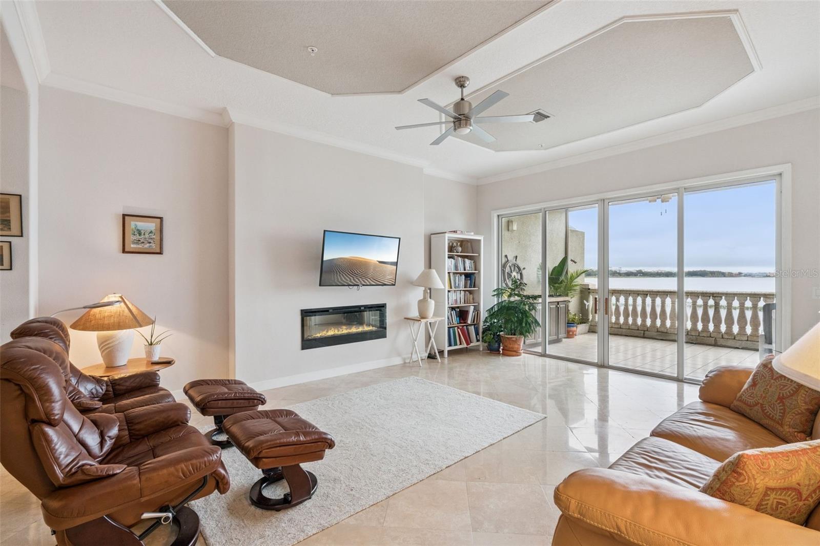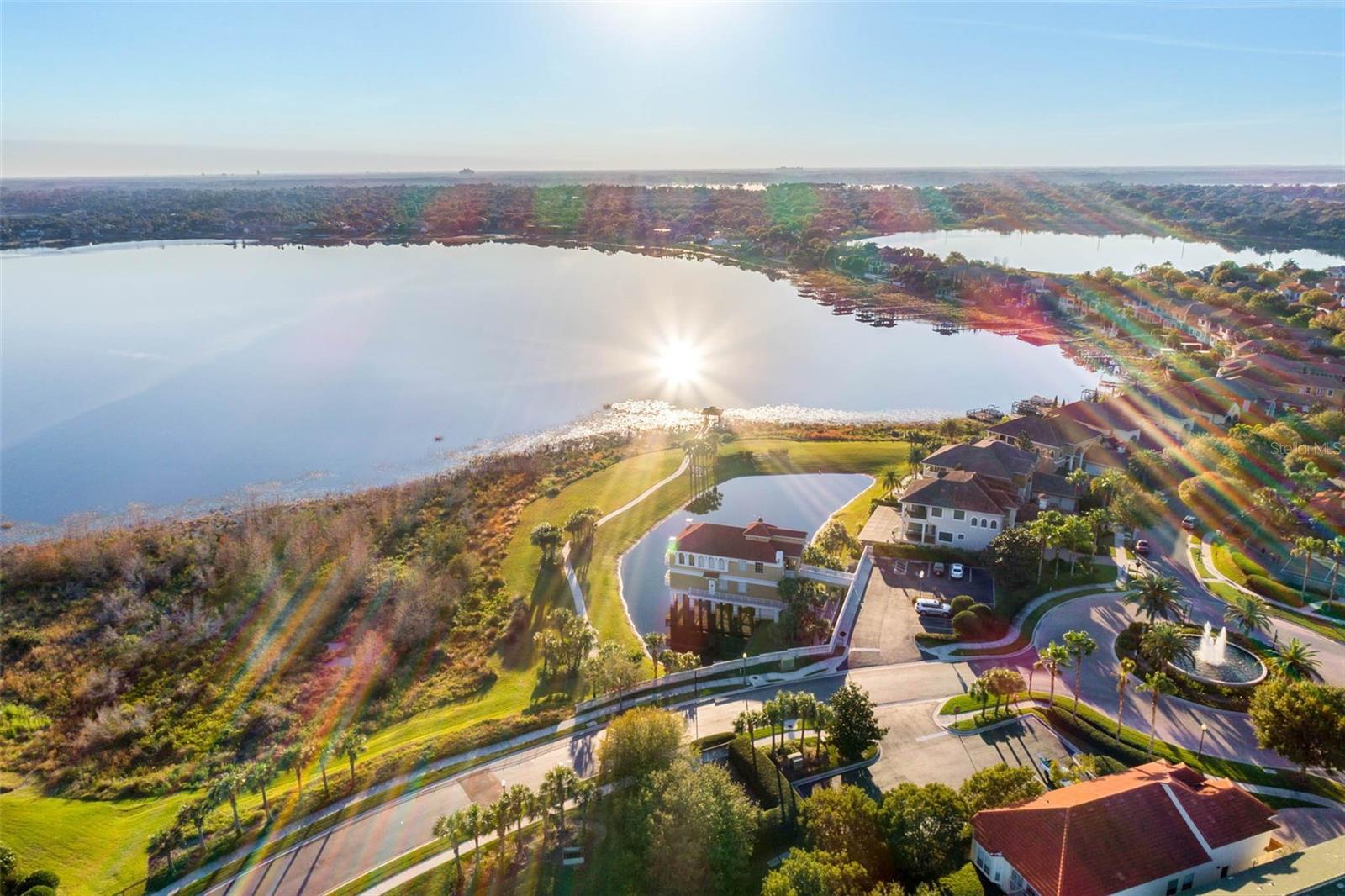 Welcome to this beautifully maintained 2-bedroom, 2-bathroom condo in the highly sought-after Vizcaya community of Dr. Phillips, a prestigious Mediterranean-style development surrounded by the tranquil waters of Big Sand Lake, Little Sand Lake, and Lake Serene. This beauty offers the perfect blend of elegance, comfort, and modern upgrades — all set against breathtaking panoramic lake views. Step inside to find gorgeous tile floors, trey ceilings, detailed crown molding, and designer lighting that adds warmth and sophistication throughout. The open-concept living area was thoughtfully updated, with the builder’s original TV wall replaced by a sleek flat wall featuring a custom electric fireplace for added ambiance. The kitchen has been enhanced with new kitchen appliances, and updated plumbing — ideal for those who love both form and function. The guest suite features a newly installed window, ceiling fan, and renovated bath with new faucets and plumbing. The primary suite boasts its own serene retreat with updated dual sink faucets, and refinished under-sink plumbing. Additional home improvements include soundproofed ceilings, a Solace Air Protector and Filter system, cleaned and regulated air ducts and electric panel, and a refreshed dryer vent — ensuring both comfort and peace of mind. This condo combines luxury, practicality, and a lifestyle defined by stunning water views, privacy, and proximity to Orlando’s best dining and entertainment. Just minutes from Universal Studios, International Drive, Disney and downtown Orlando, you are in the heart of all Orlando offers. Wait until you see this unit! Don't wait to make these views yours.