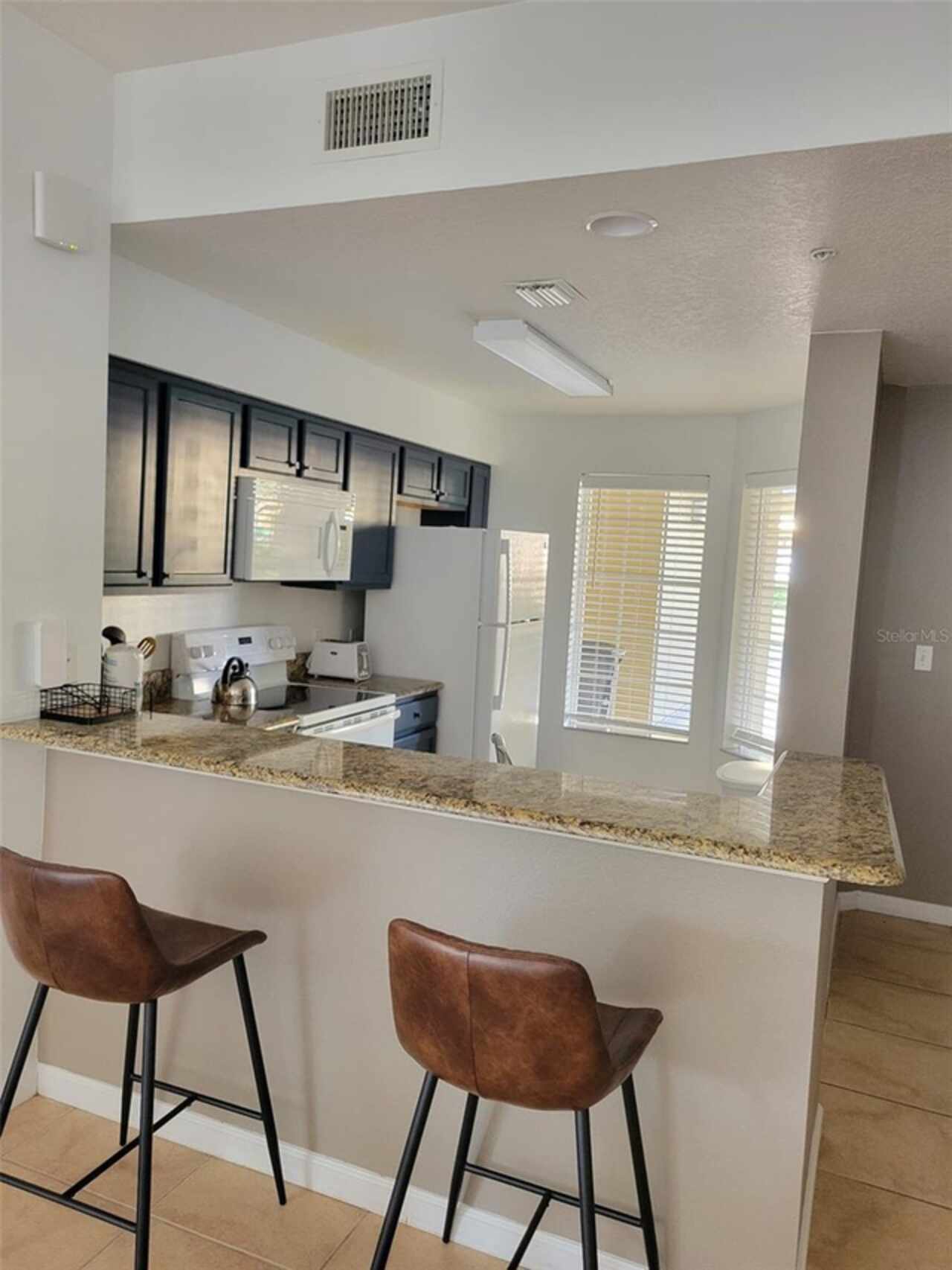 Fully furnished Condo, Ground floor. Spacious 2 bedroom, 2 bathroom condo at Worldquest Resort. Plenty of natural light comes through wide windows in the front and back of the unit. Kitchen fully equipped, with granite countertops, breakfast bar, the dining and living room area face the green landscape in the back of the unit. Enjoy your coffee in the morning or glass of wine in the afternoons on the screened porch right off the living room or master bedroom. Amazing Location Right off of I-4, 5 minutes away from Disney World, near Publix, Walmart, International Drive, Outlet malls. Equipped with washer and dryer. HOA includes water, cable and internet. The unit can be rented through Airbnb, VrBo and other platforms, is NOT part of Worldquest Resort Short Term Rental so it has no access to the Resort Amenities, but can be subscribed if new owner wants.